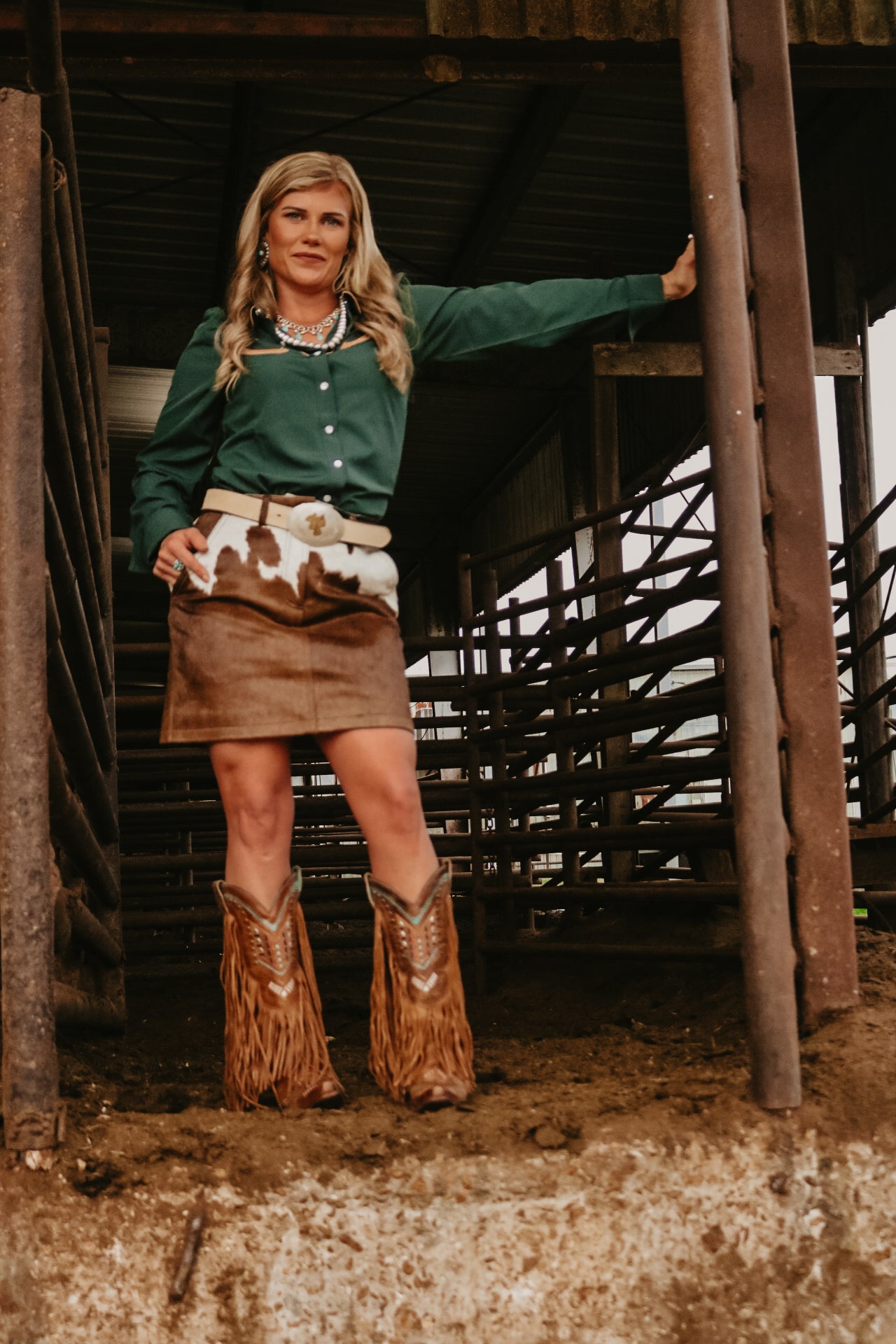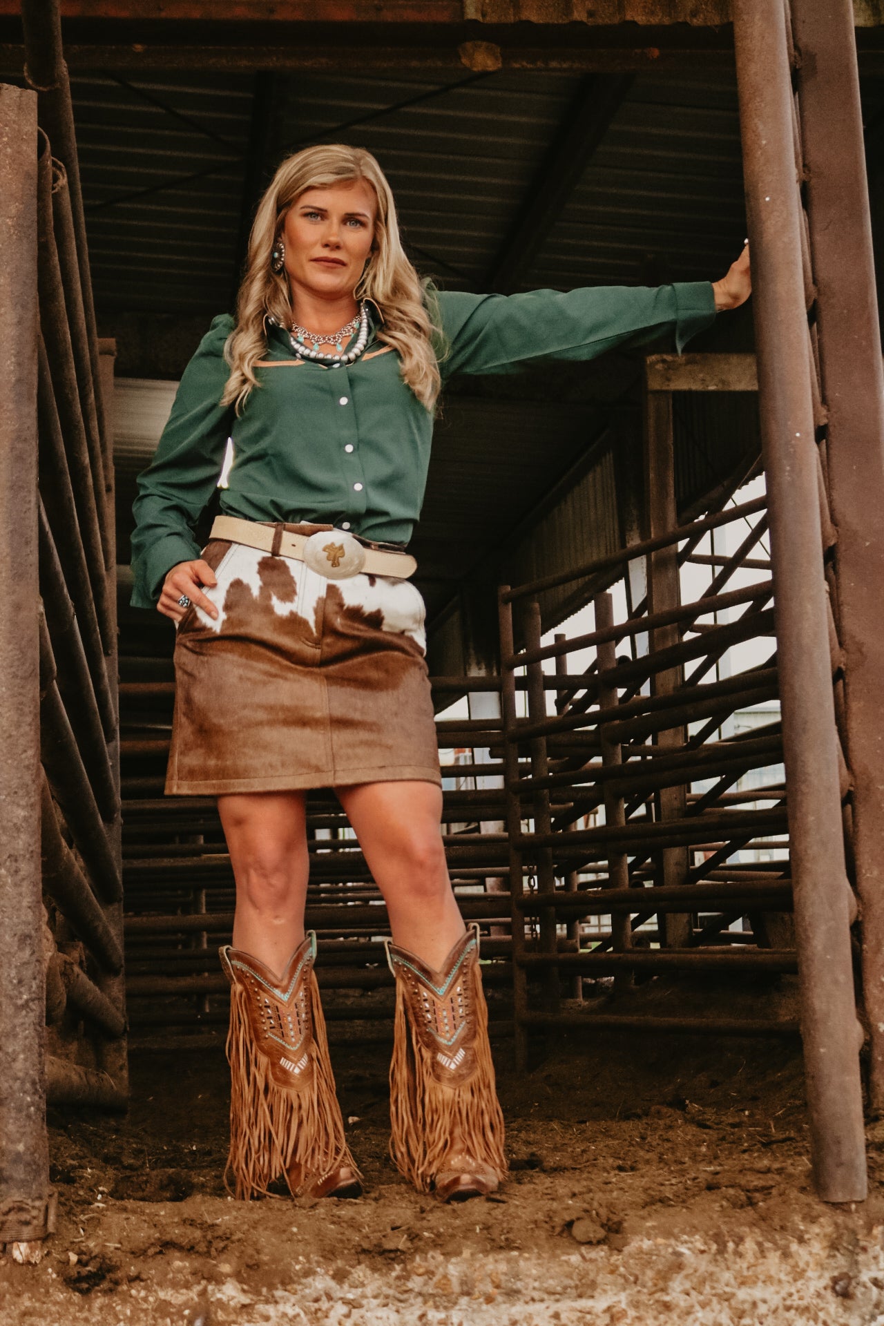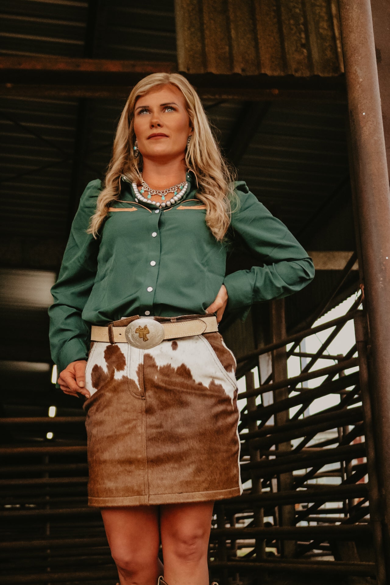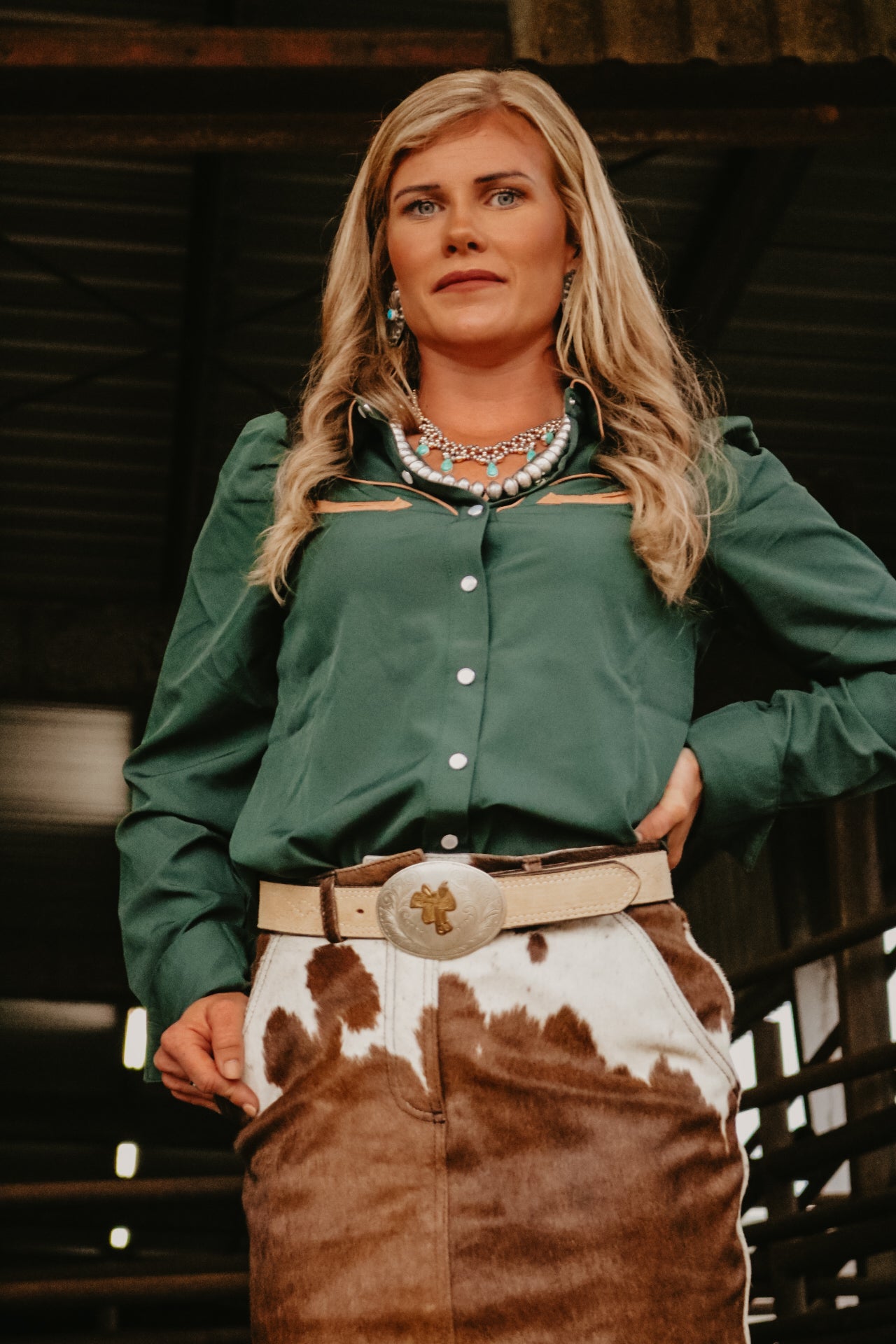 Forest Green Pearl Snap Button-Up Shirt with Tan Western Yoking by Howdy Hanny