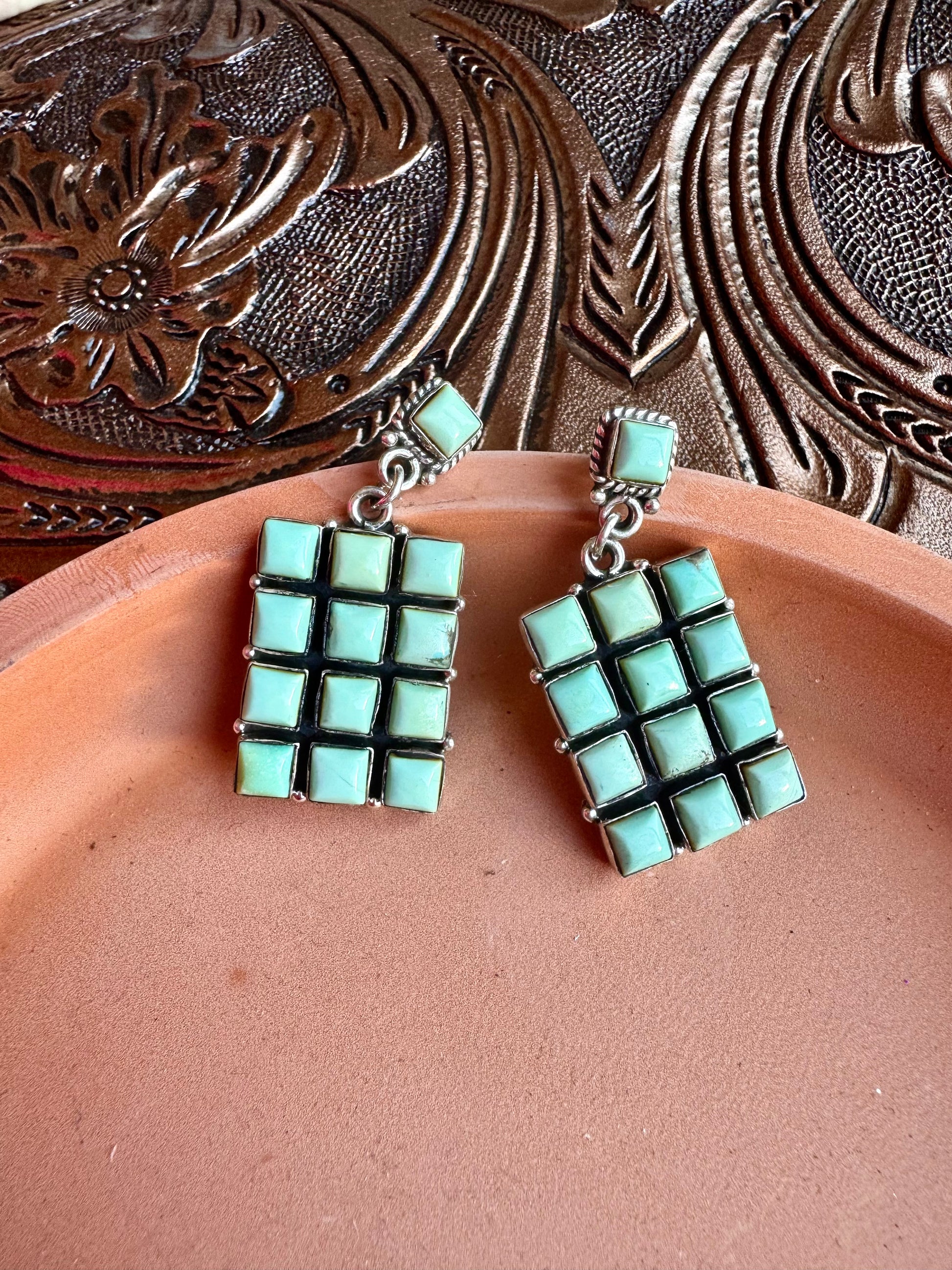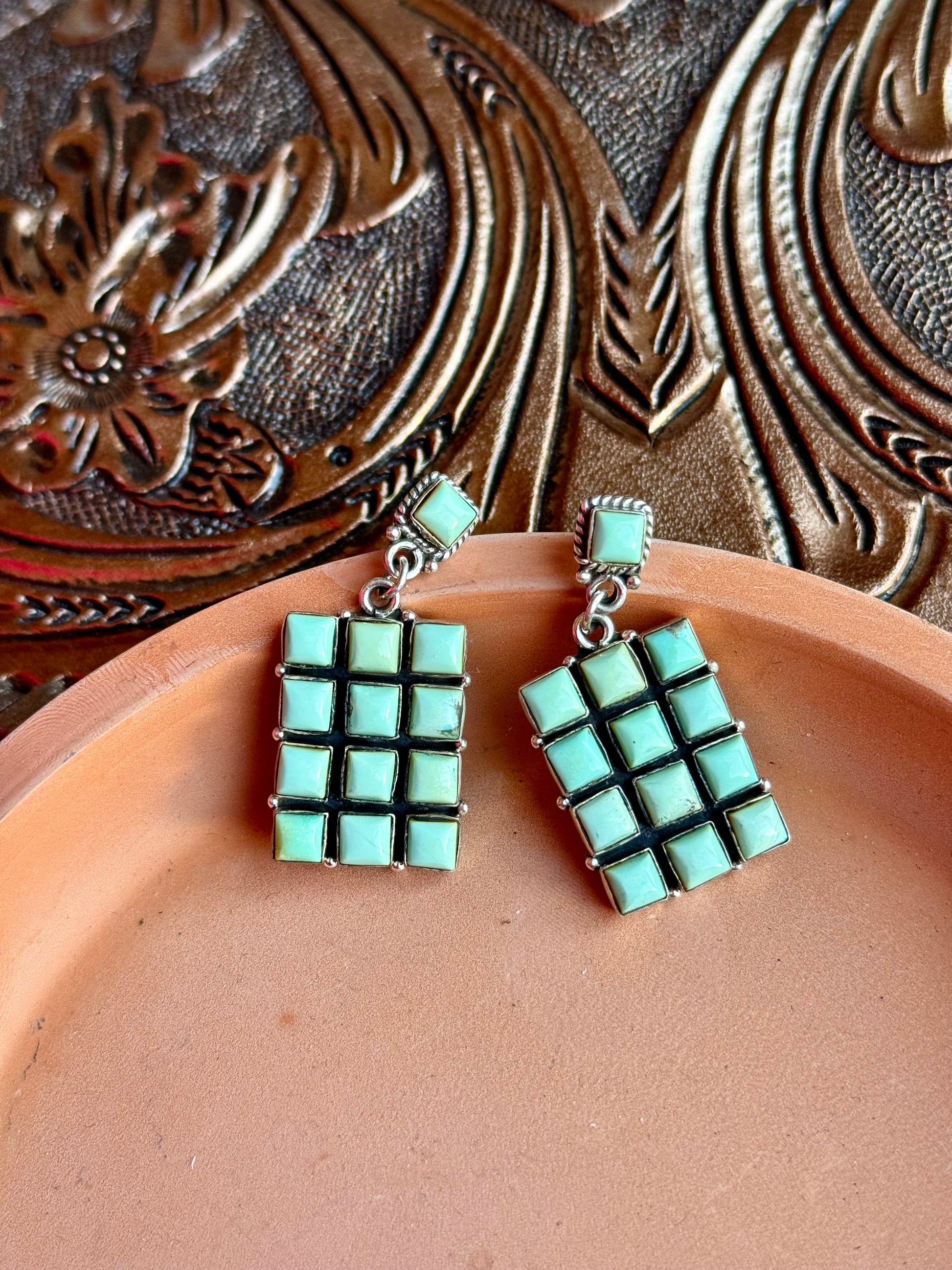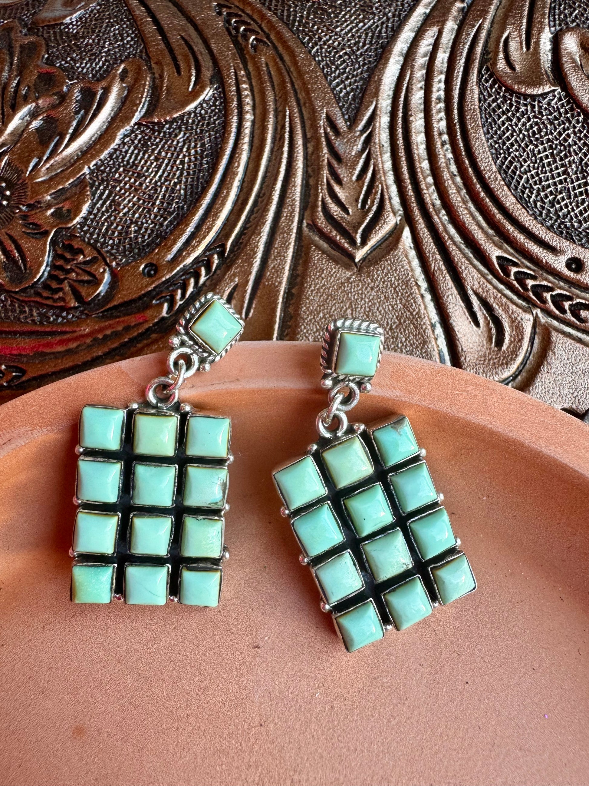 Mint Blue Kingman Turquoise Checkered Stud/Dangle Earring