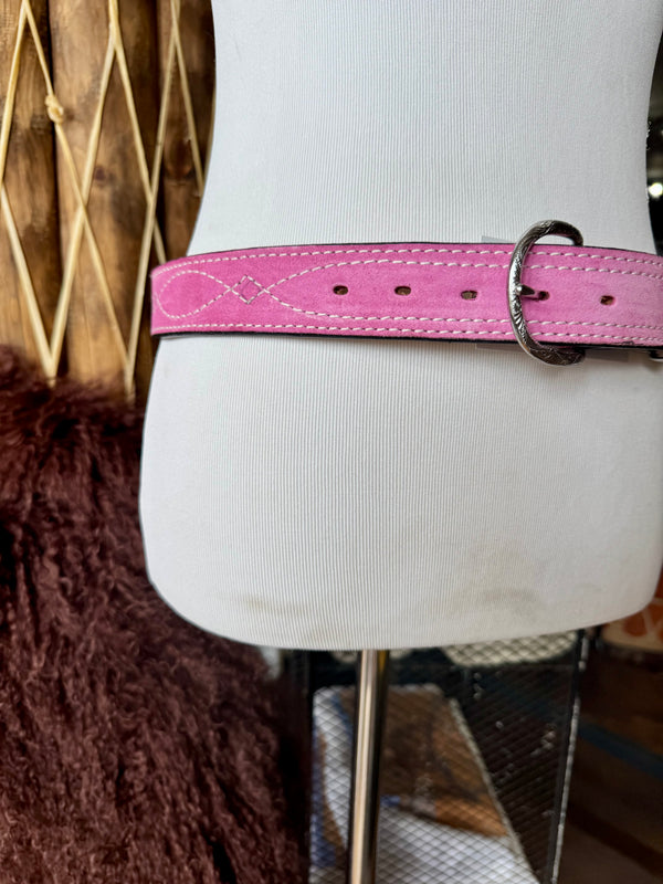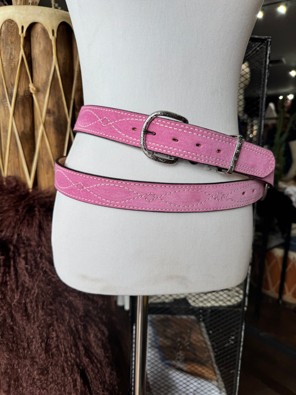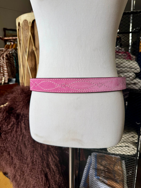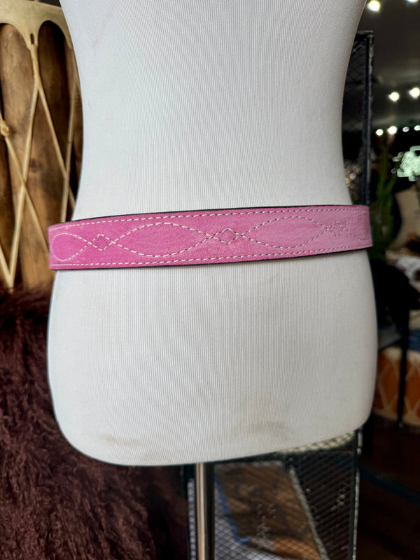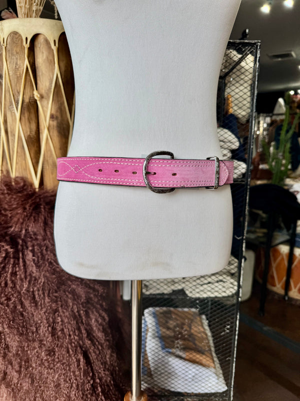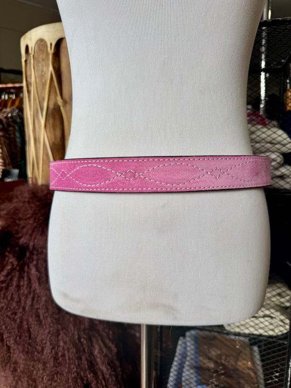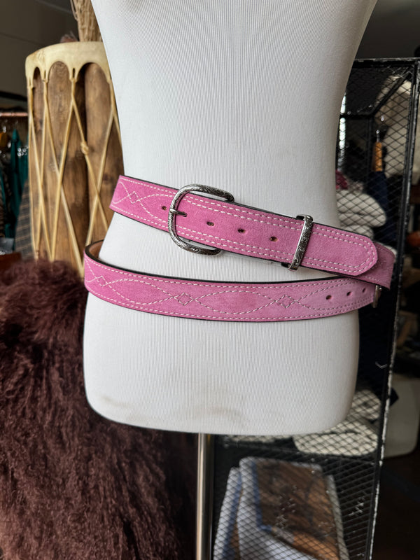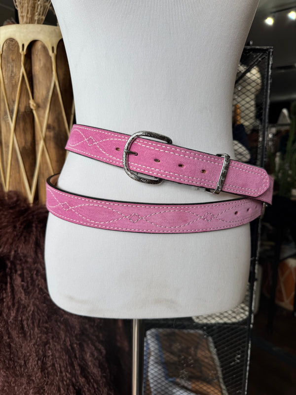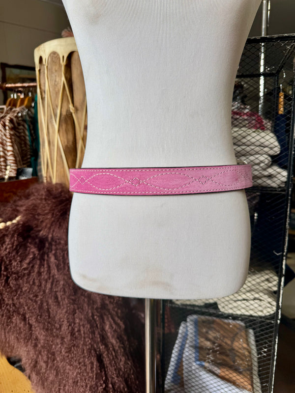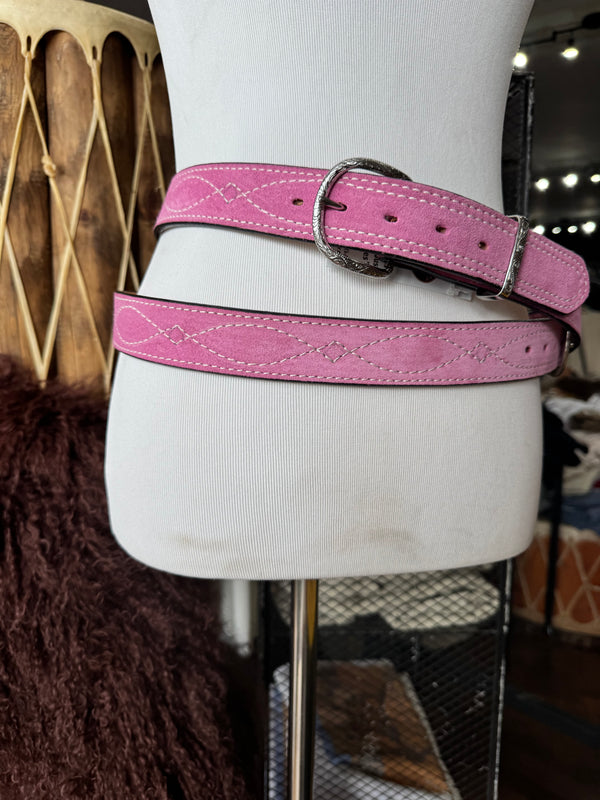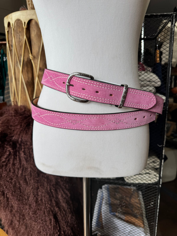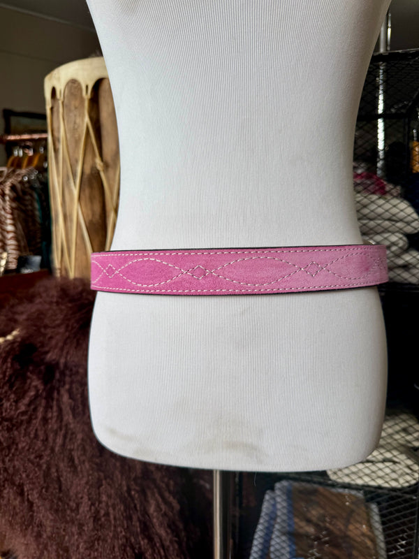 Baby Pink Suede Rough Out Gunslinger Stitch Belt by Double J Saddlery