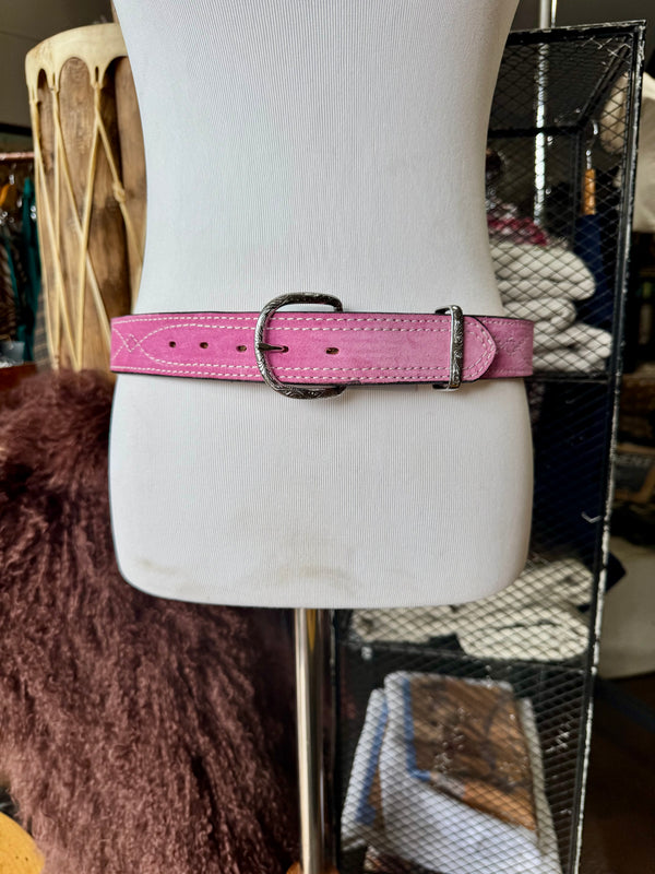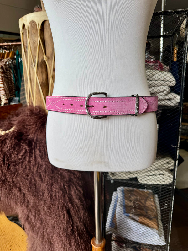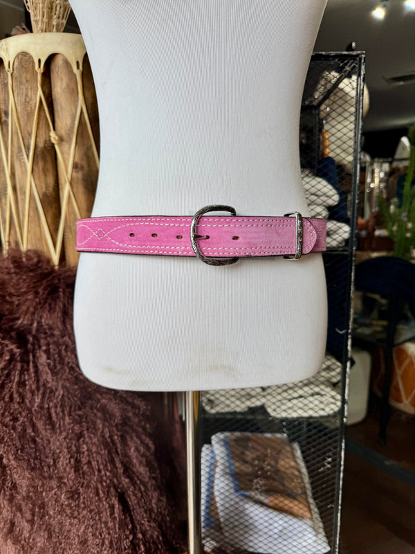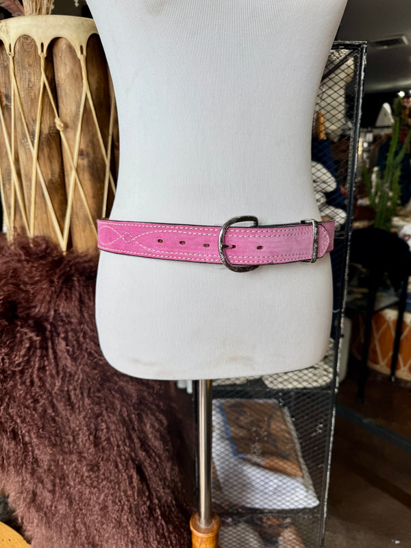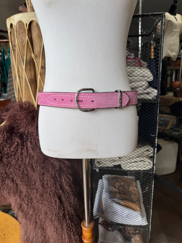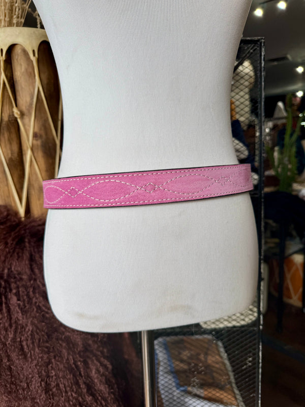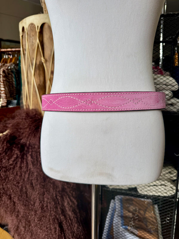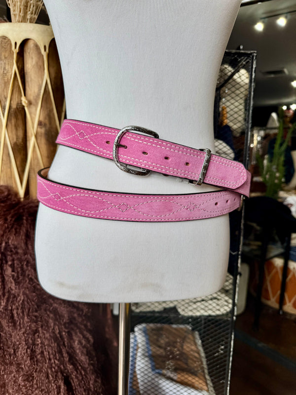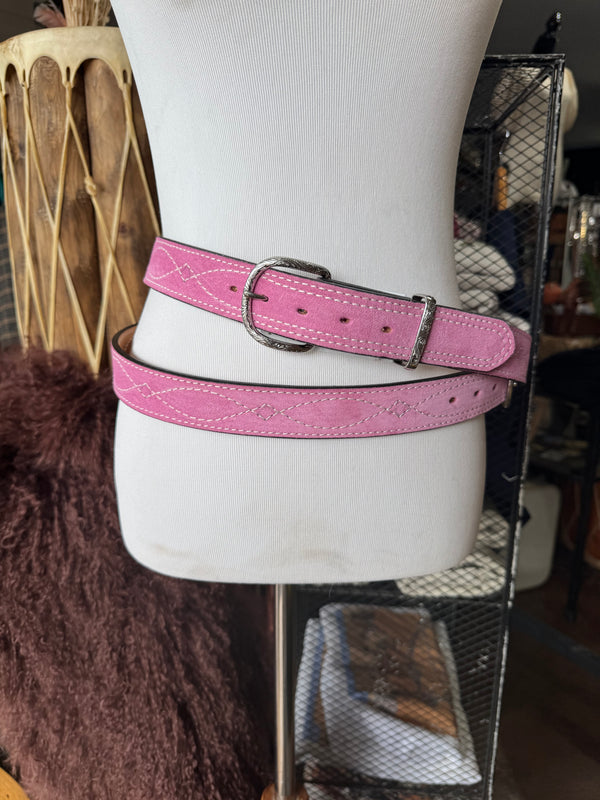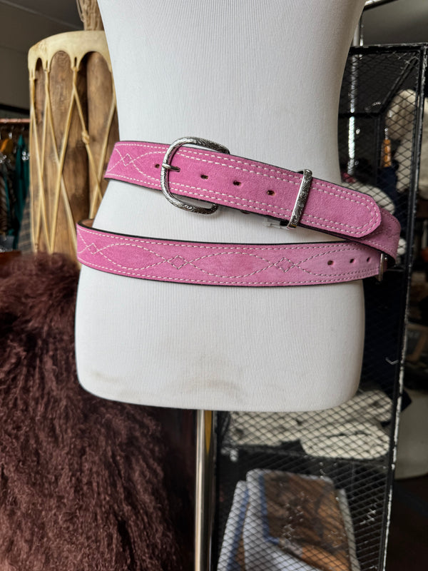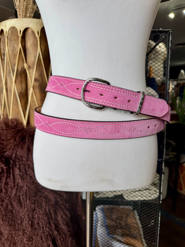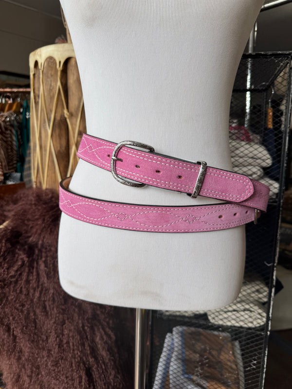 Baby Pink Suede Rough Out Gunslinger Stitch Belt by Double J Saddlery