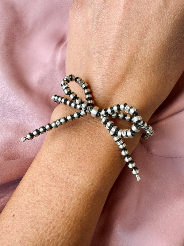 Navajo Pearl Bow Bracelet with CZ Bead Accents