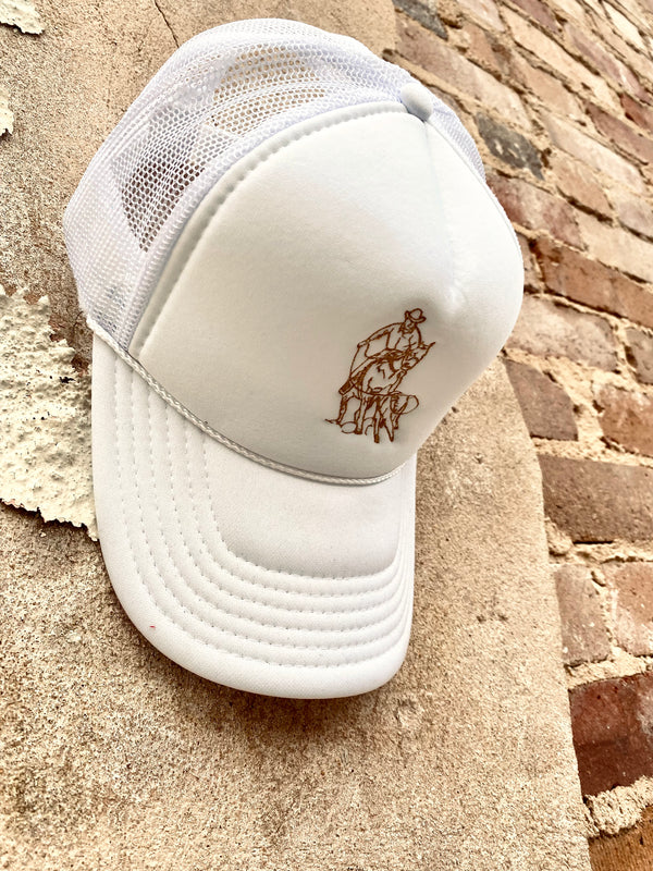 White/Tan Calf Roper Embroidered Trucker Hat