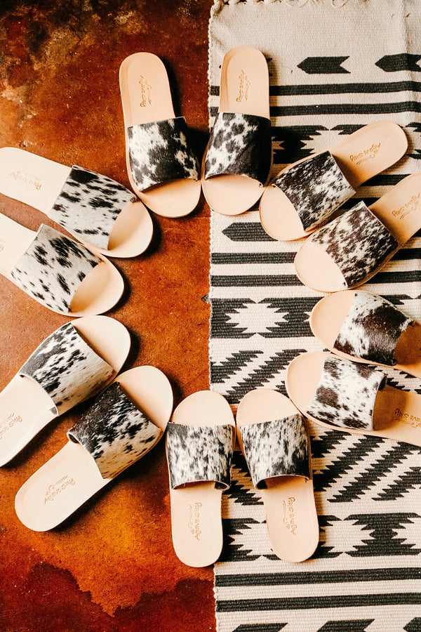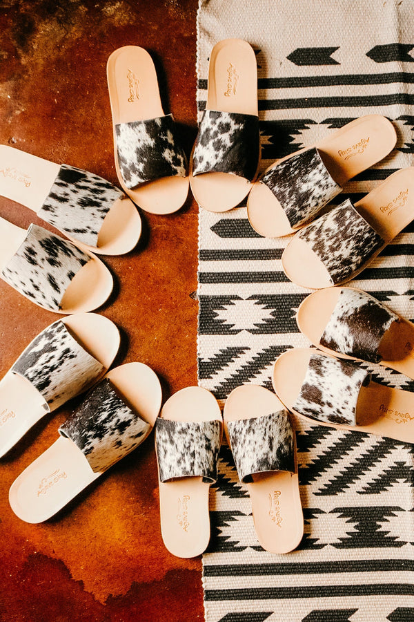 Salt & Pepper Cowhide Slides COWHIDE WILL VARY Leather Sole