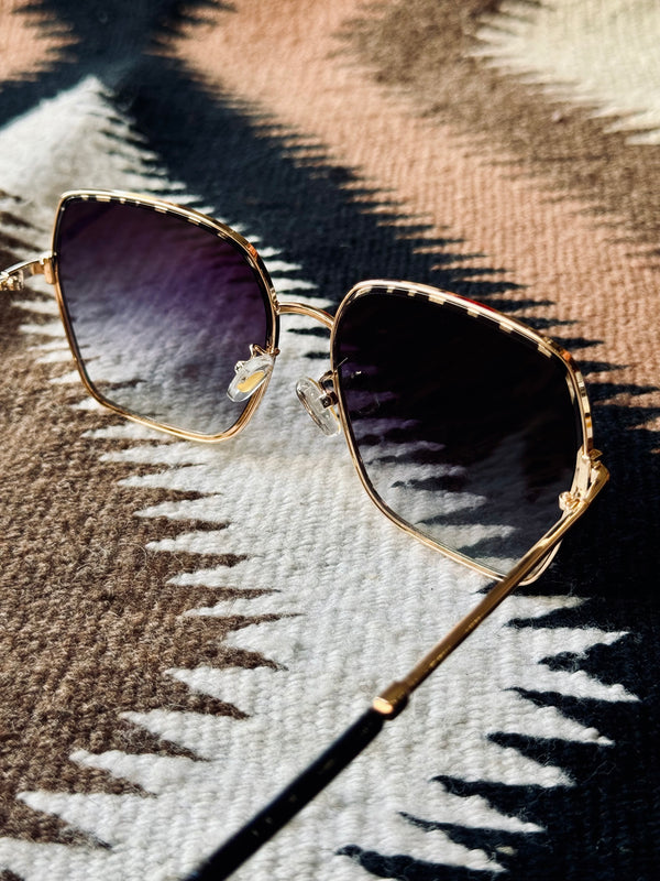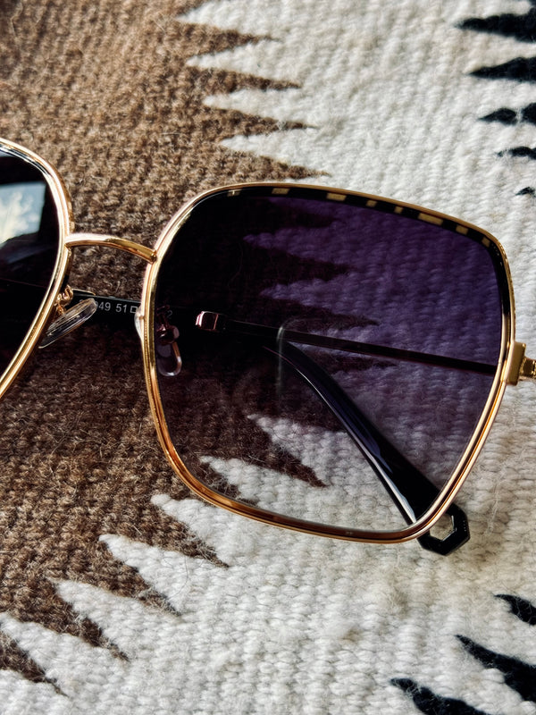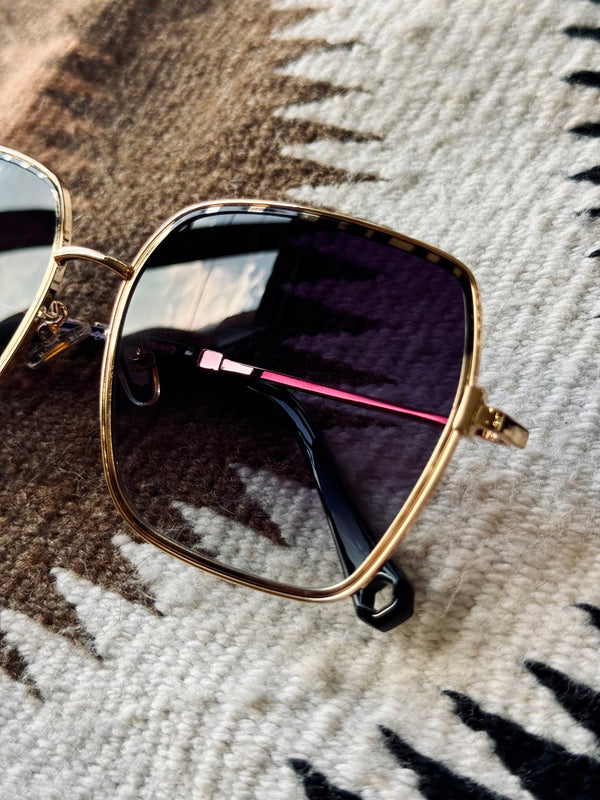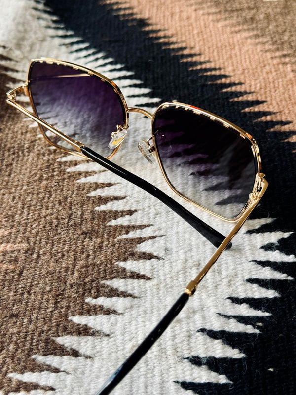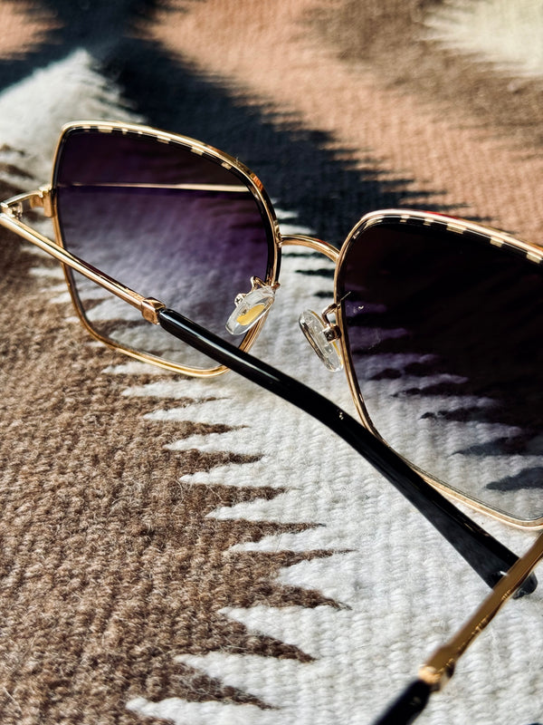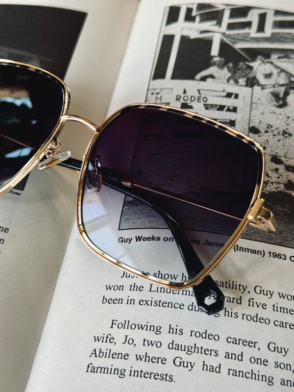 Gold frame with Grey Ombré lens Embrace your inner diva with these oversized glam sunglasses that scream luxury and confidence. Perfect for those who want to make a statement. Ideal for round or heart-shaped faces, these frames add an air...