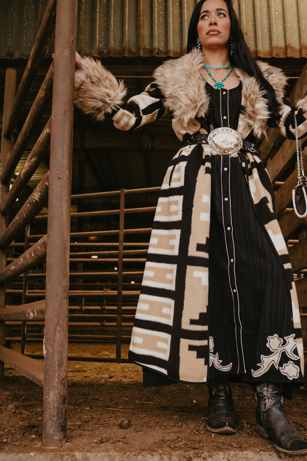 Full Length Western Stitch Design Button-Up Dress 100% Polyester