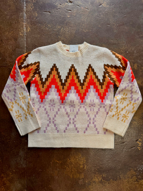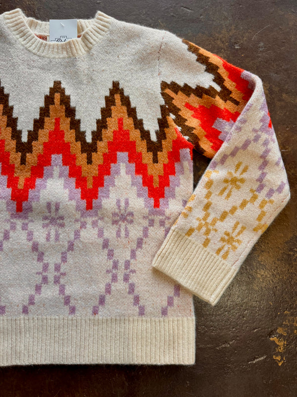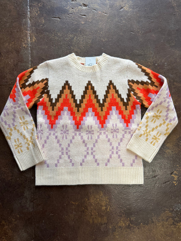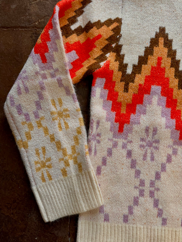 Retro Ivory/Rust Mix Pullover Sweater Round neck