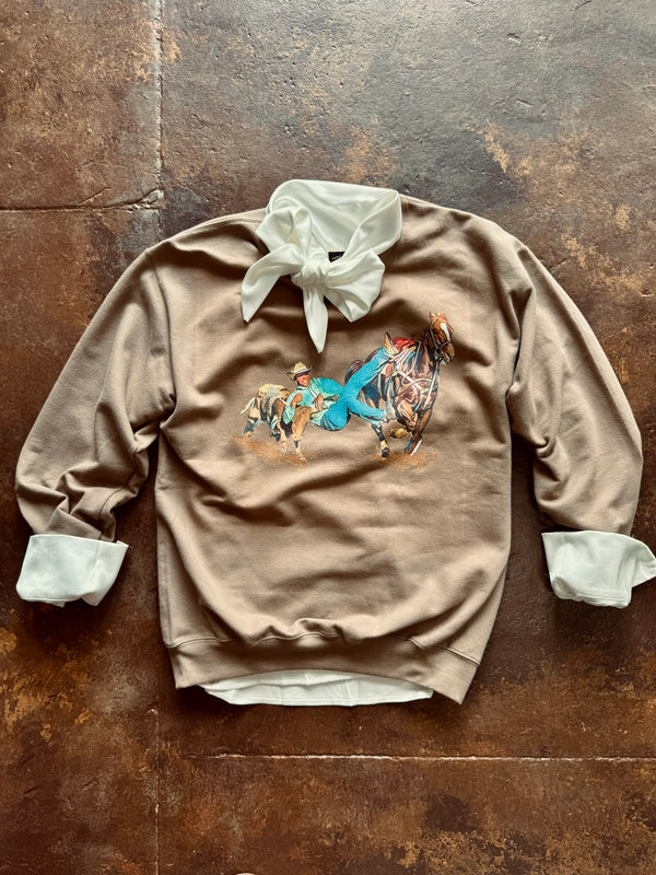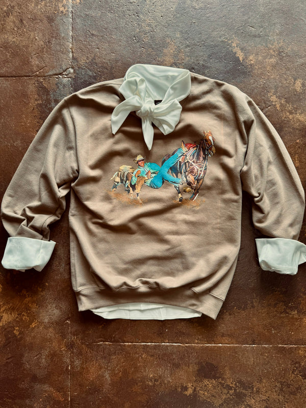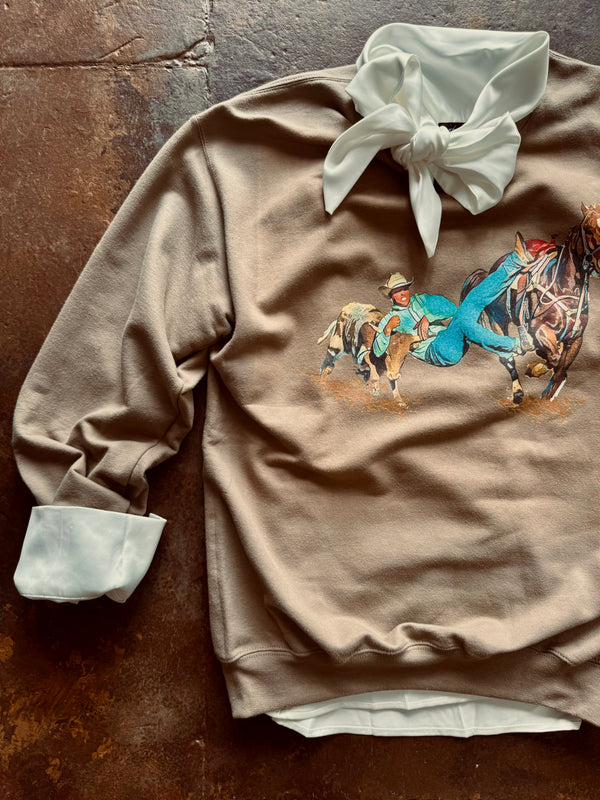 Vintage Brown Steer Wrestling Graphic Sweatshirt ***White Ribbon Bow Top NOT INCLUDED***