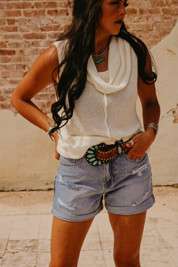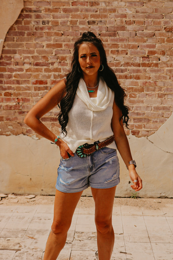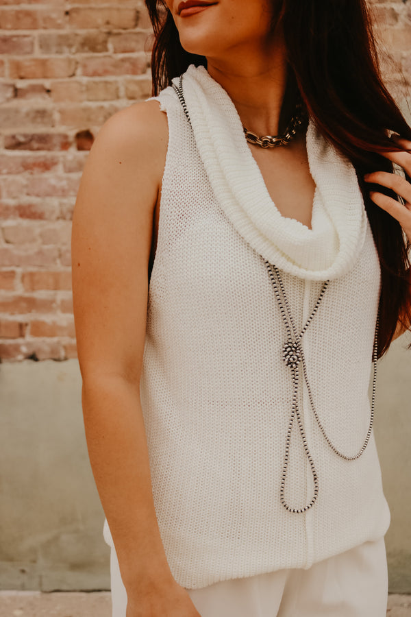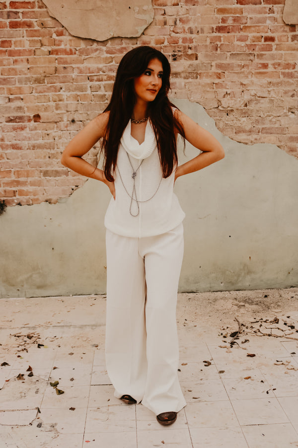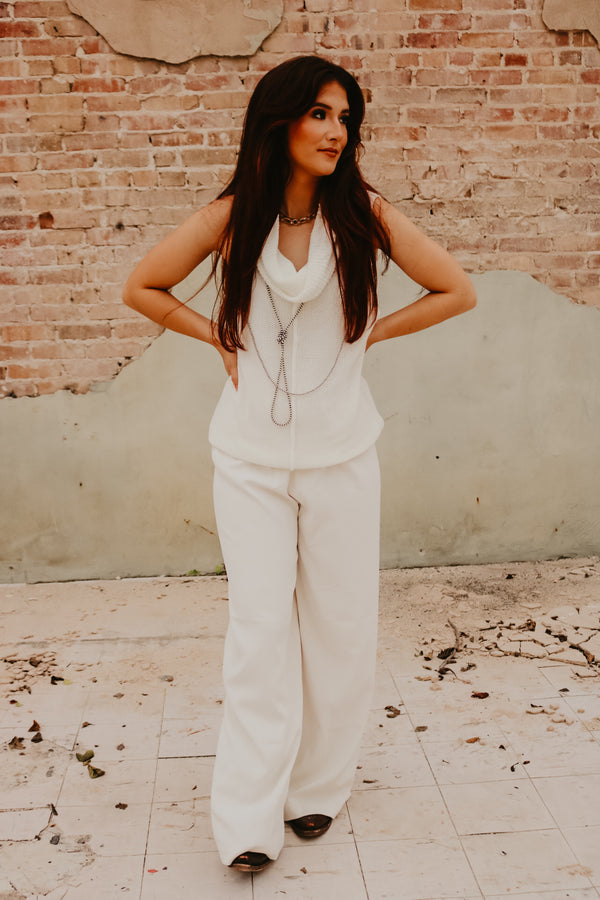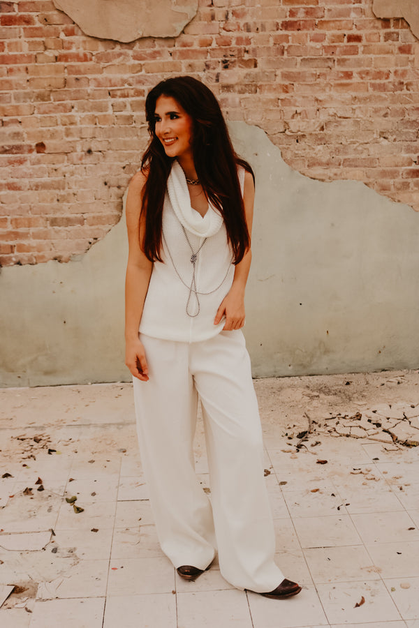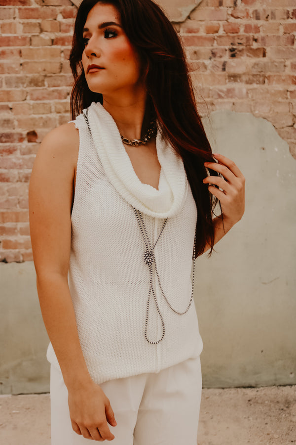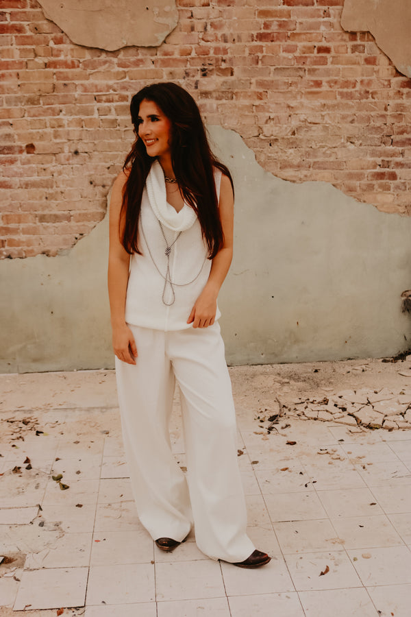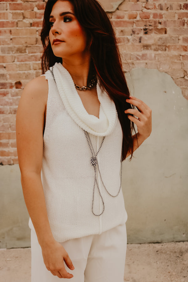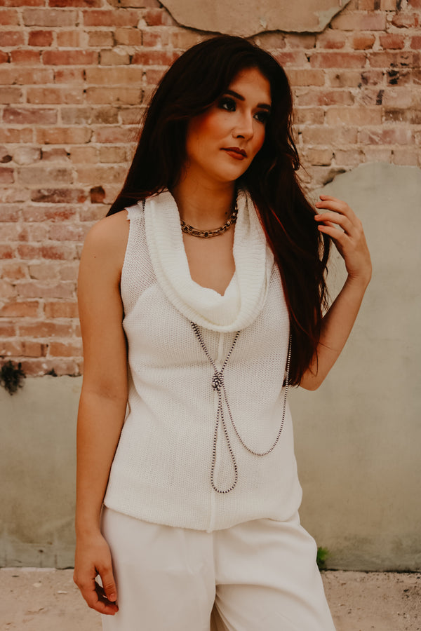 Ivory Central Seam Cowl Neck Sweater Vest  Thin knit material Sleeveless 55% Acrylic 45% Cotton