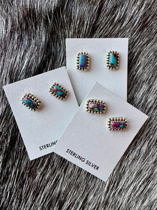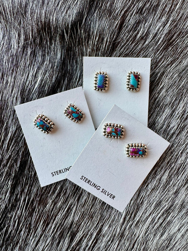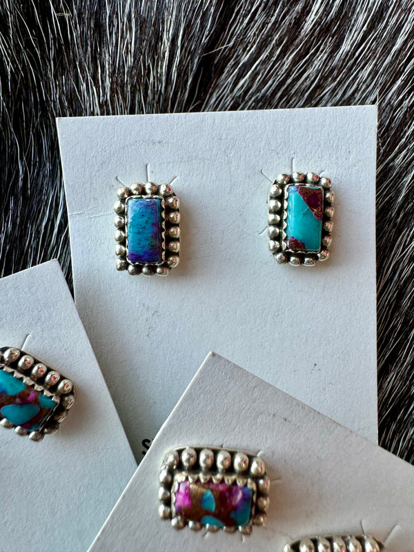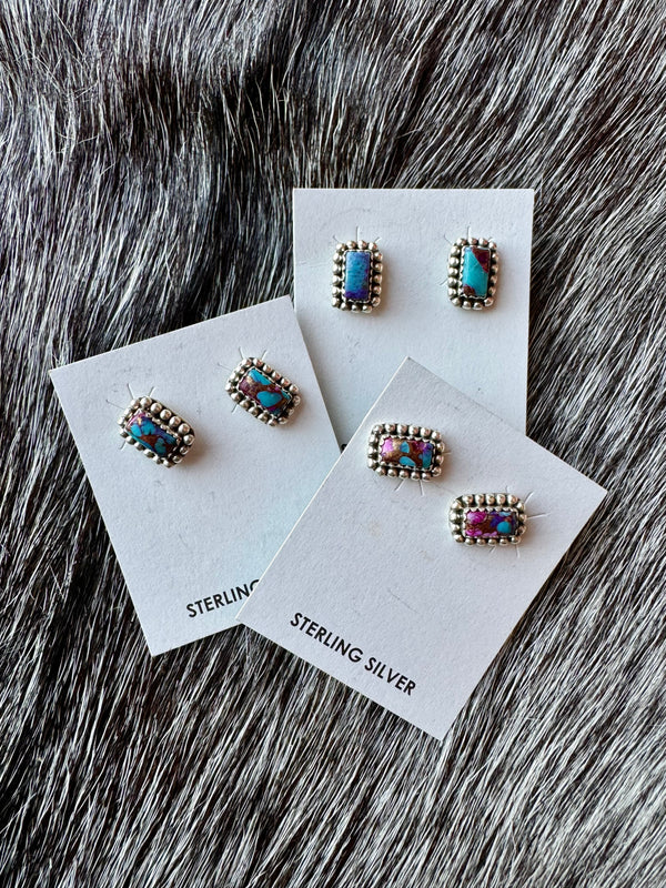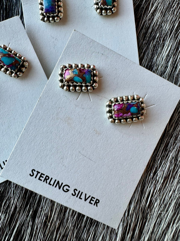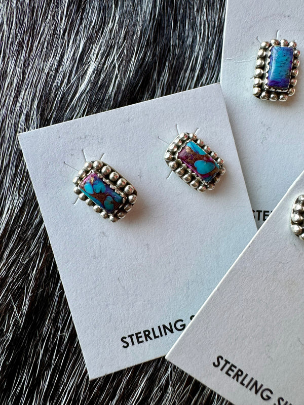 Mojave Purple/Copper Turquoise Rectangle Stud Earring approximately .5”