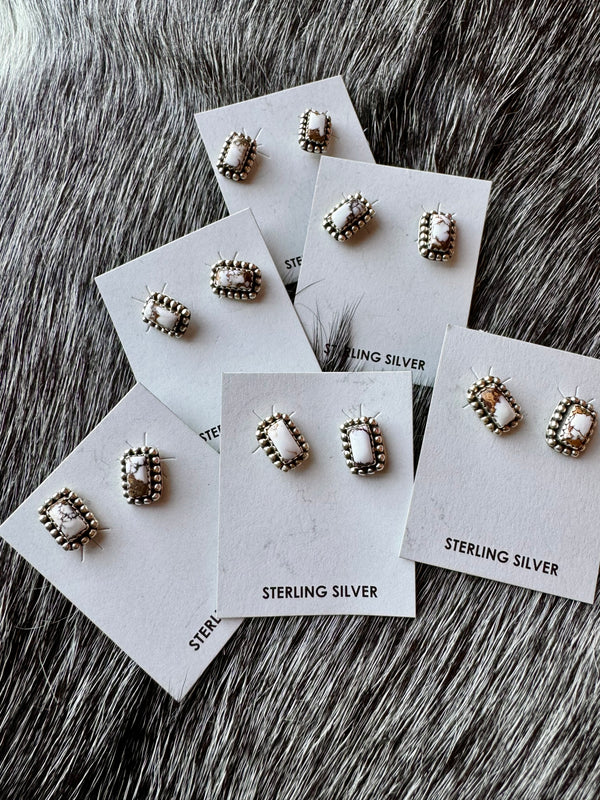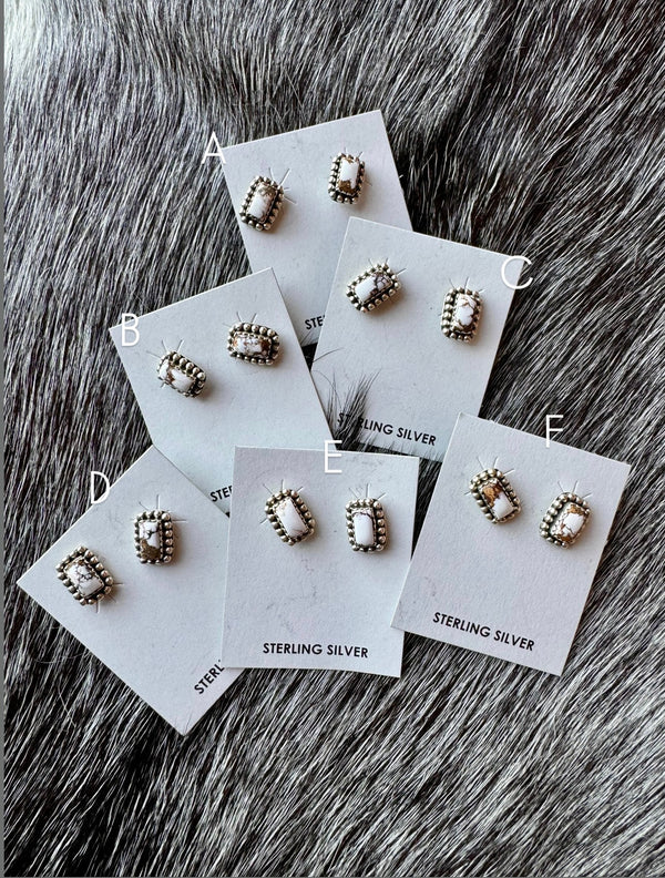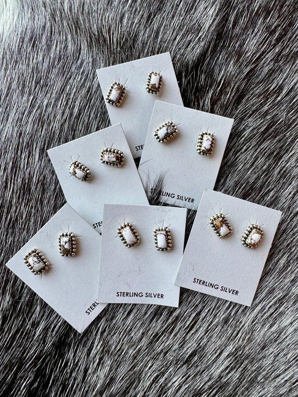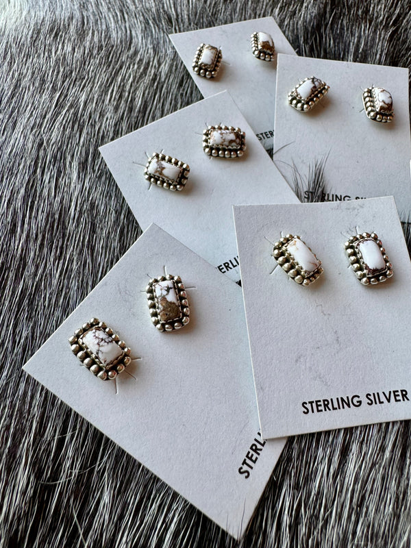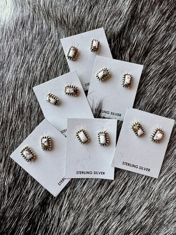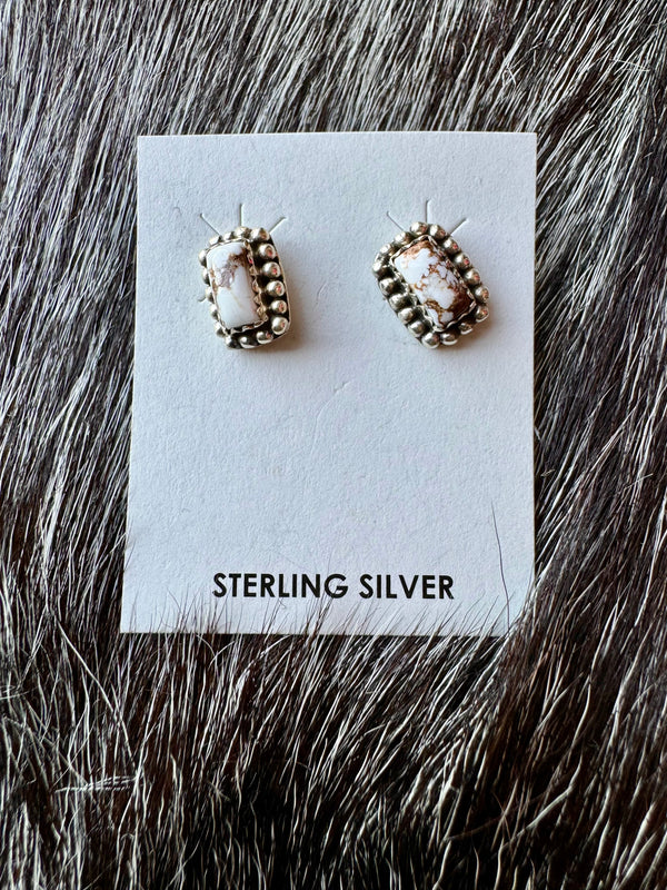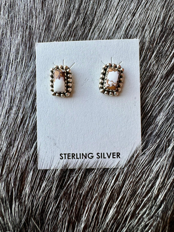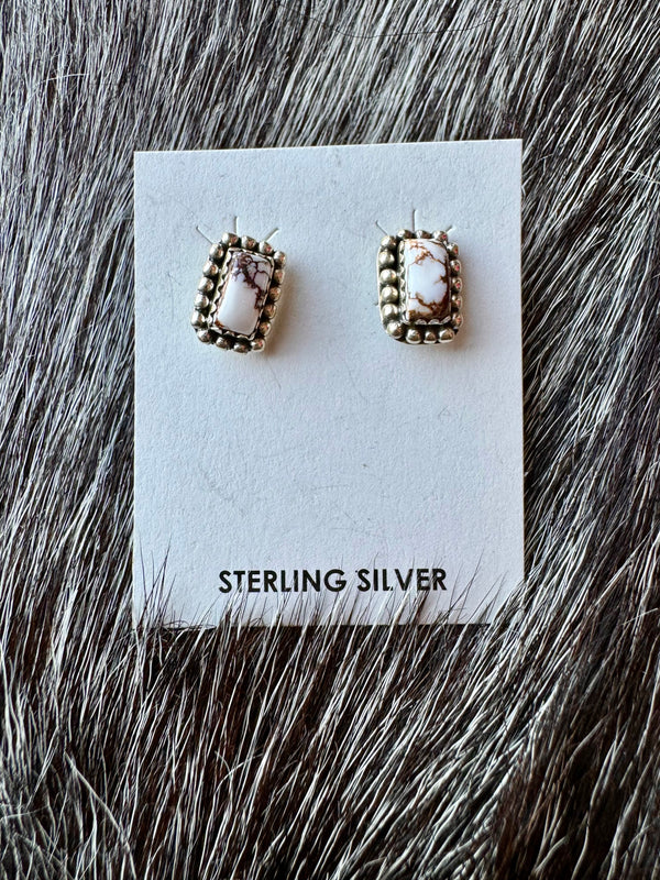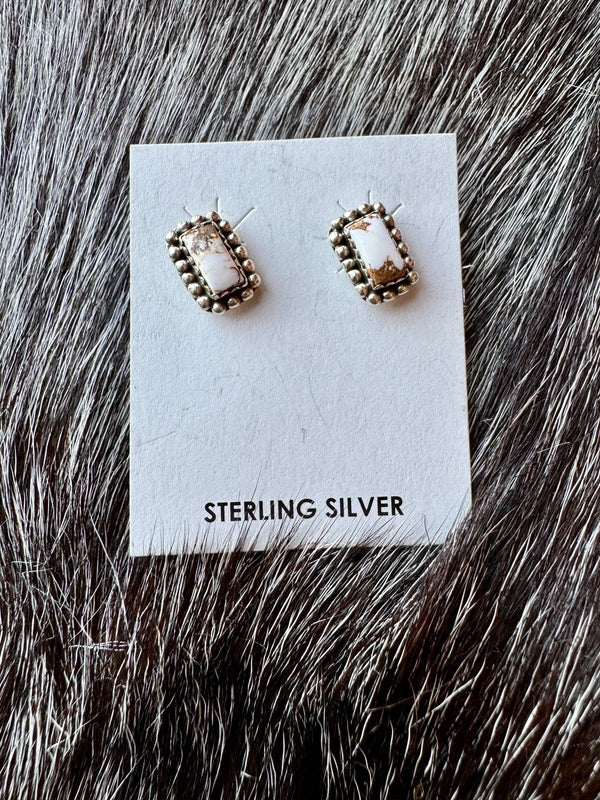 Wild Horse & Sterling Silver Rectangle Stud Earring  approximately .5”