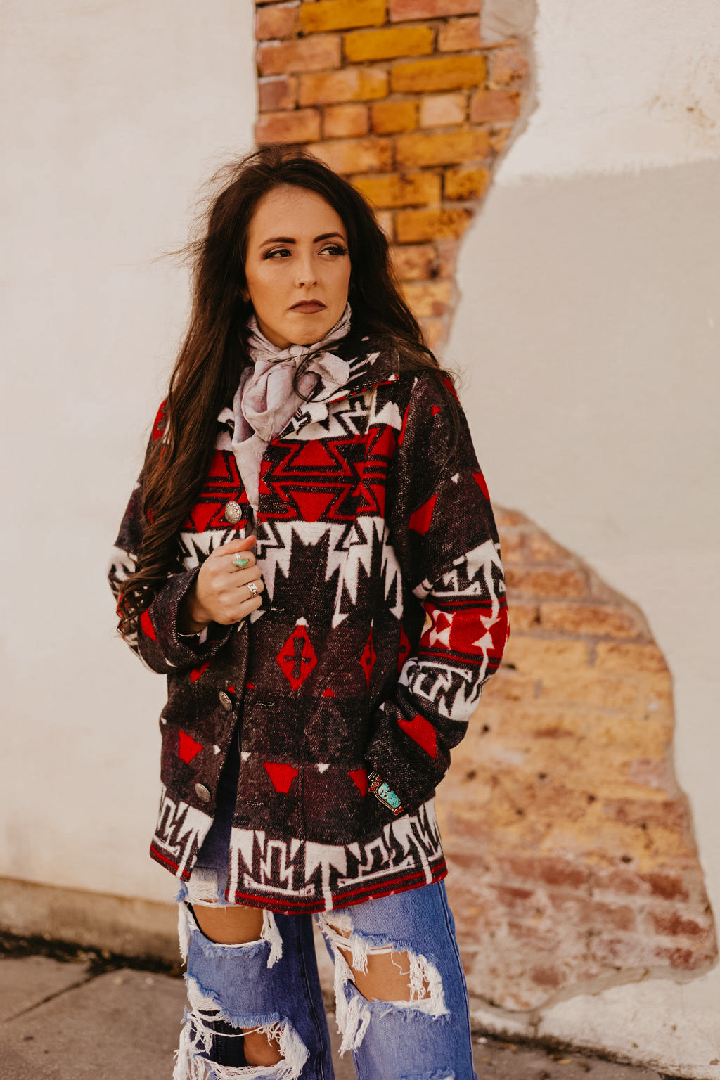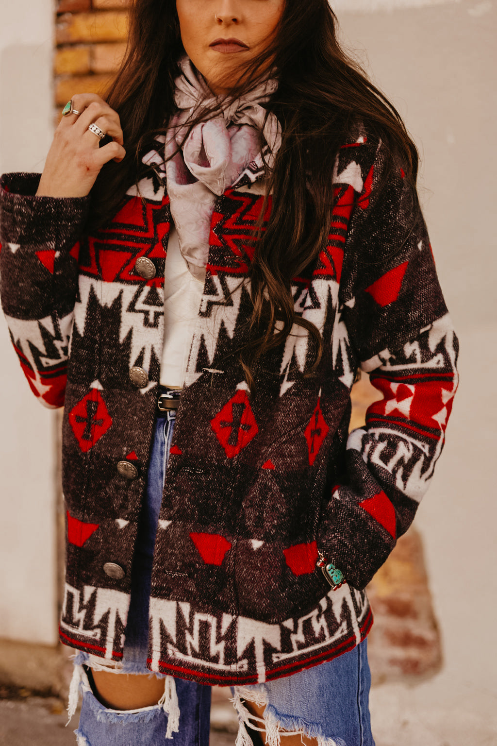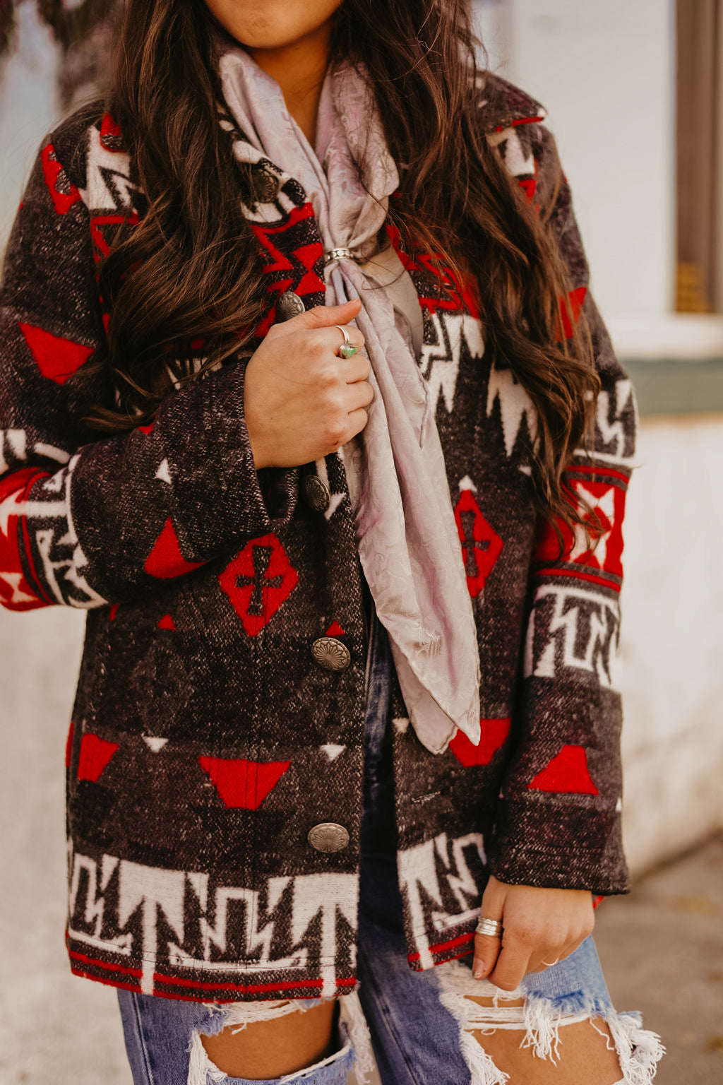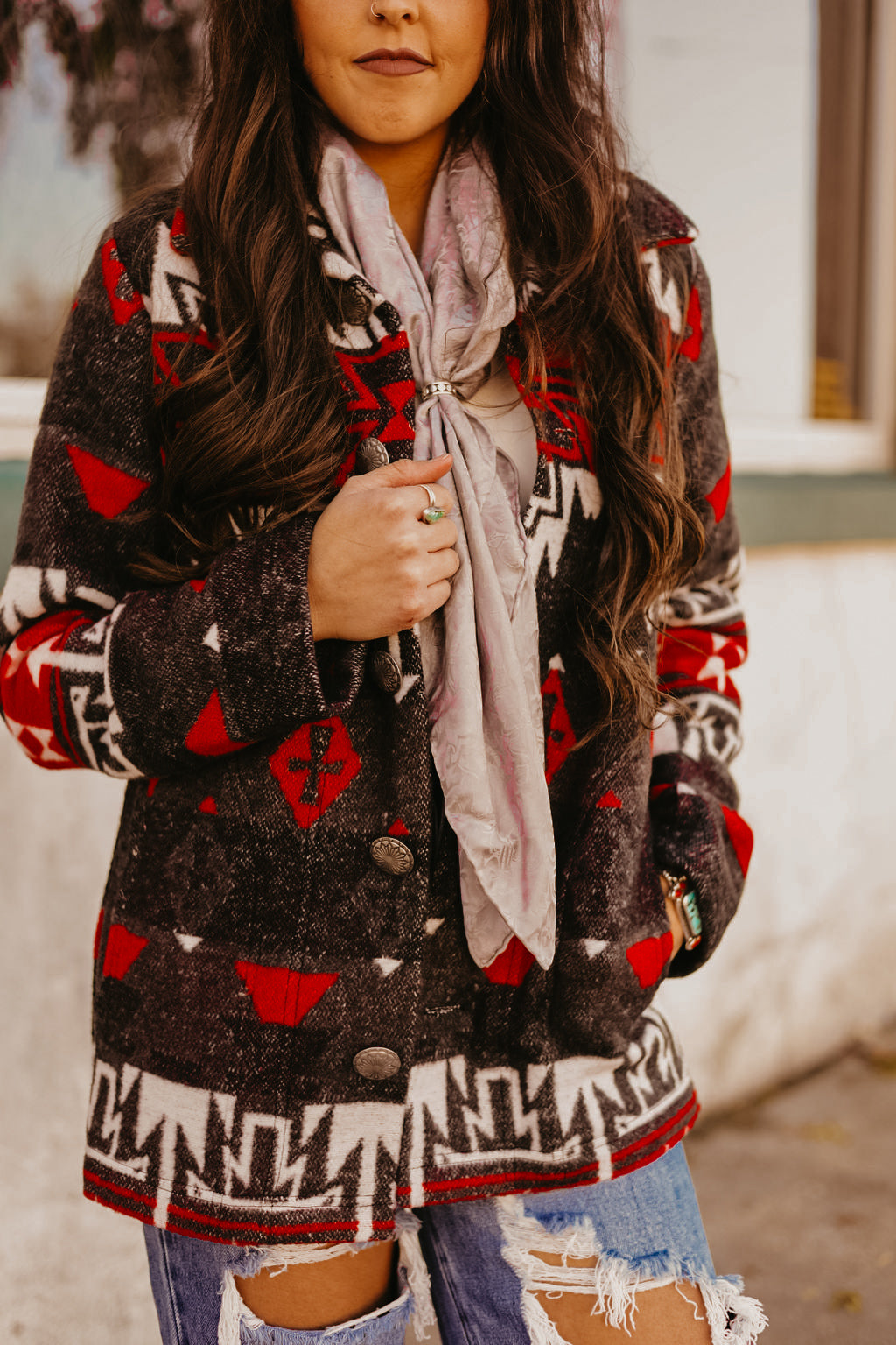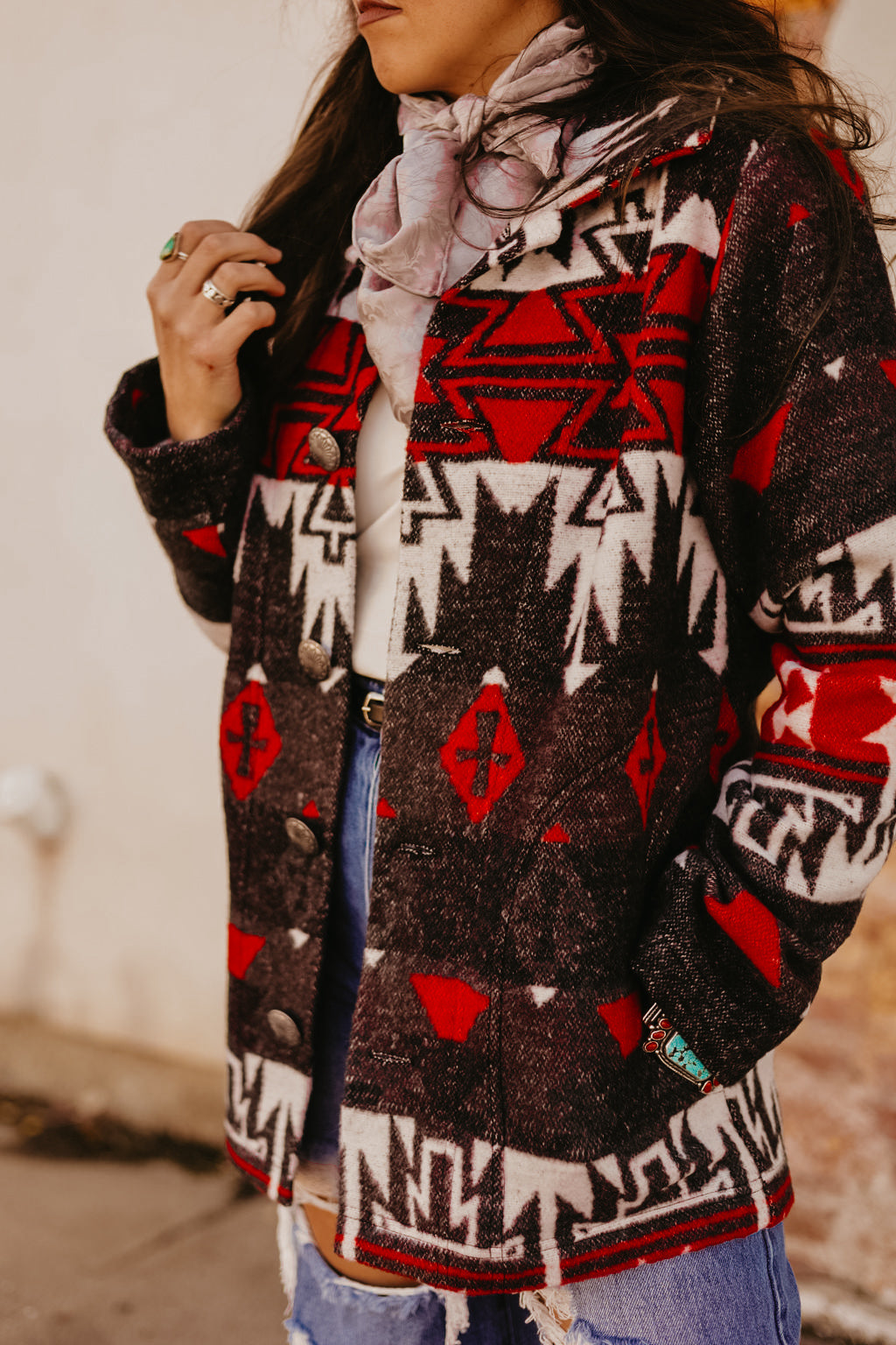 Gray, Red, & White Southwest Wool Blend Trail or Riding Coat