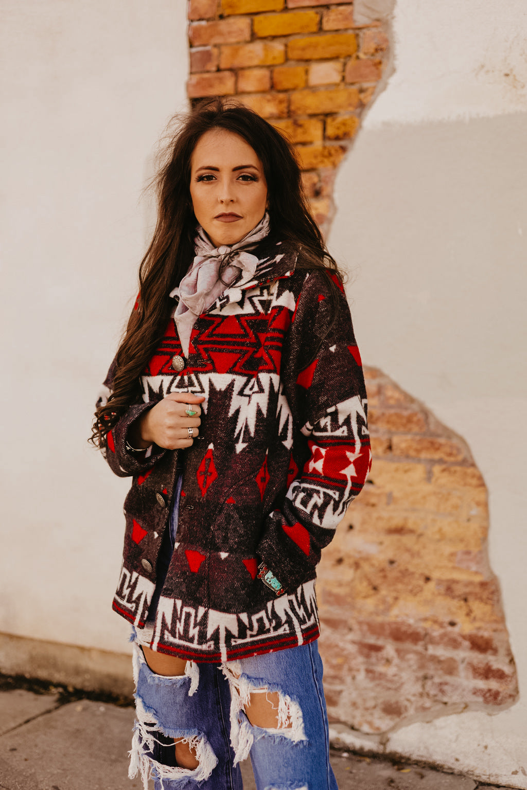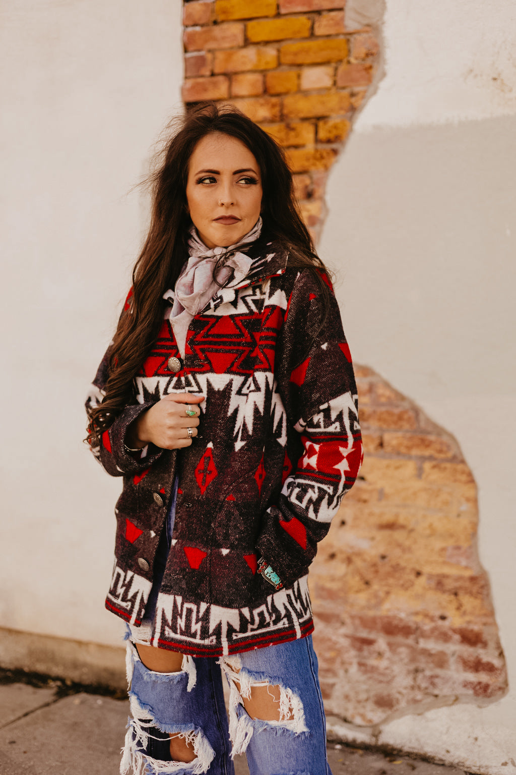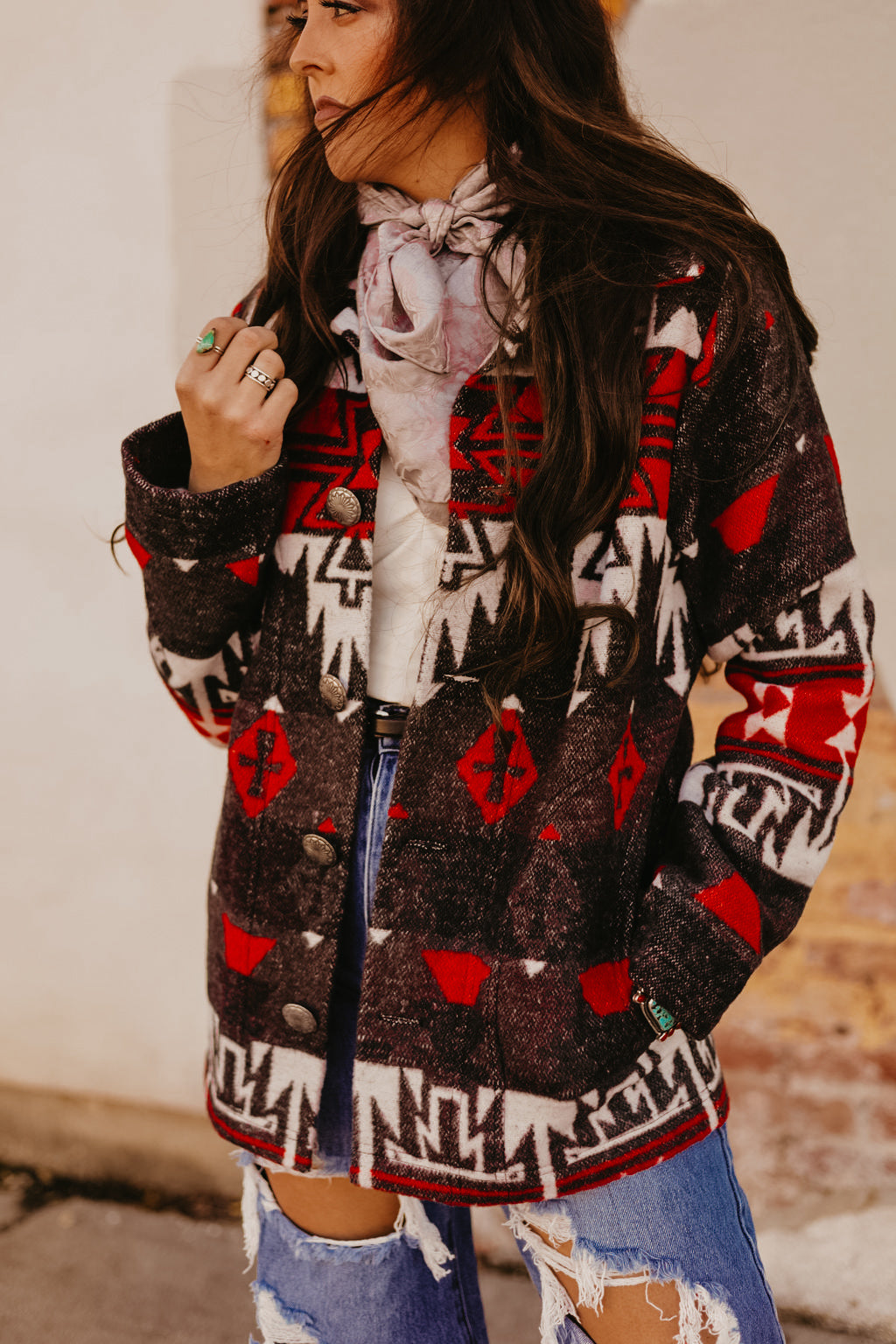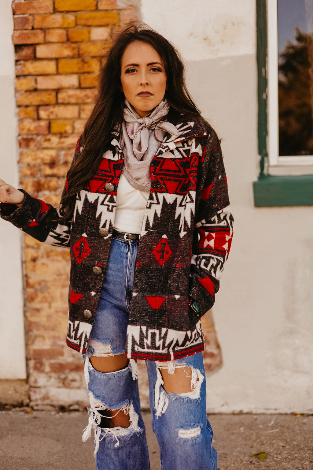 Gray, Red, & White Southwest Wool Blend Trail or Riding Coat
