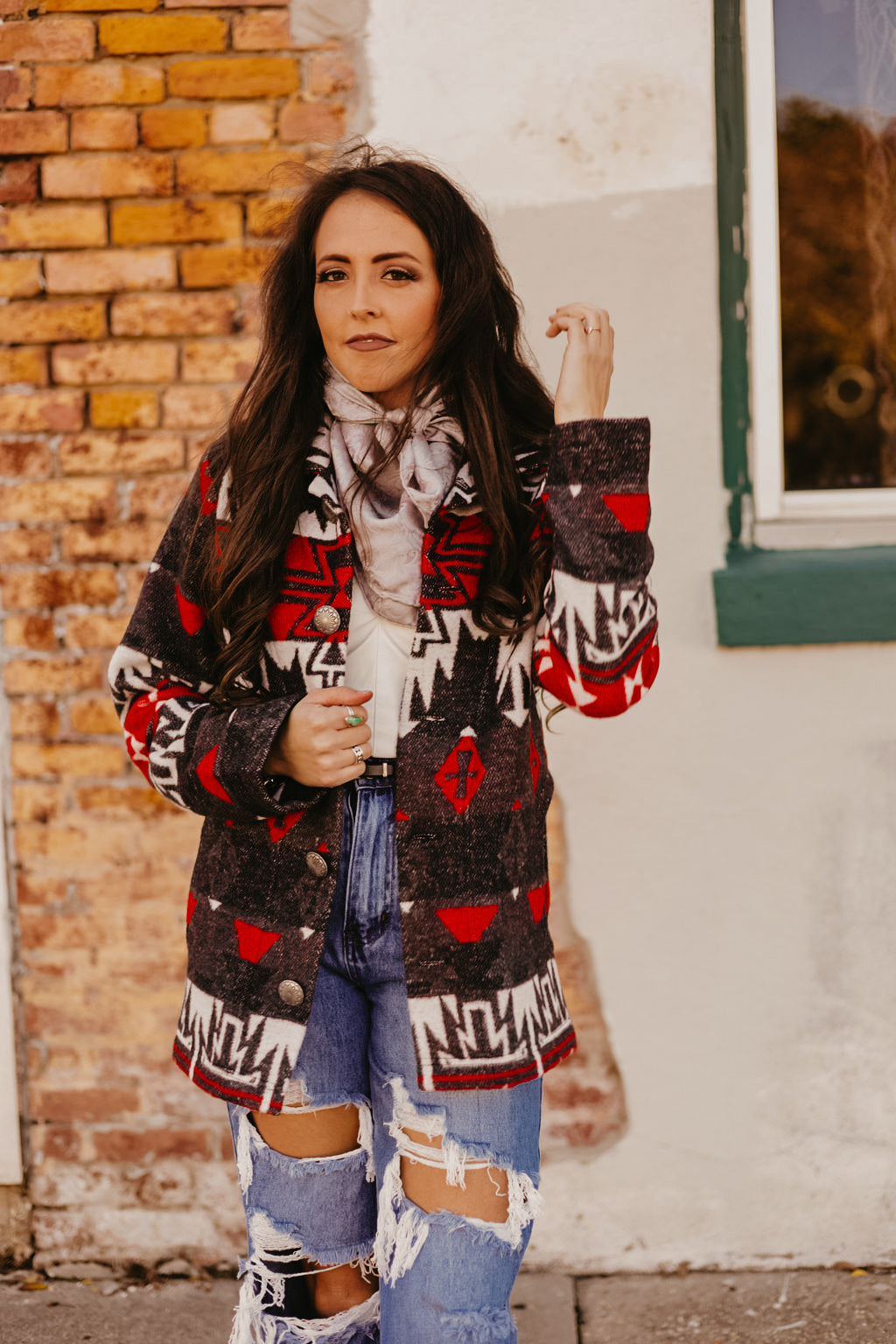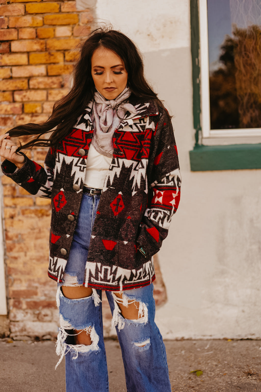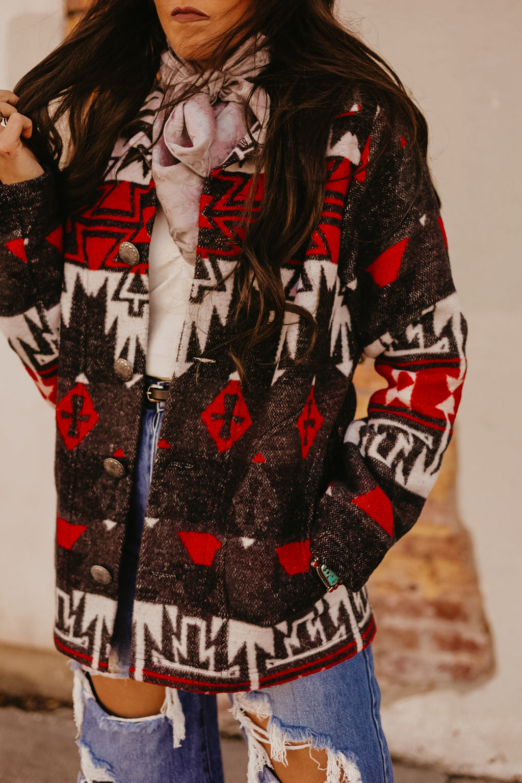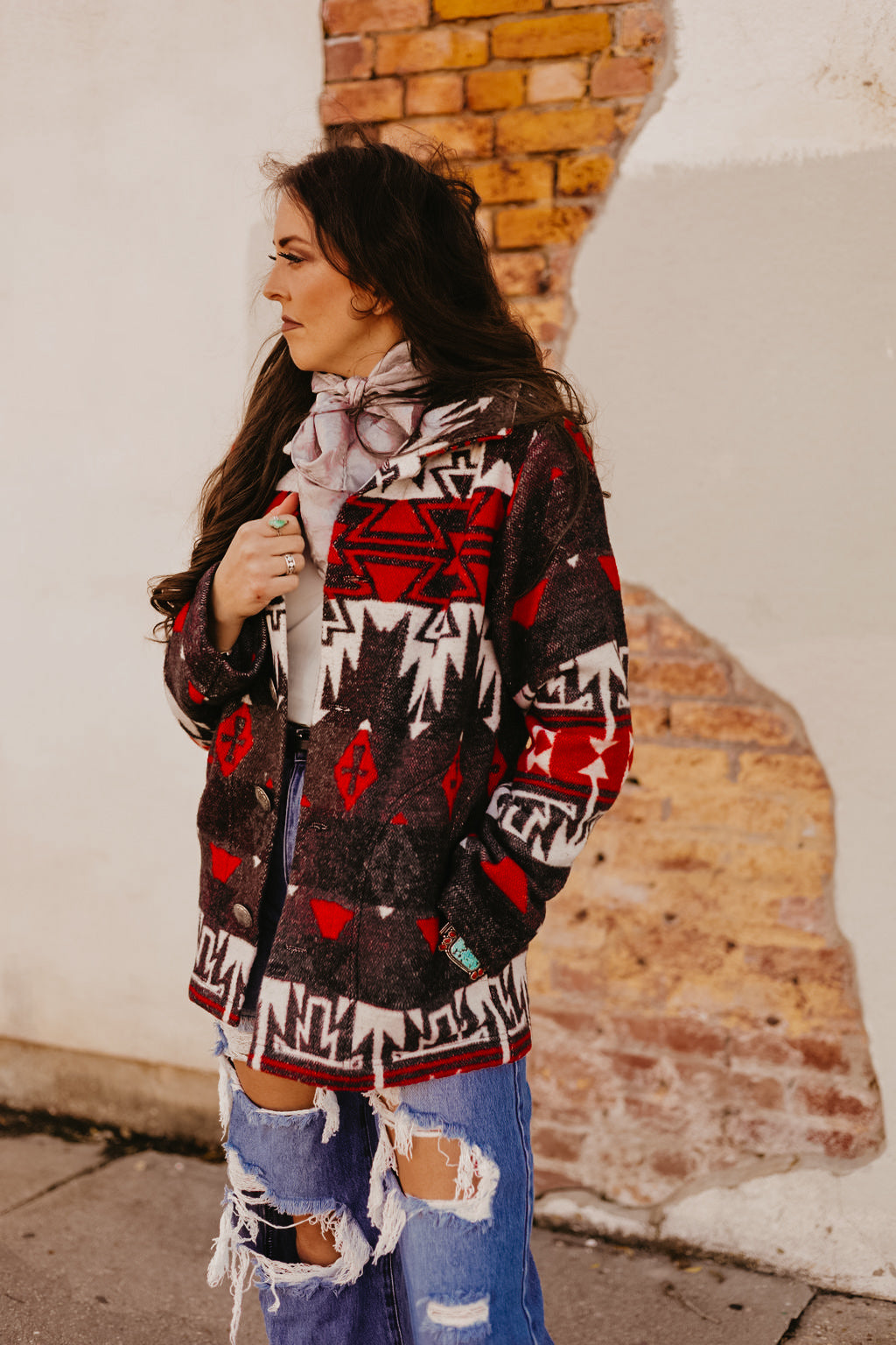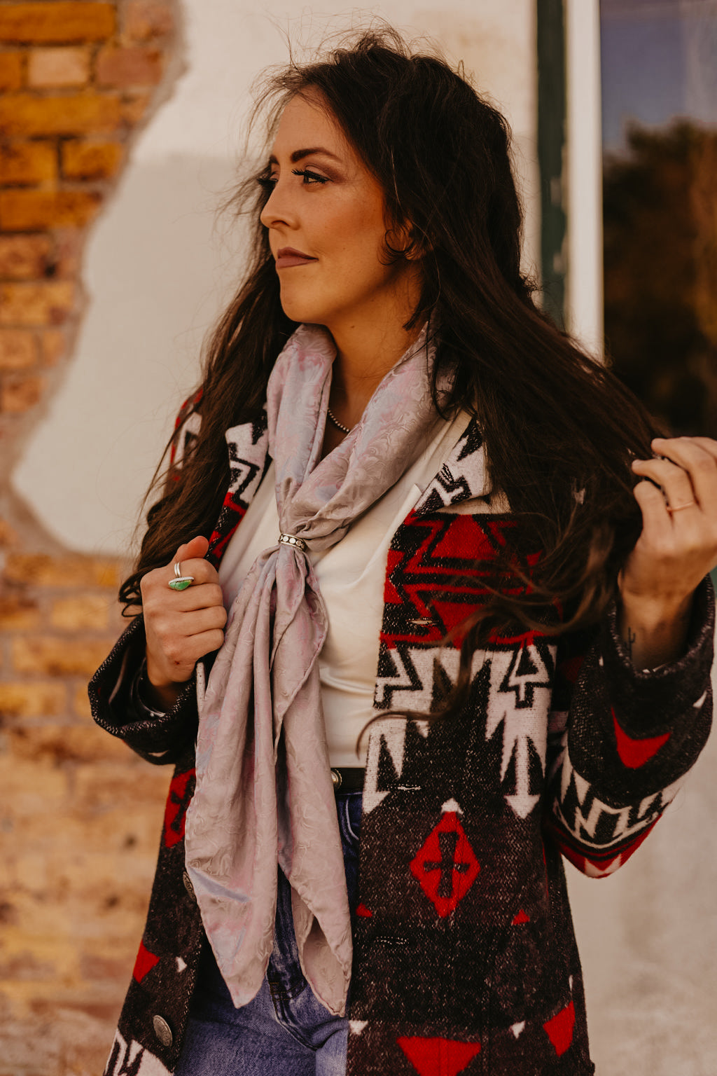 Gray, Red, & White Southwest Wool Blend Trail or Riding Coat