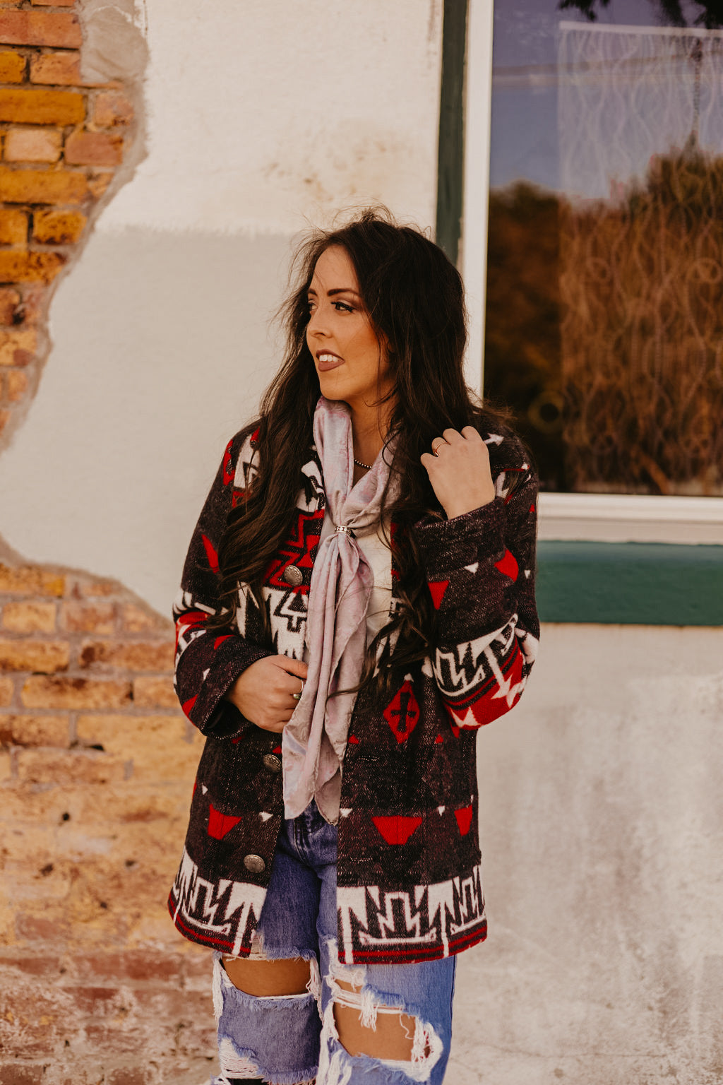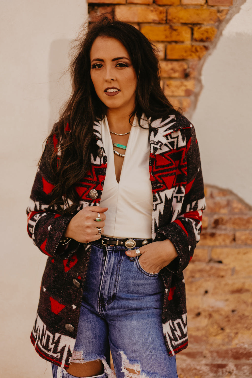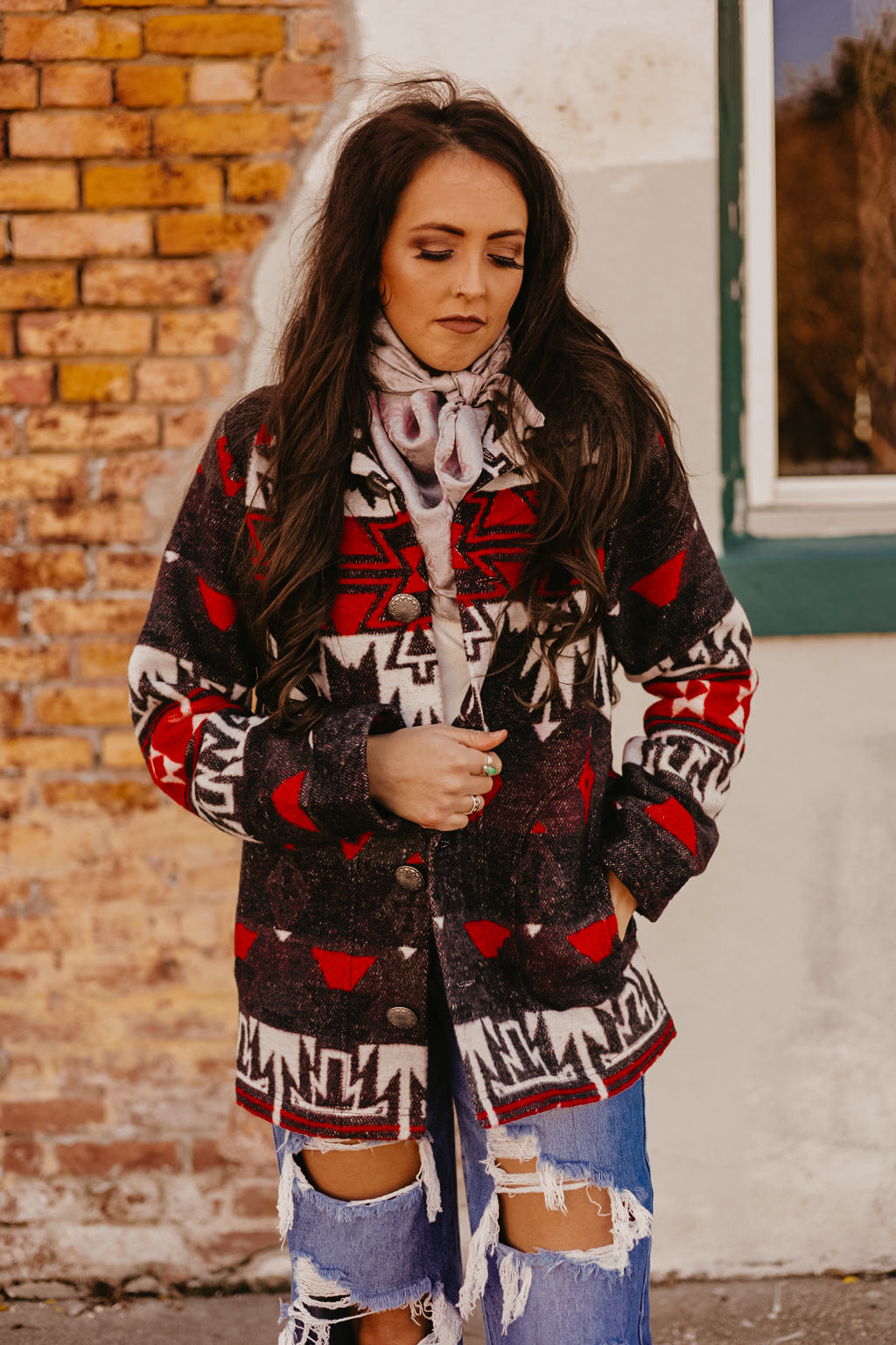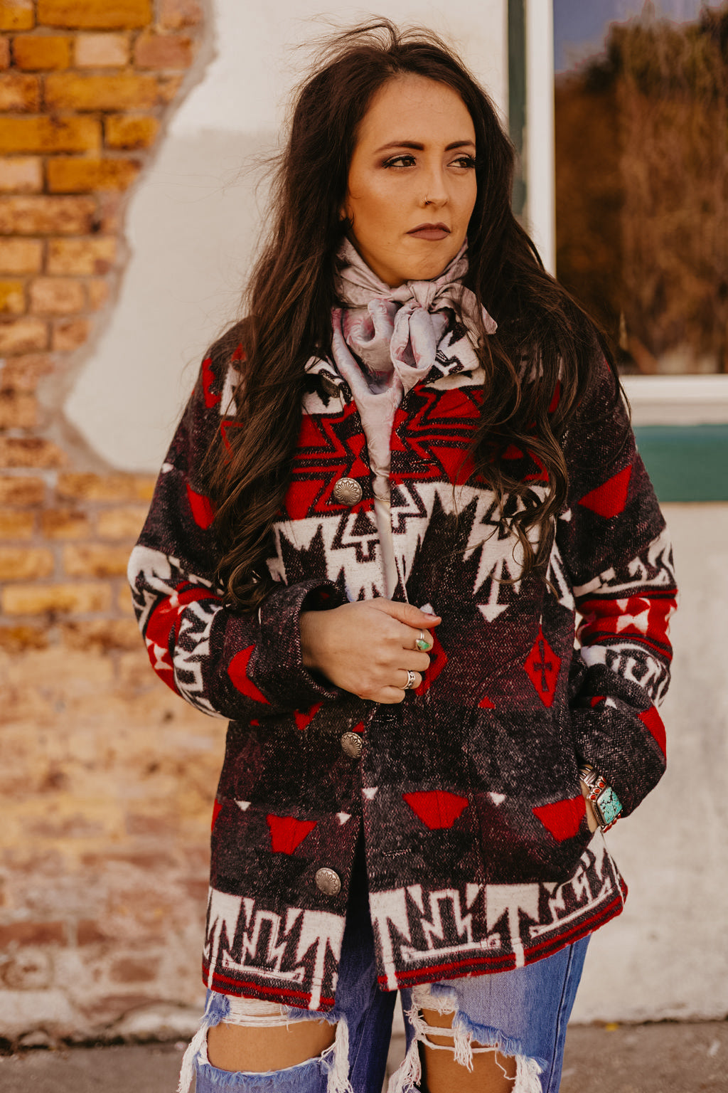 Gray, Red, & White Southwest Wool Blend Trail or Riding Coat