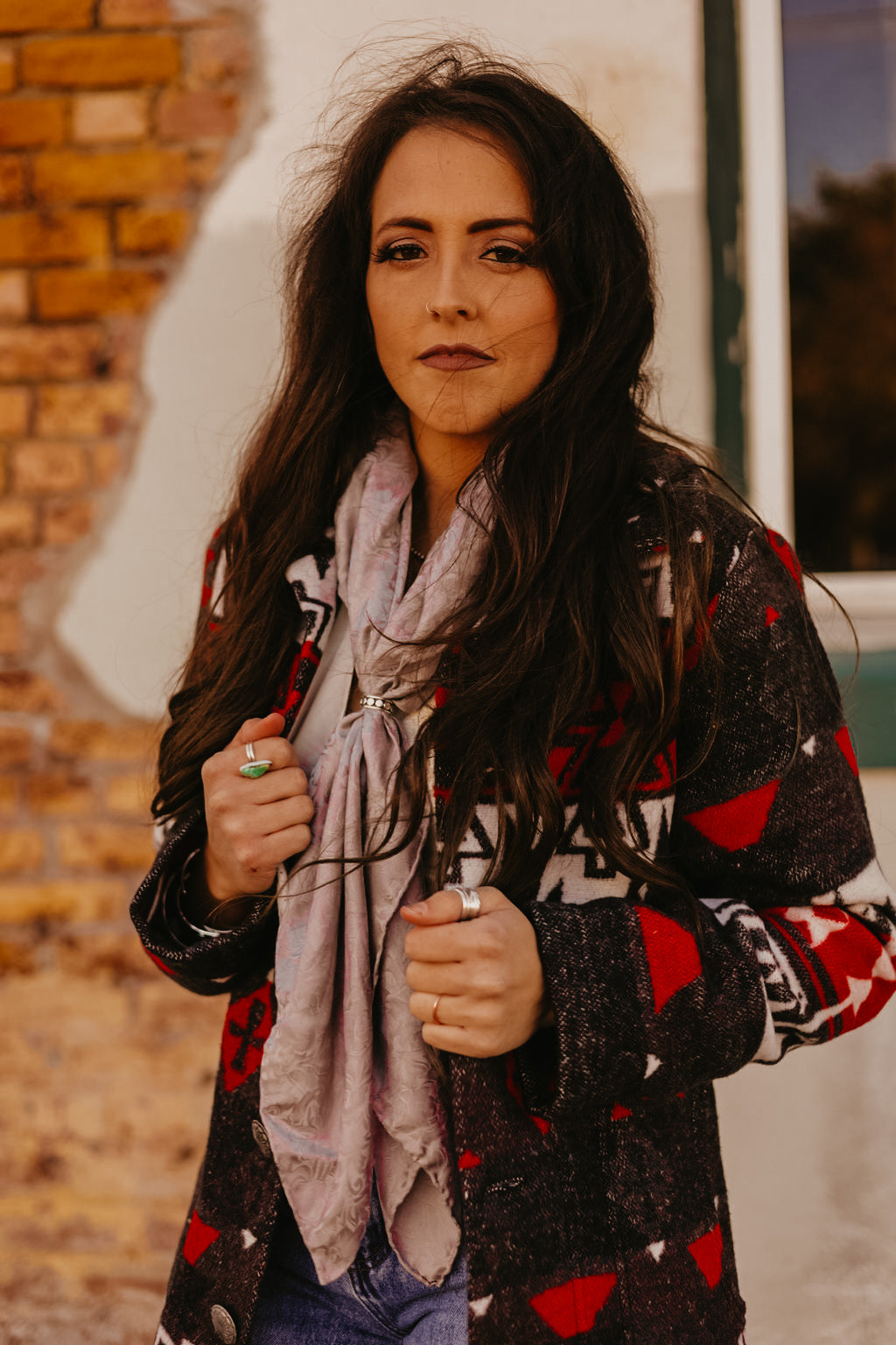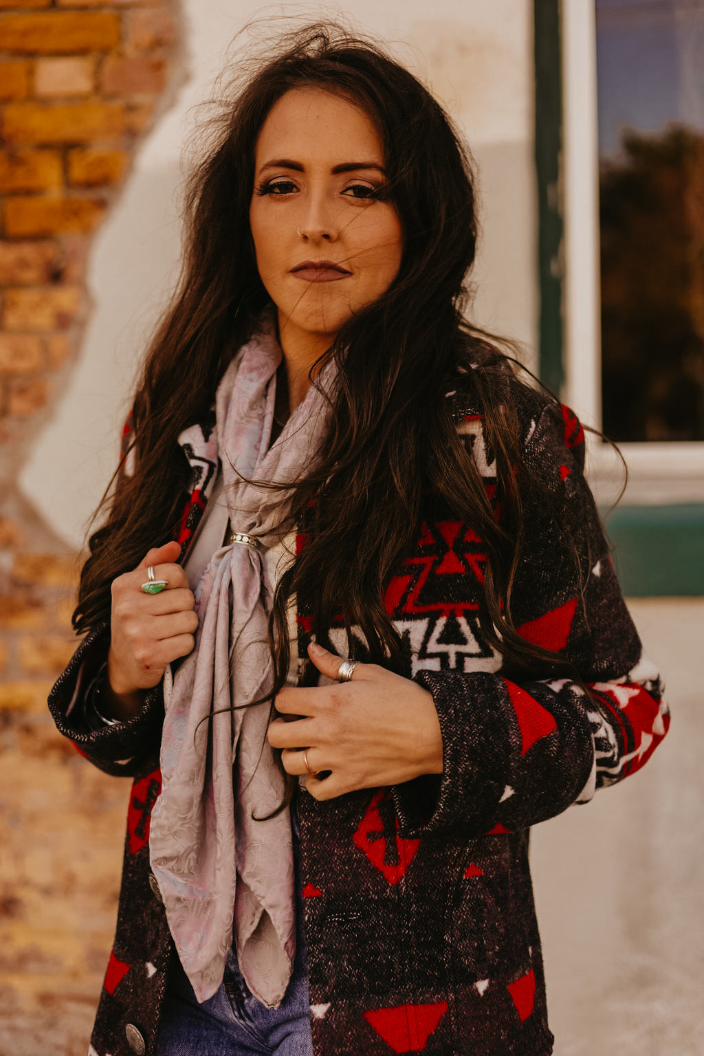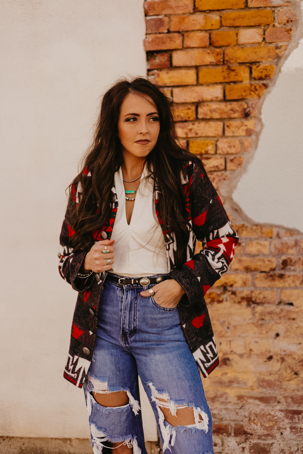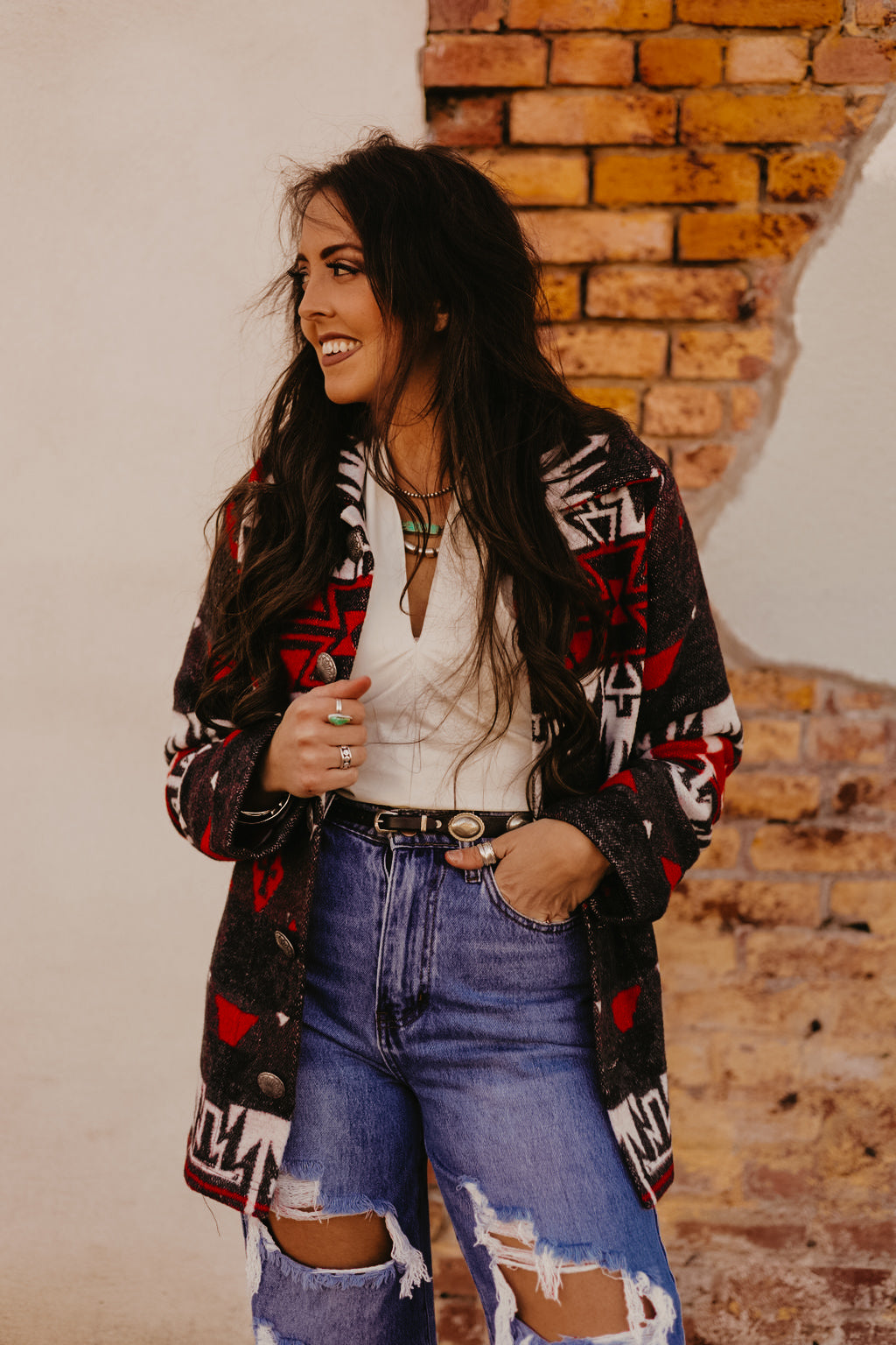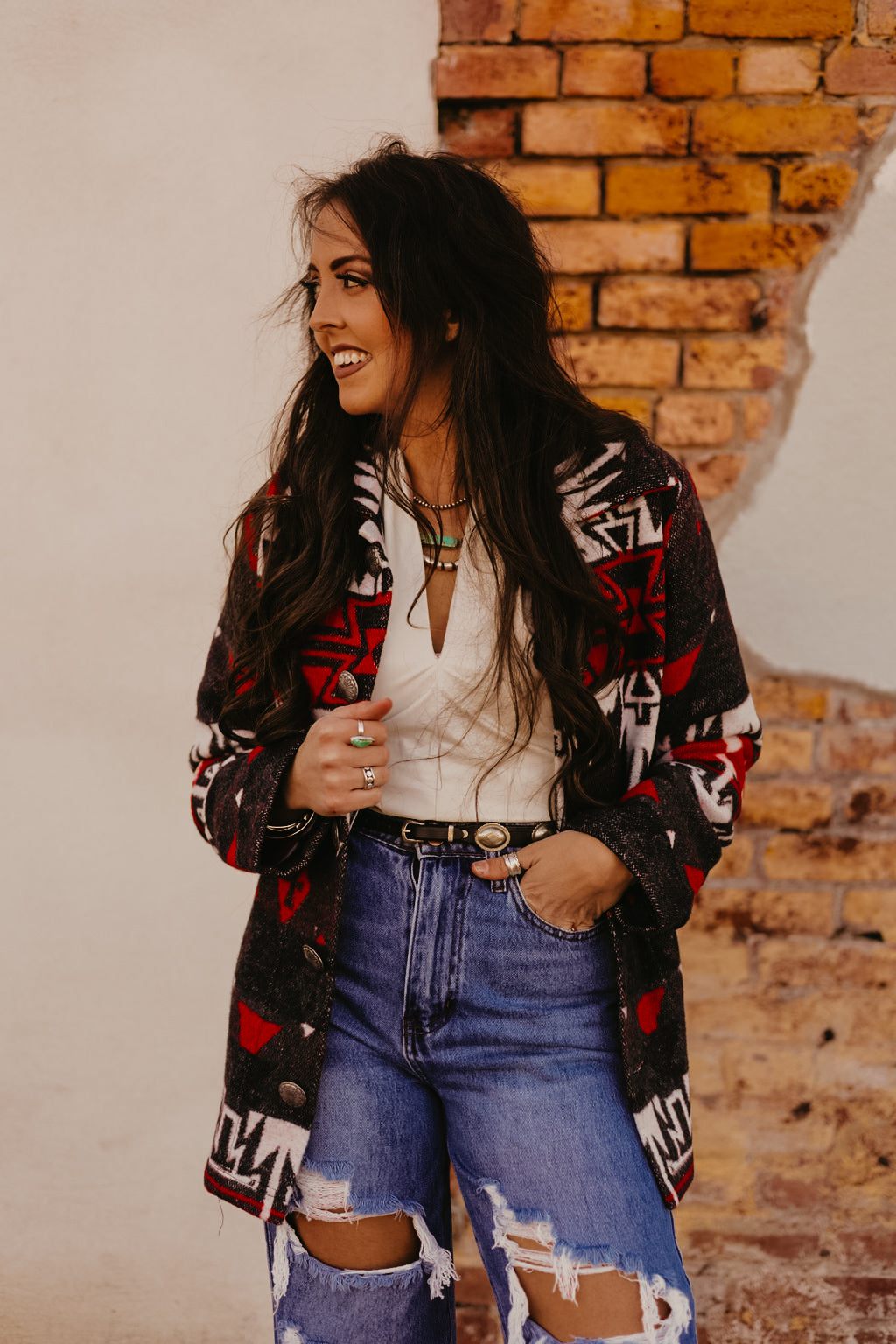 Gray, Red, & White Southwest Wool Blend Trail or Riding Coat