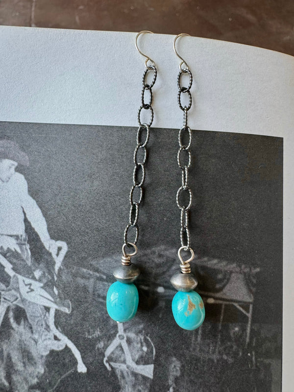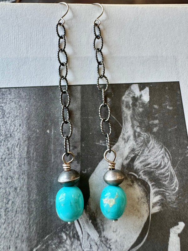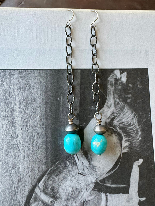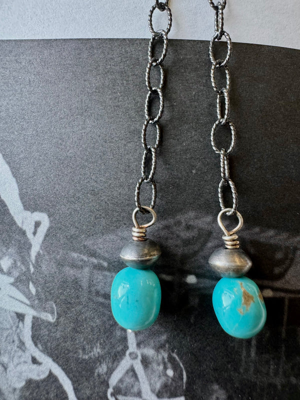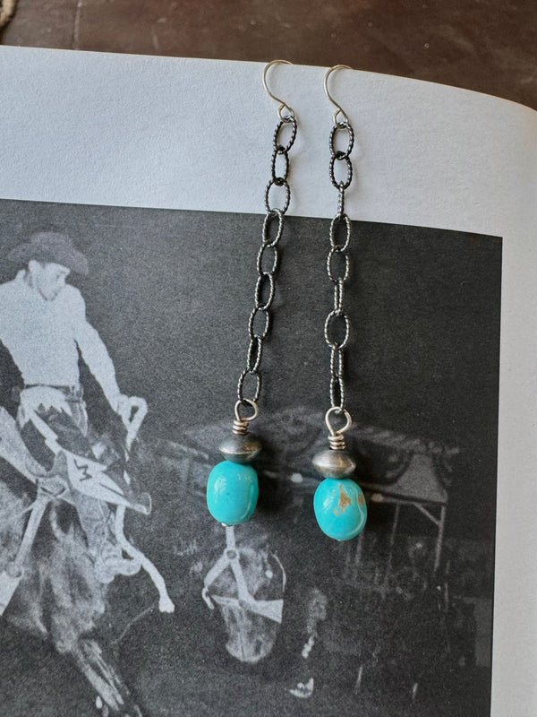 Dangle Chain Link Earring with Turquoise End Approximately 3” long