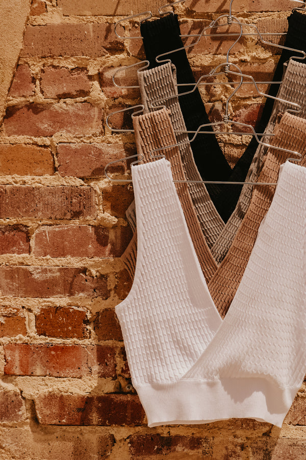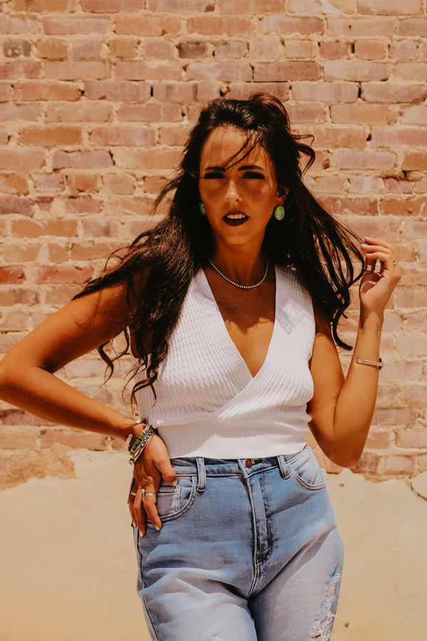 Deep V-Neck Sweater Knit Tank Top Cropped fit 70% Viscose 30% Polyester