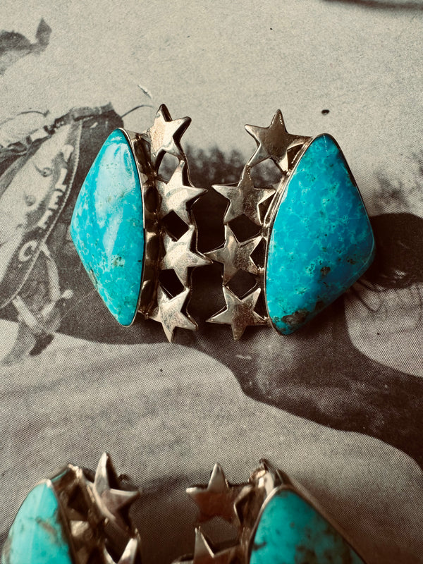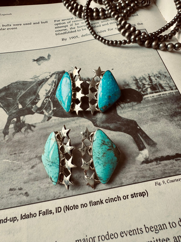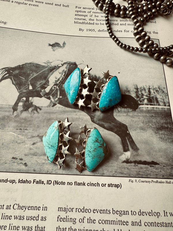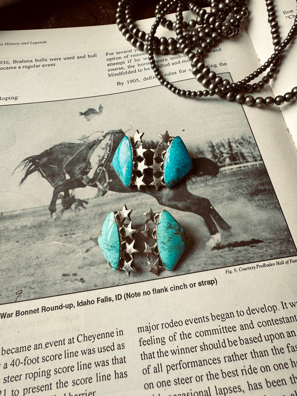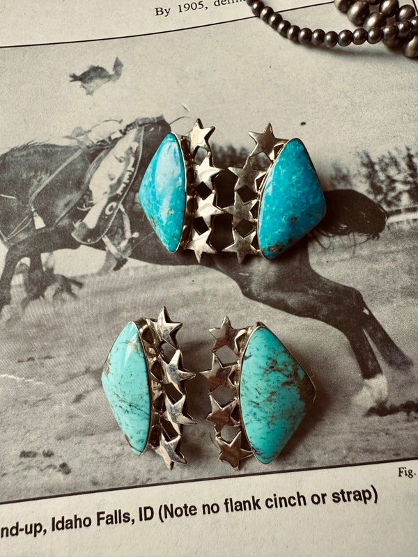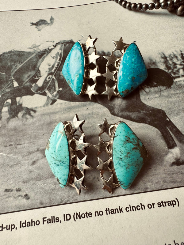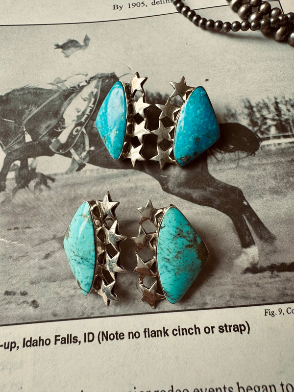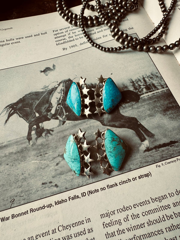 Large Chunky Turquoise & Sterling Silver Star Stud Earrings 1.5” x 1”  Sterling Silver