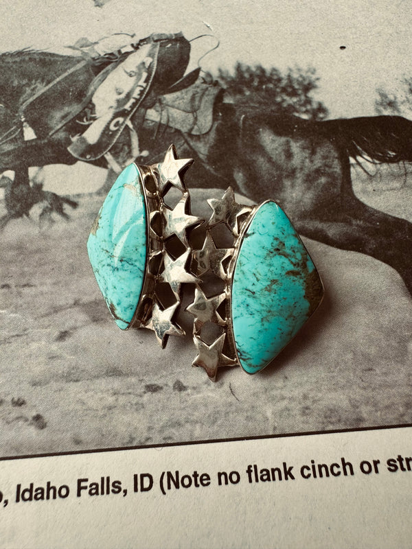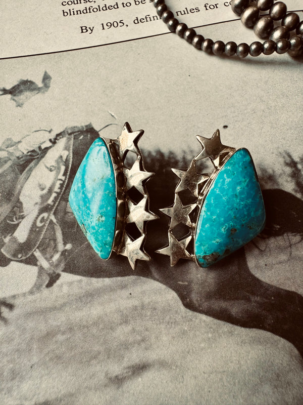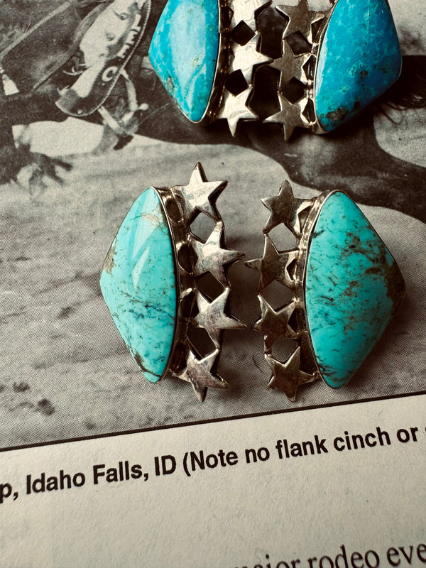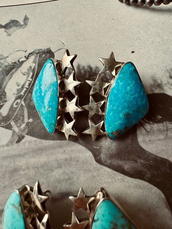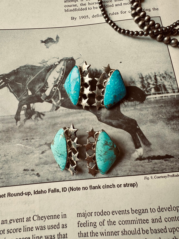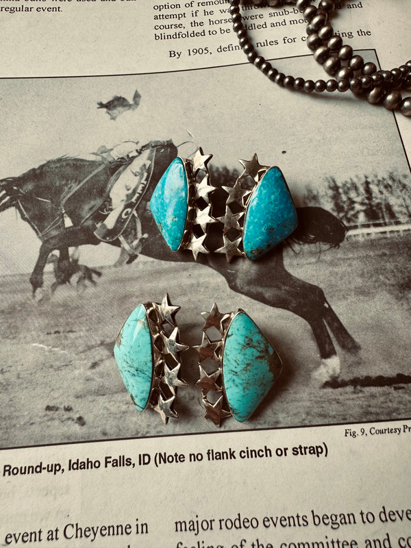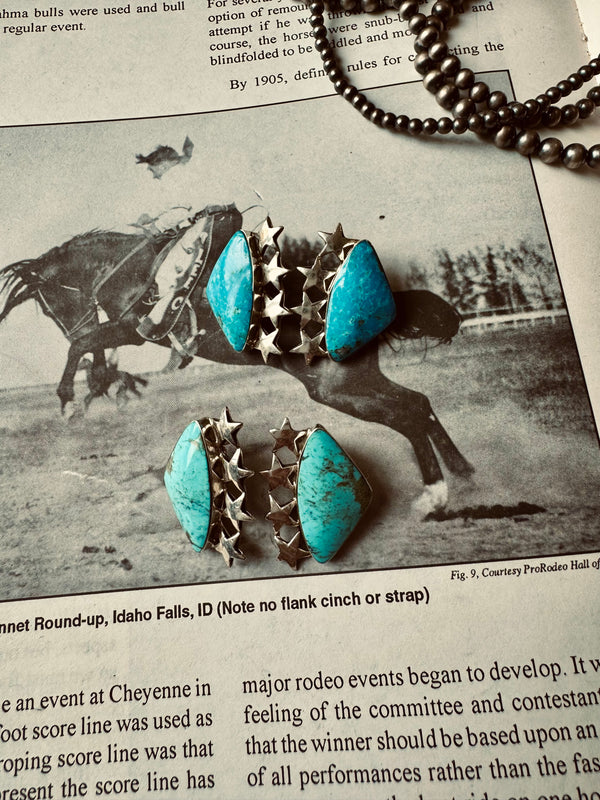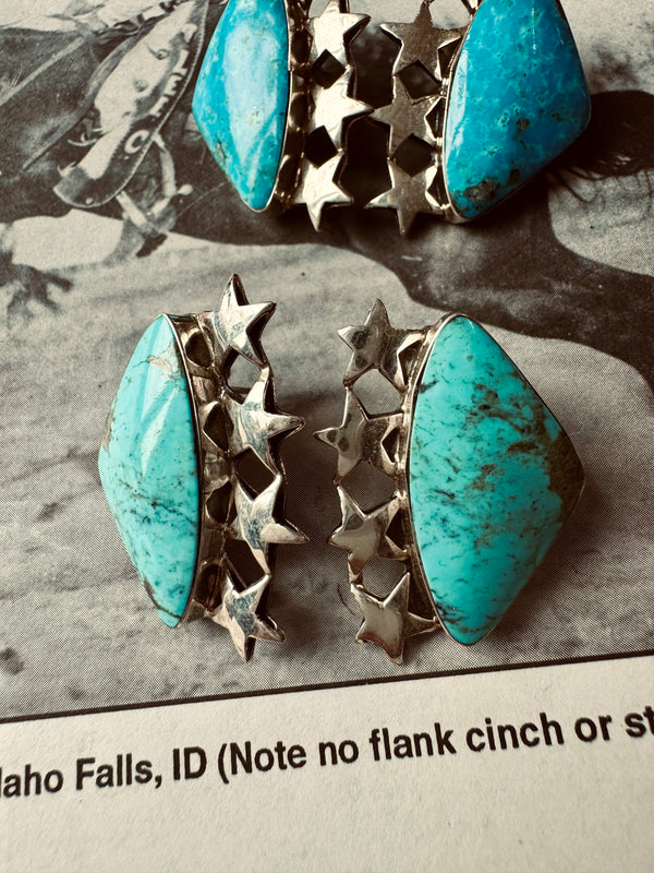 Large Chunky Turquoise & Sterling Silver Star Stud Earrings 1.5” x 1”  Sterling Silver