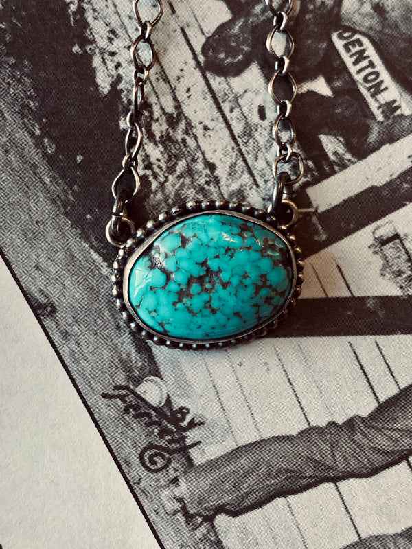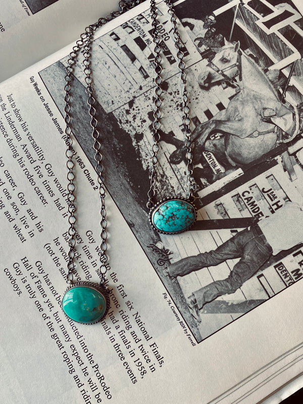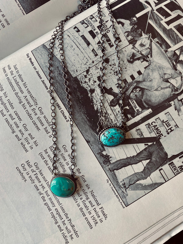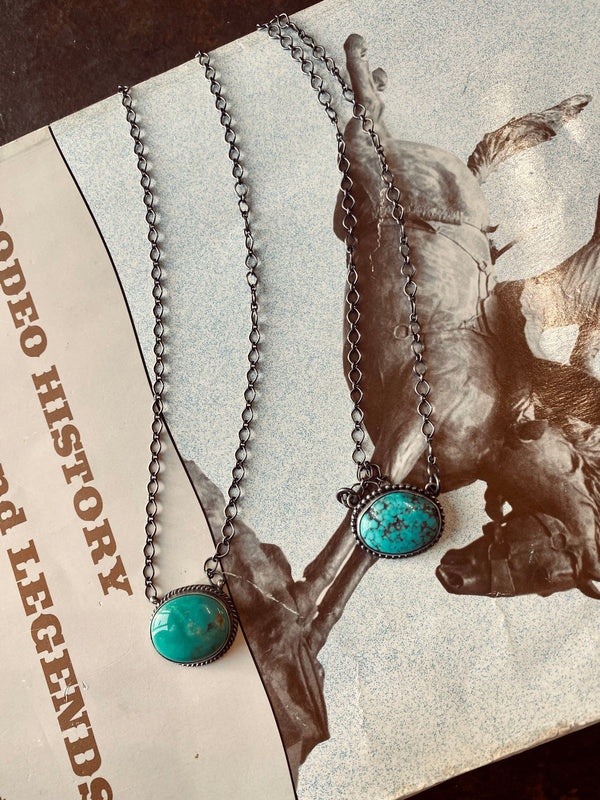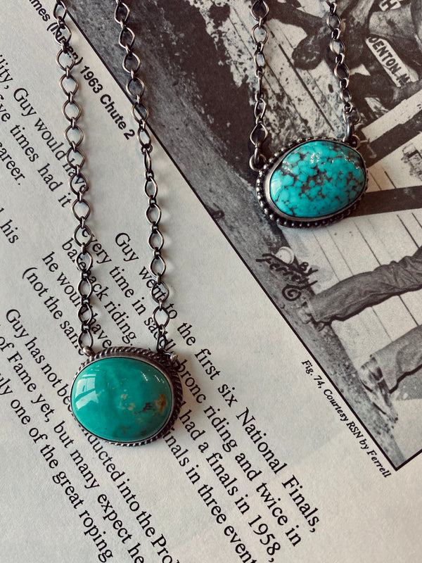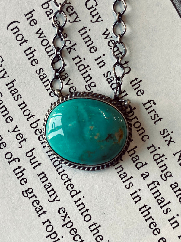 Oval Turquoise & Sterling Silver Chain Pendant Necklace