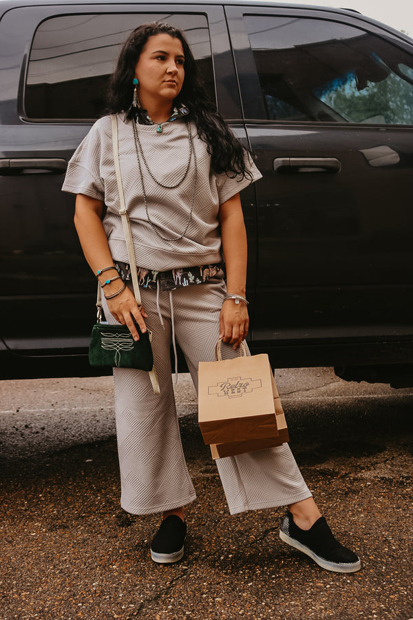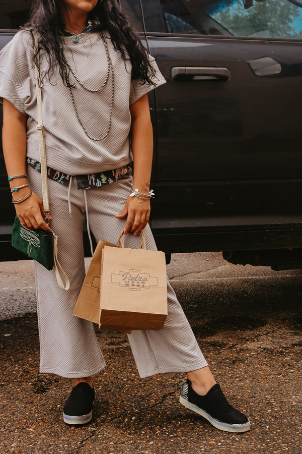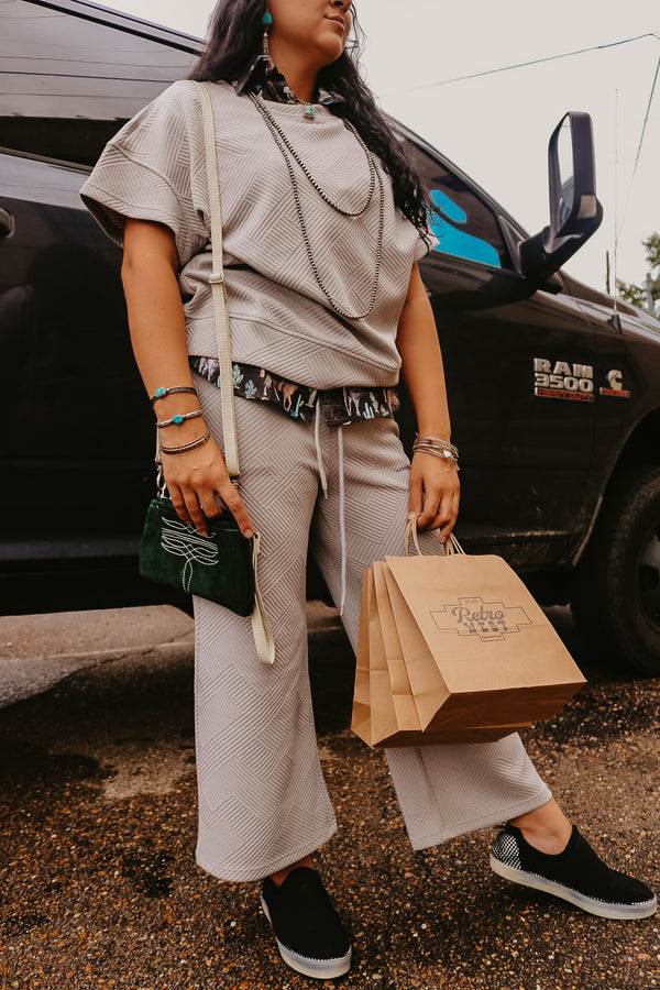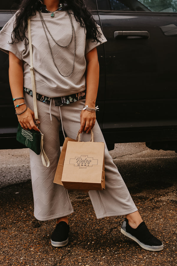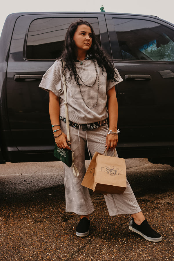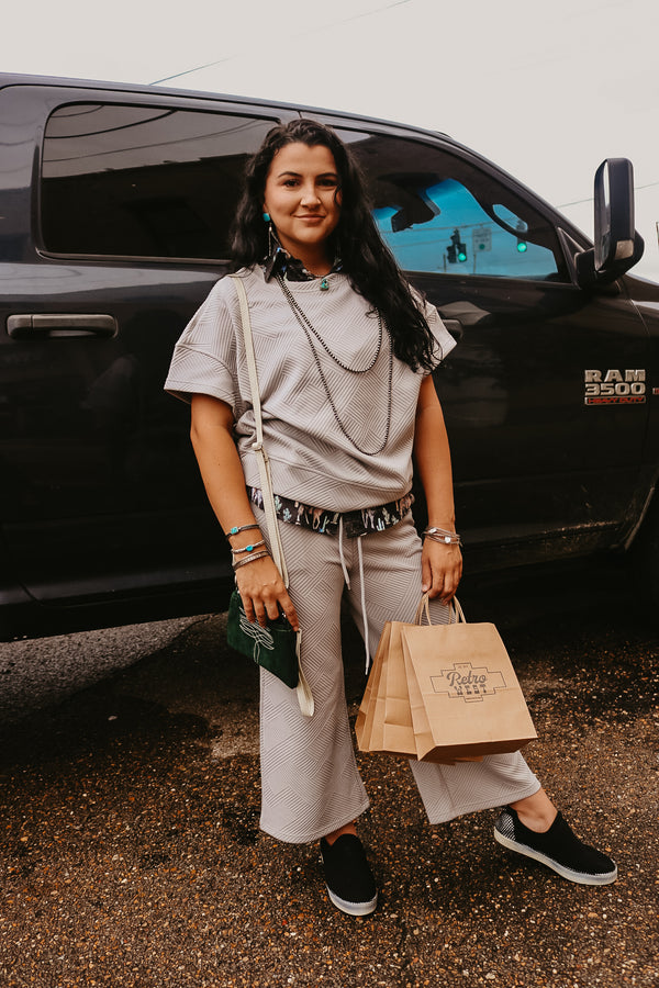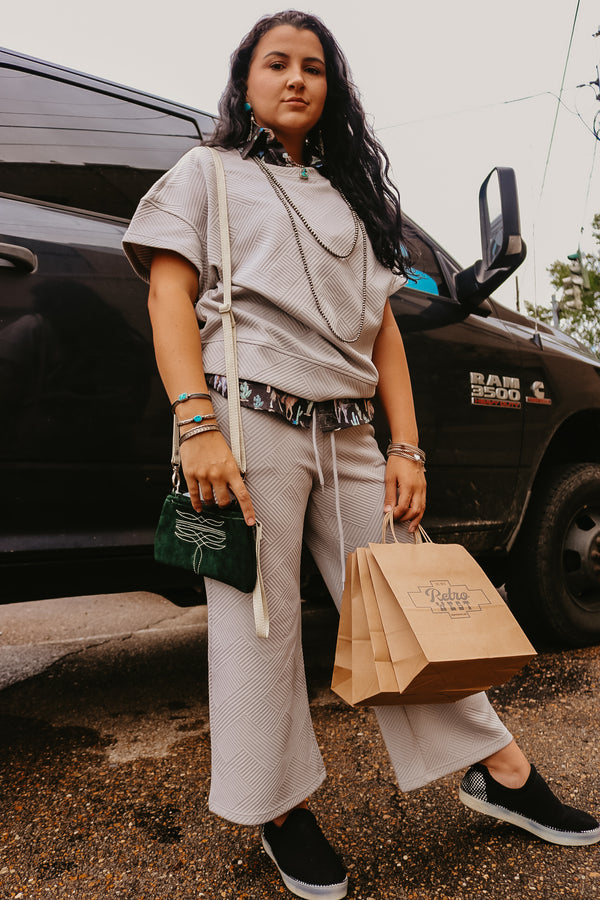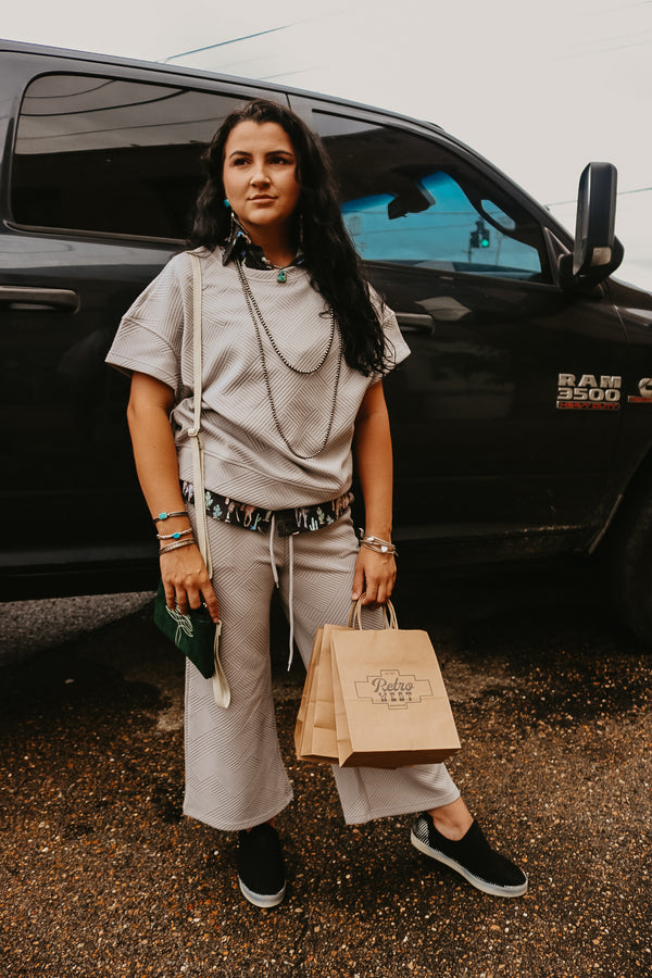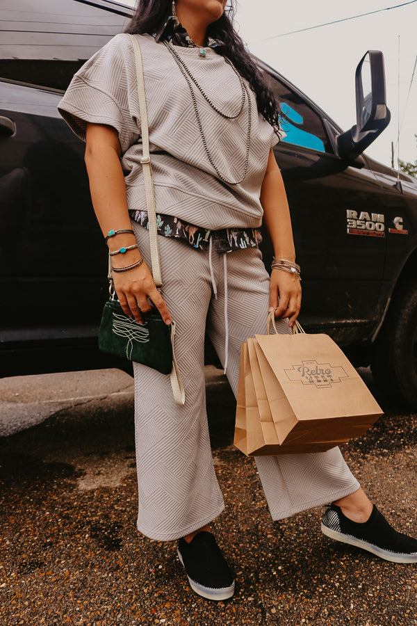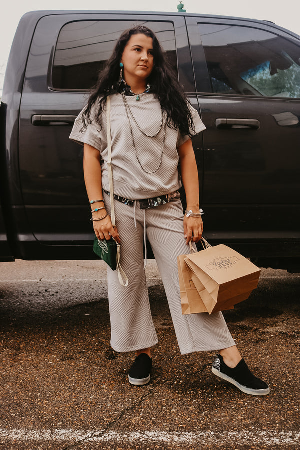 Textured Loose Fit T-Shirt and Drawstrings Pants Set