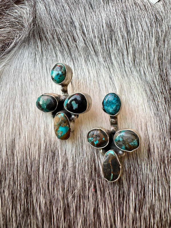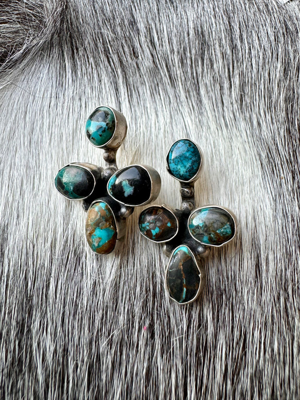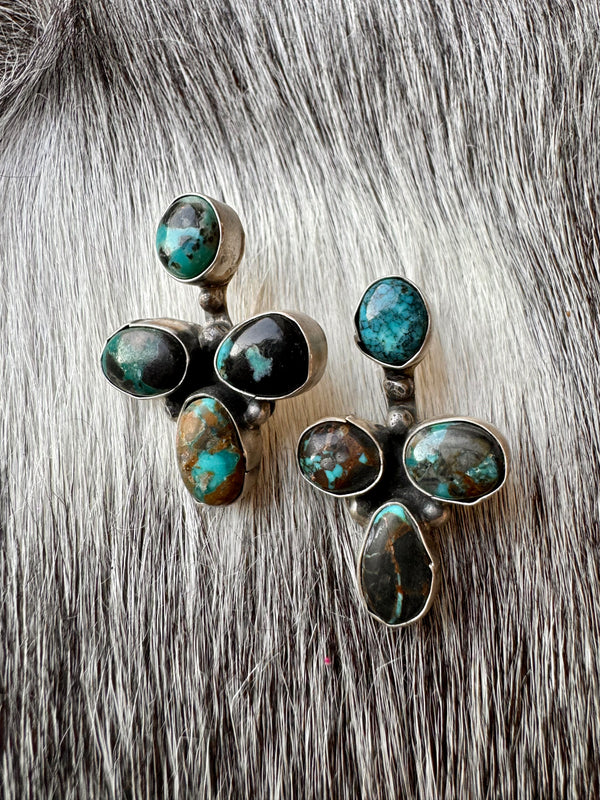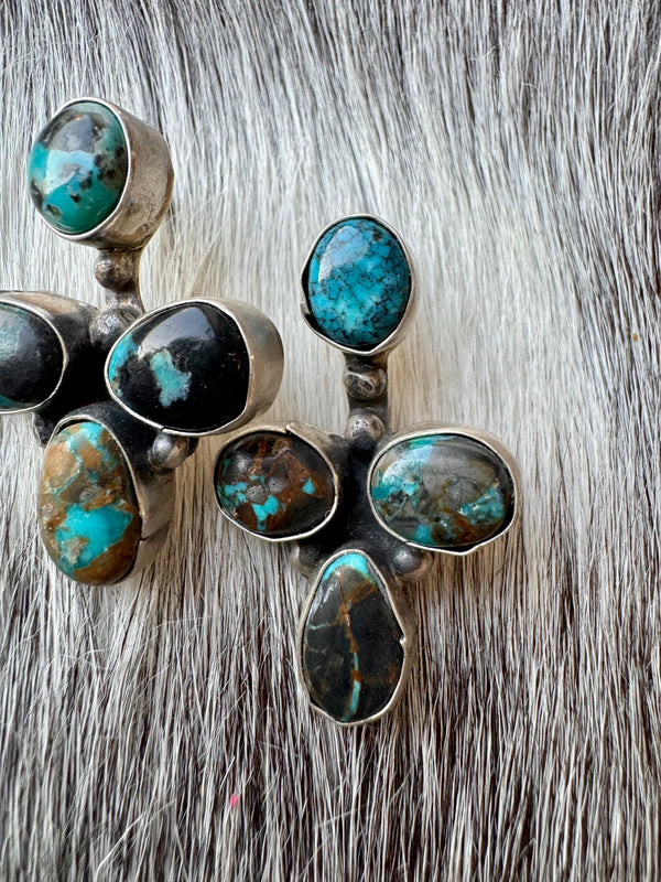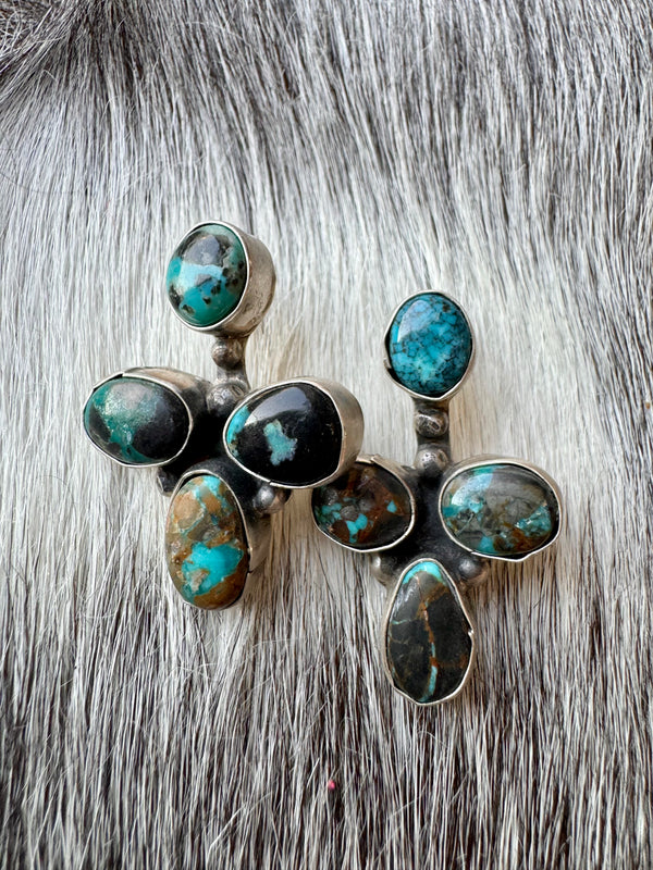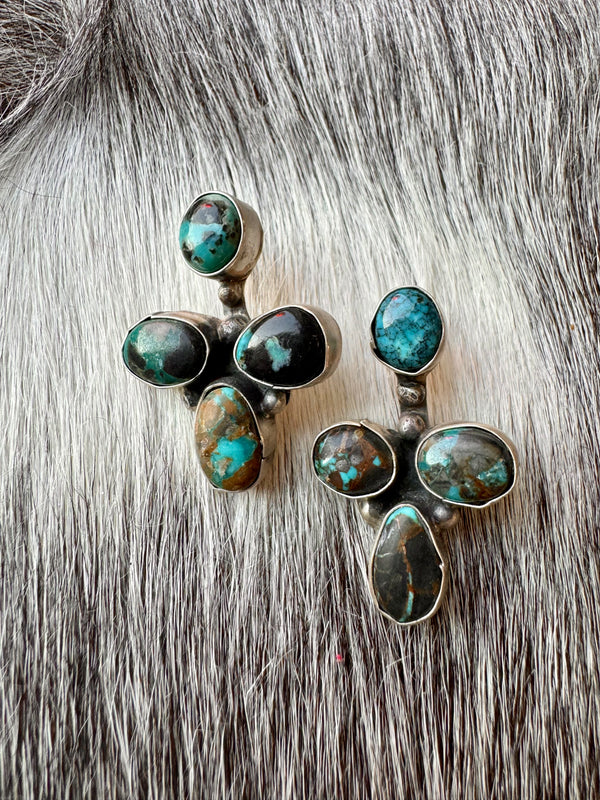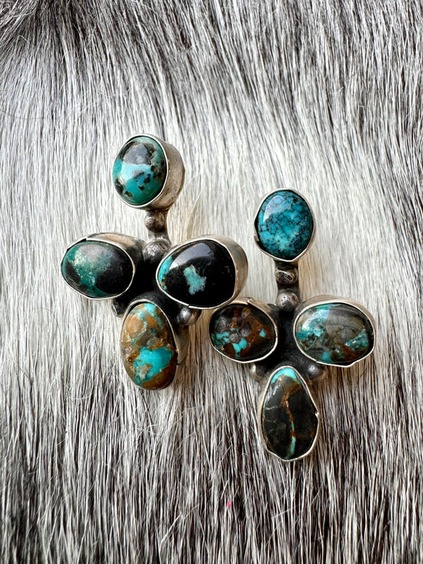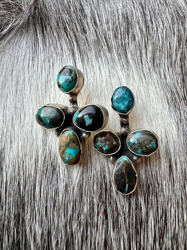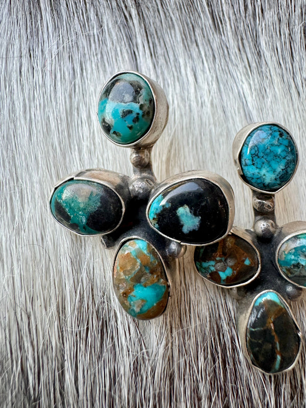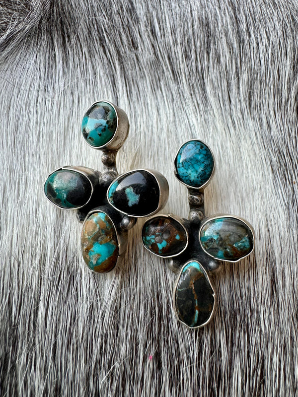 Large Navajo Handmade Deep Blue Tibetan Turquoise Sterling Silver Cluster Chandelier Studs