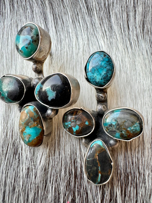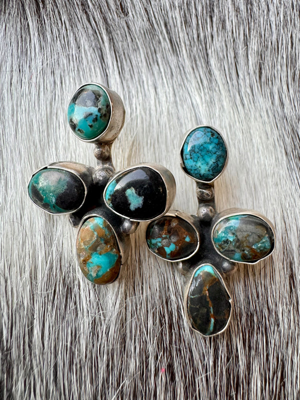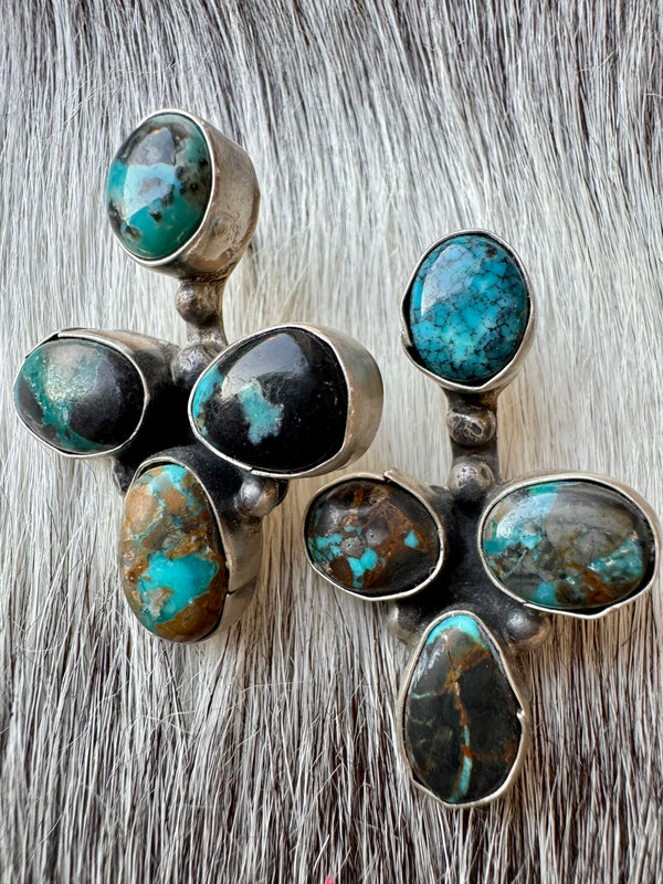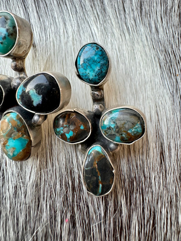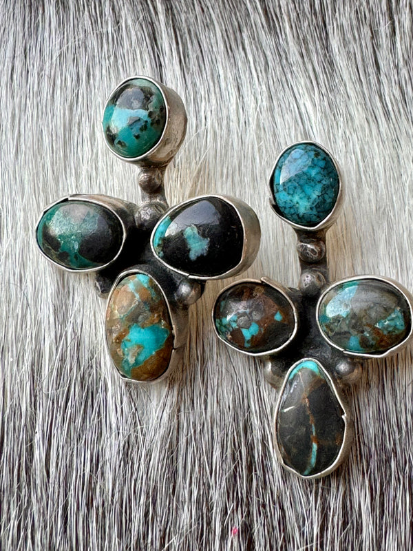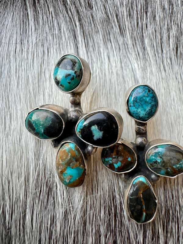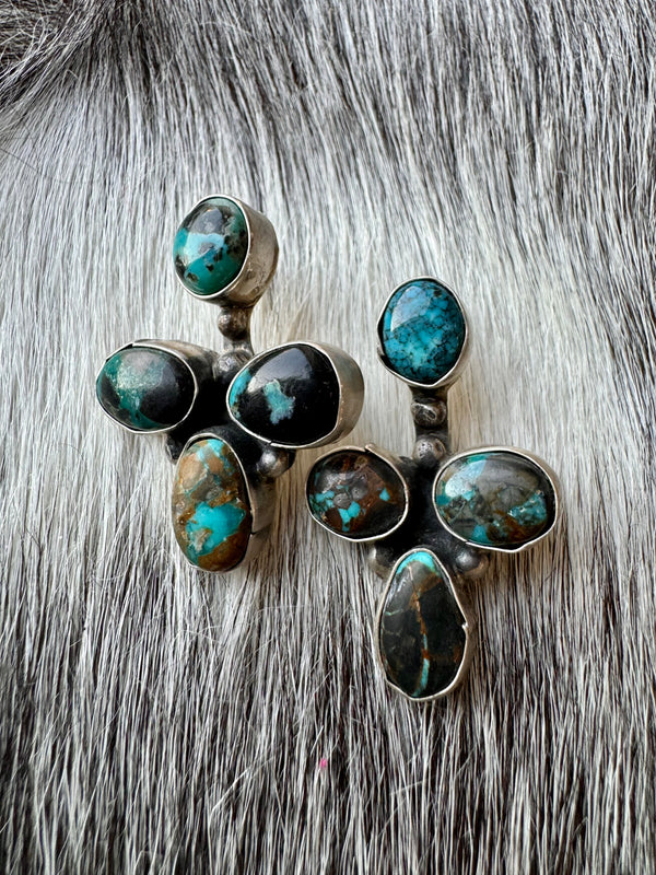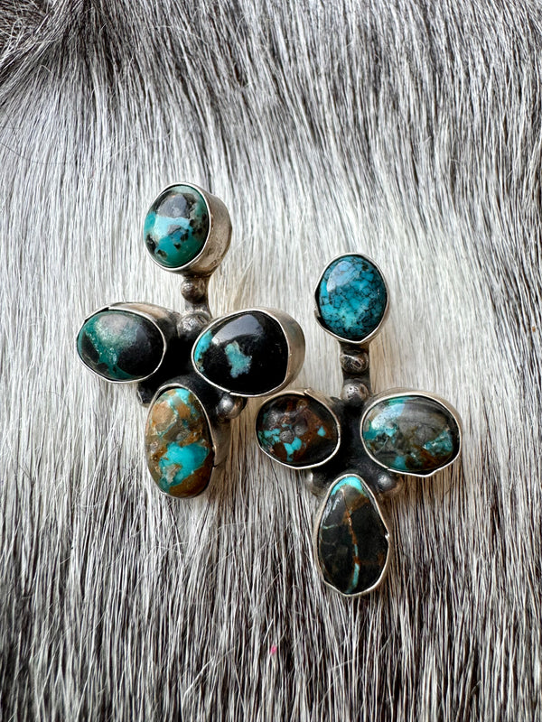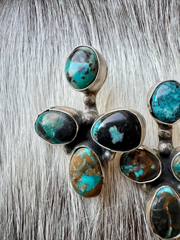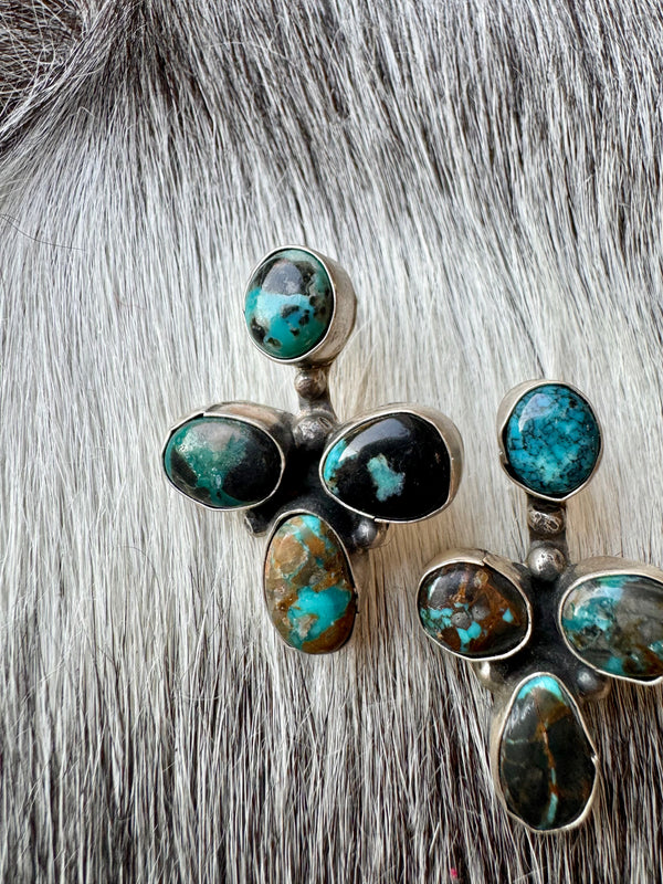 Large Navajo Handmade Deep Blue Tibetan Turquoise Sterling Silver Cluster Chandelier Studs