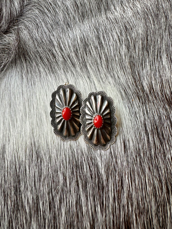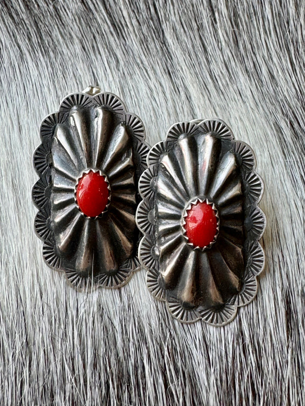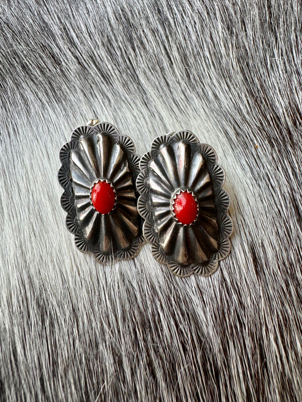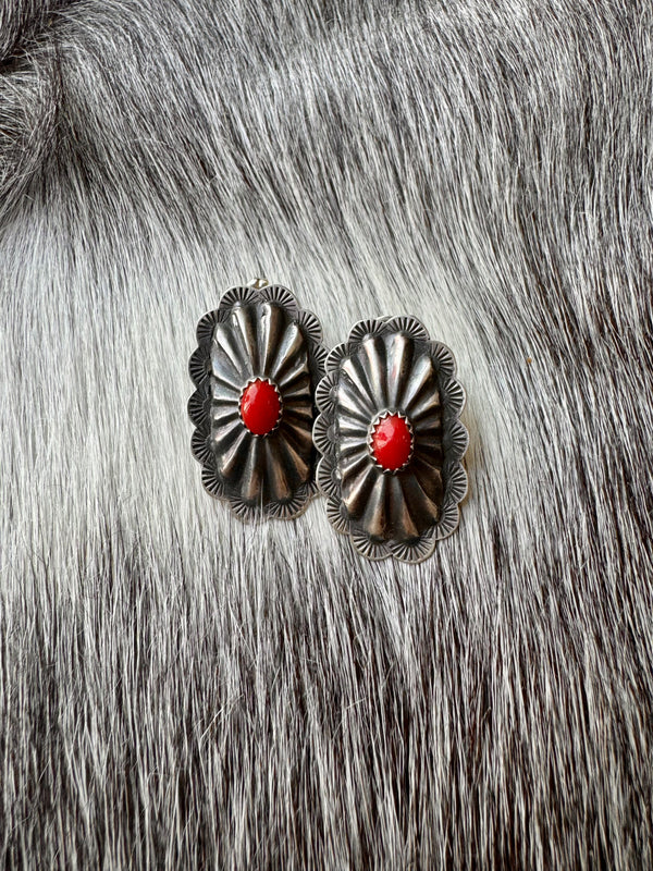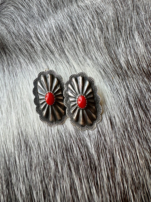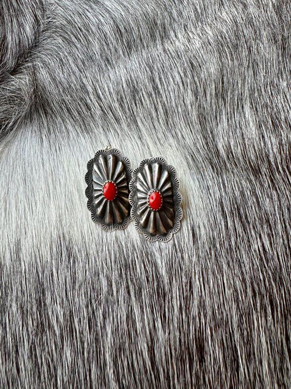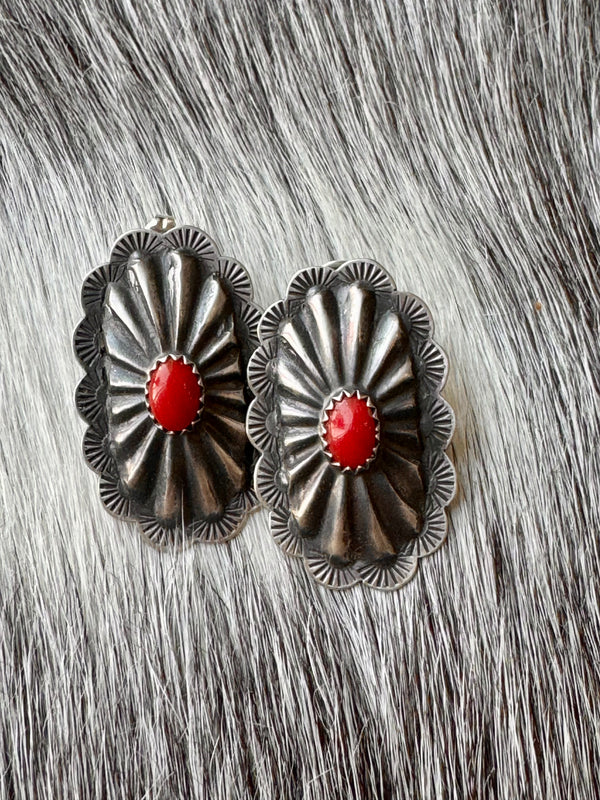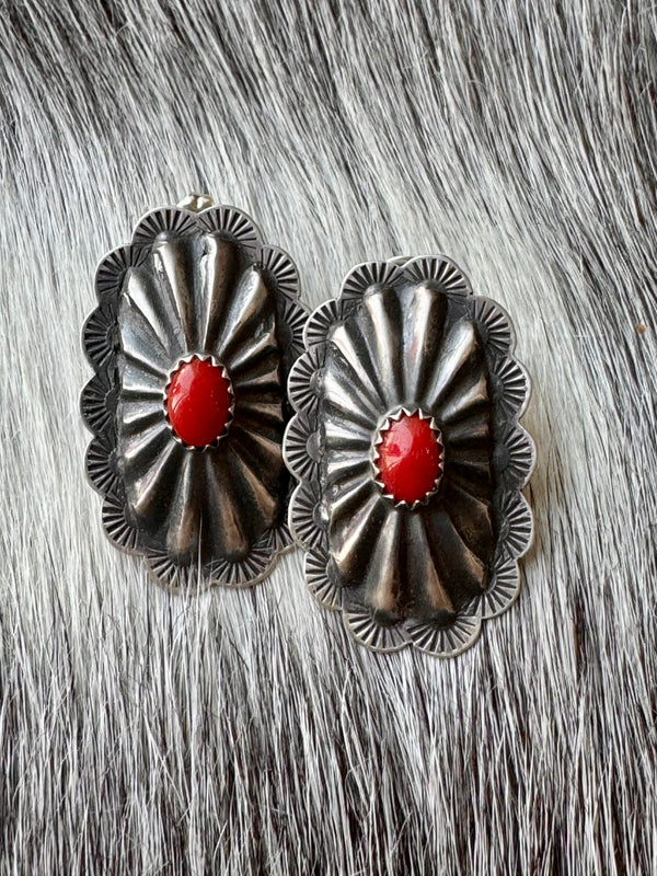 Spiny Oyster & Sterling Silver Oval Concho Stud Earrings