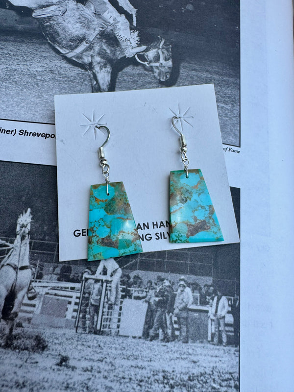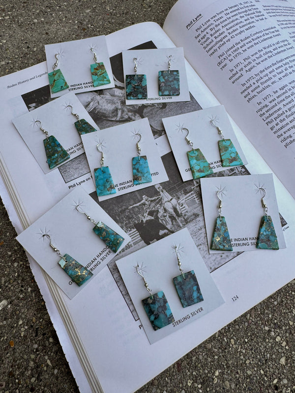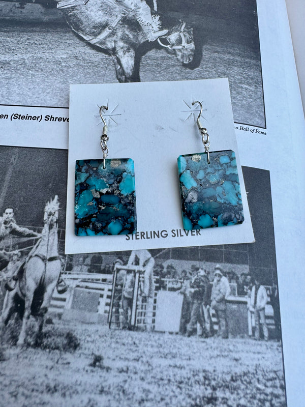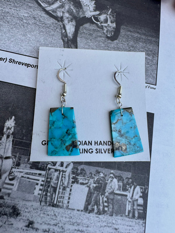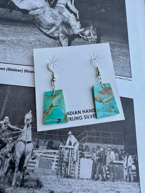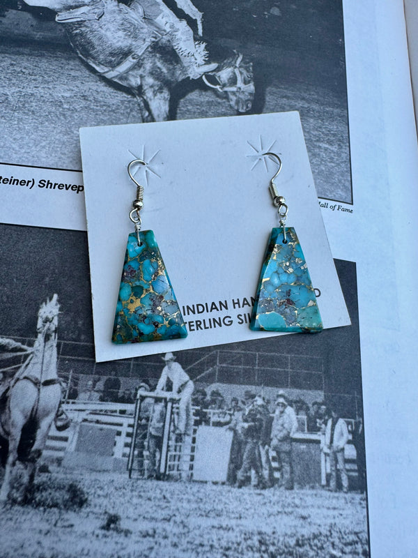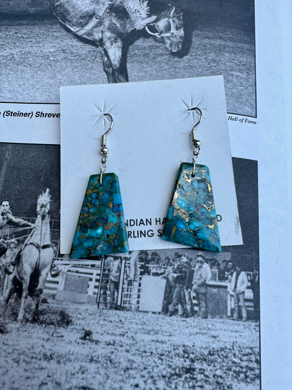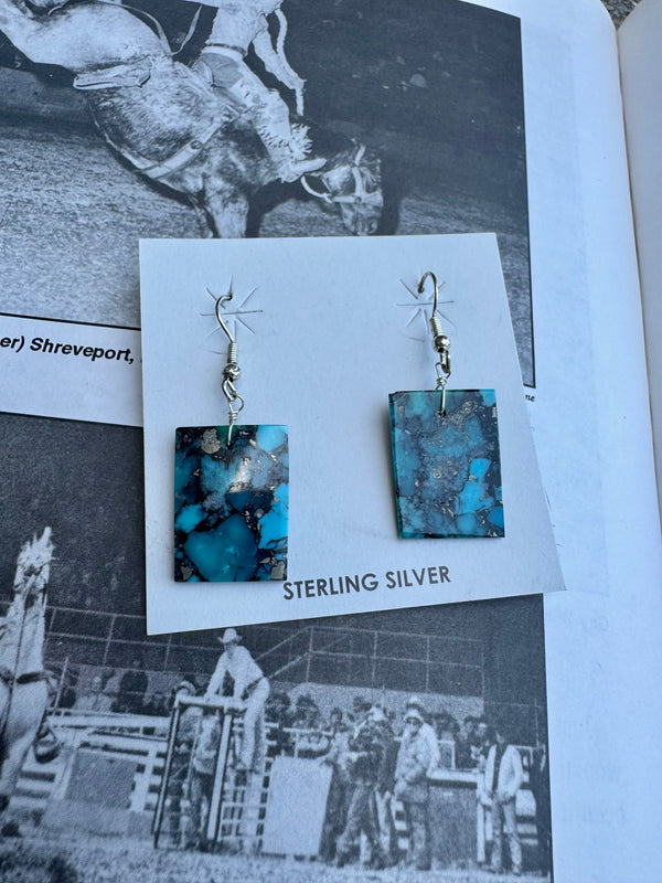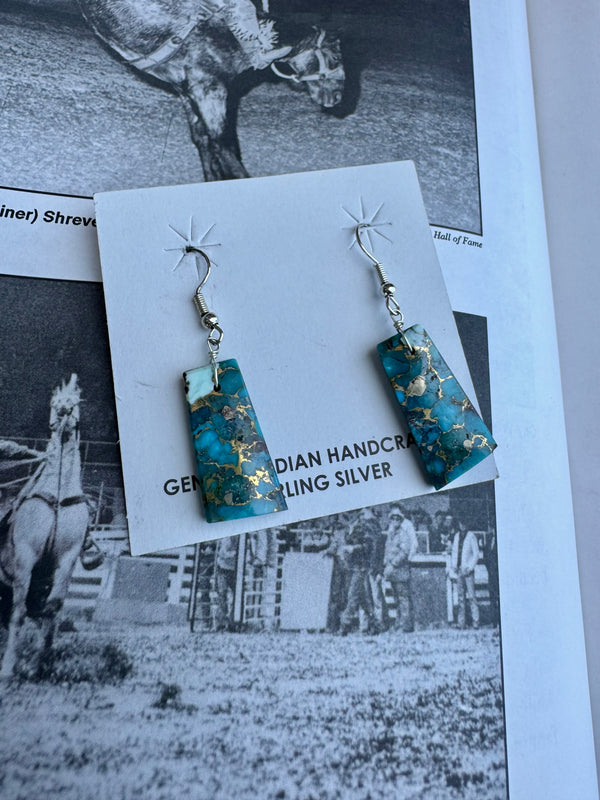 Mini Turquoise Slab Dangle Earrings with Gold Accents Approximately 0.5/1” x 1”