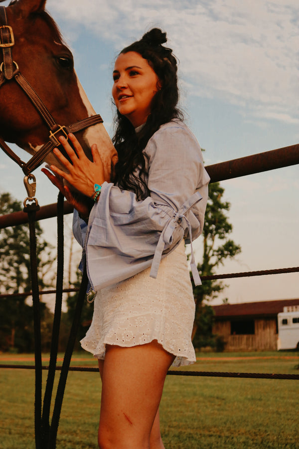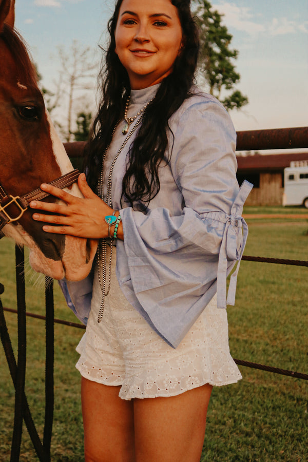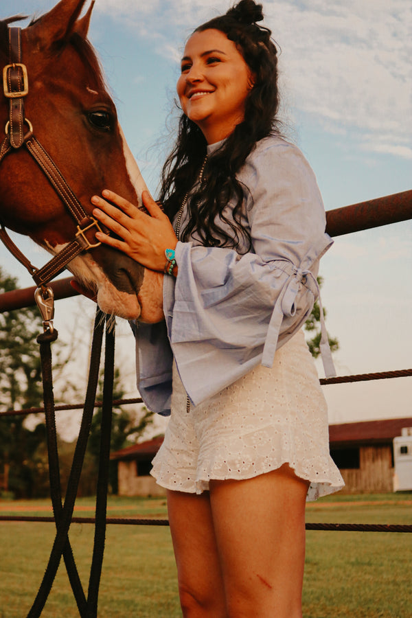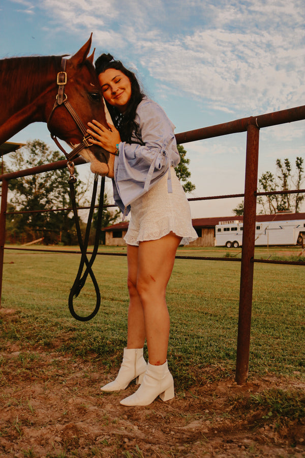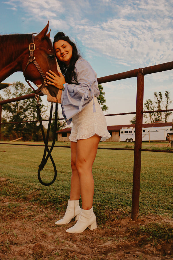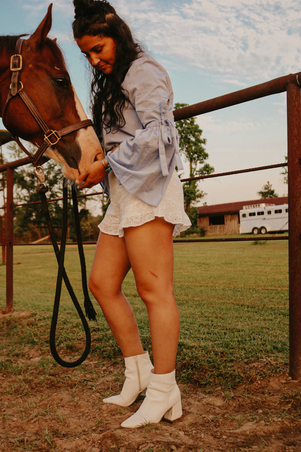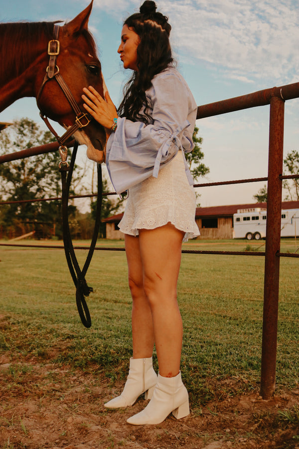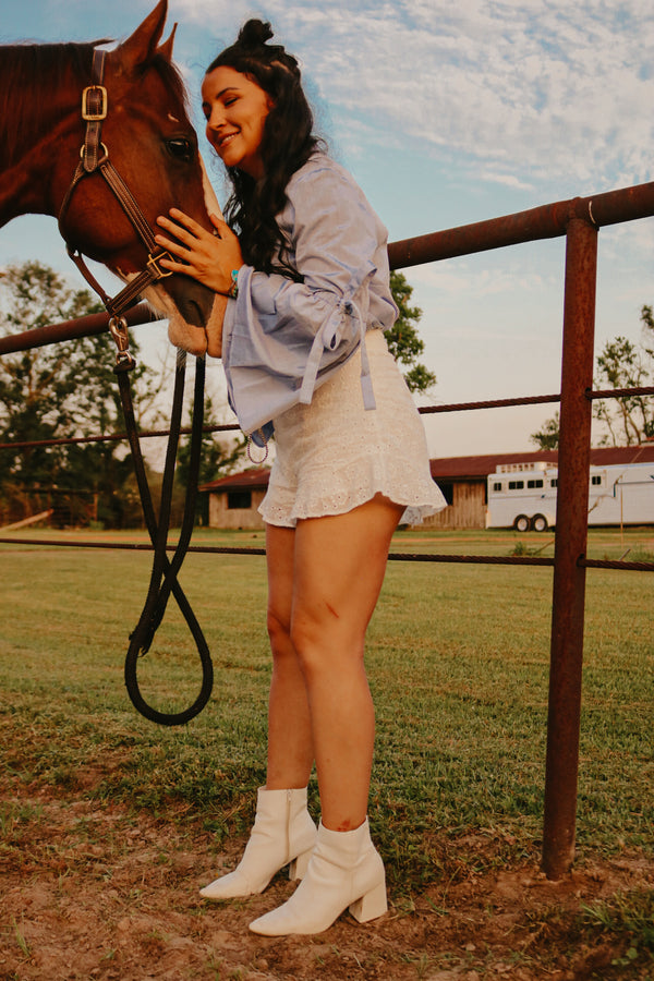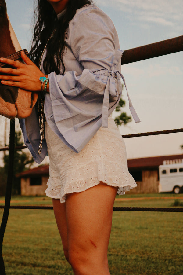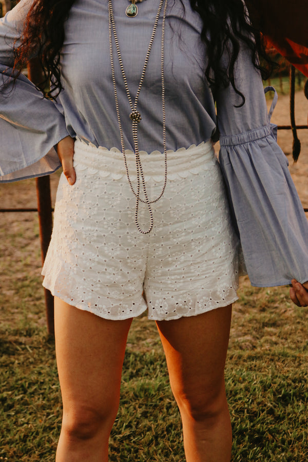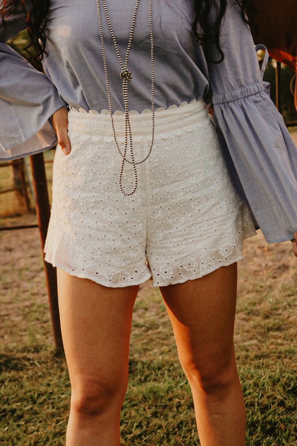 White Eyelet High Waisted Shorts with Ruffle Trim