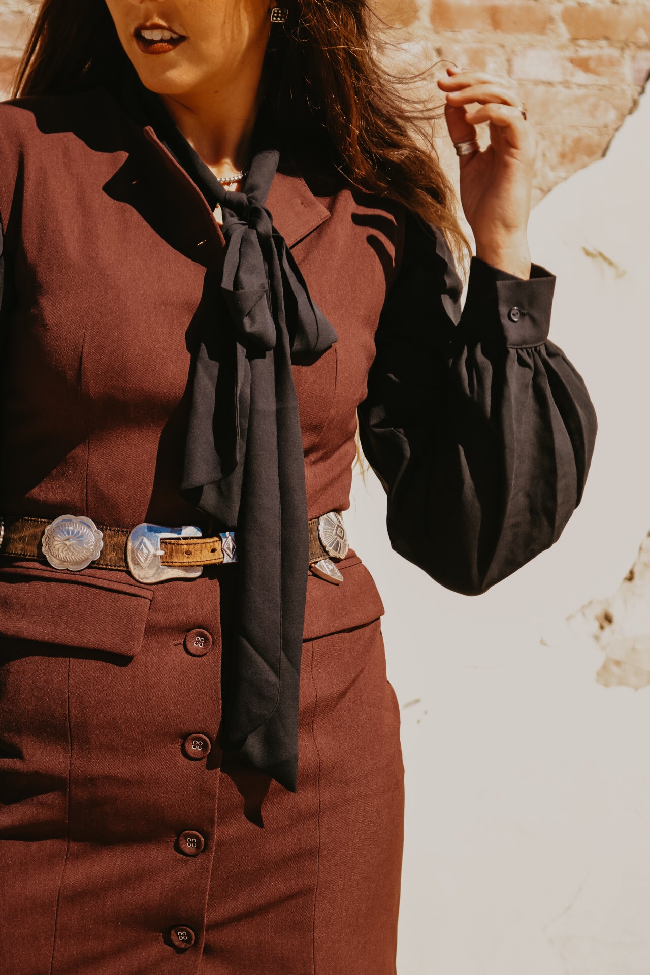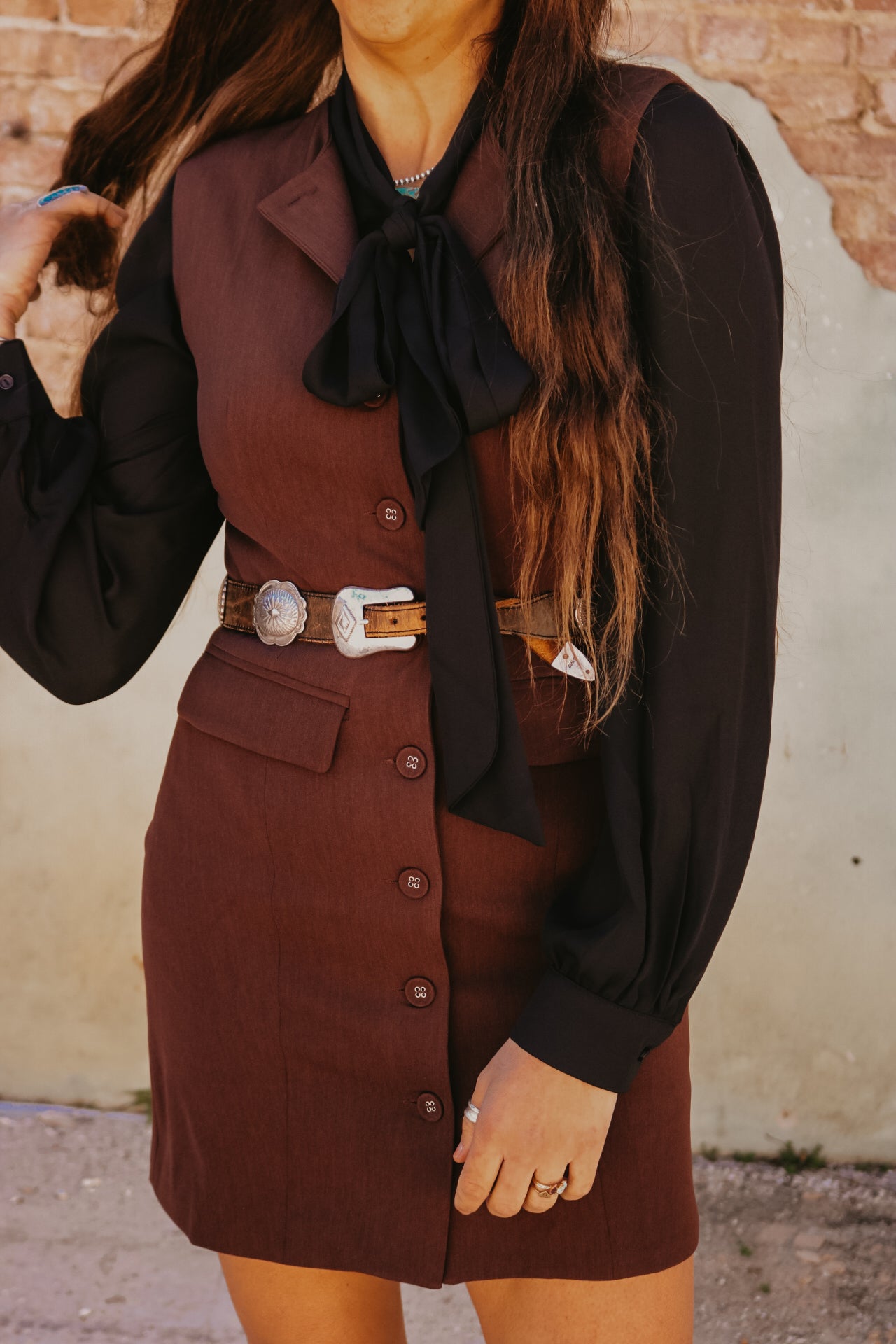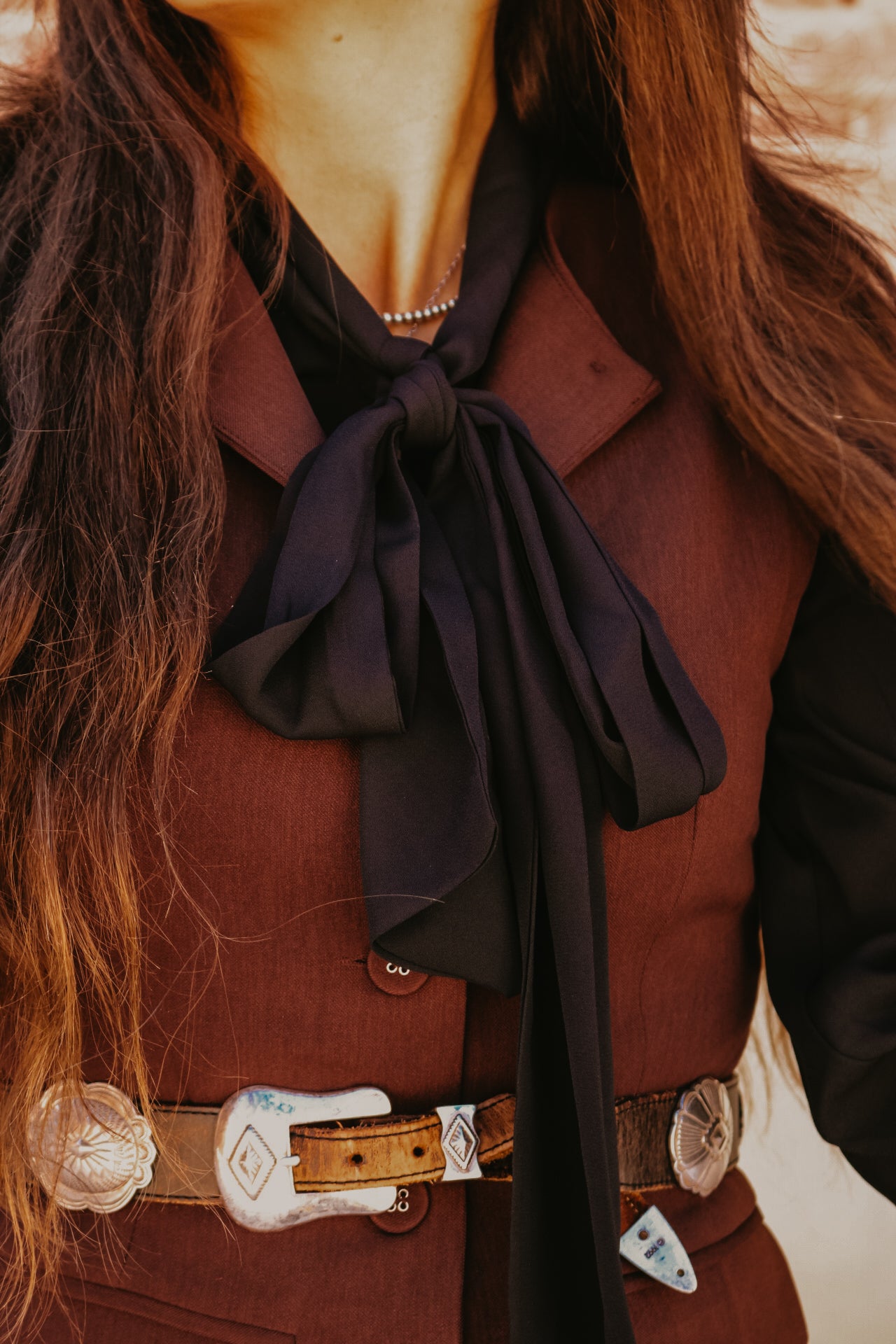 Black Long Sleeve Button Down with Neck Ribbon