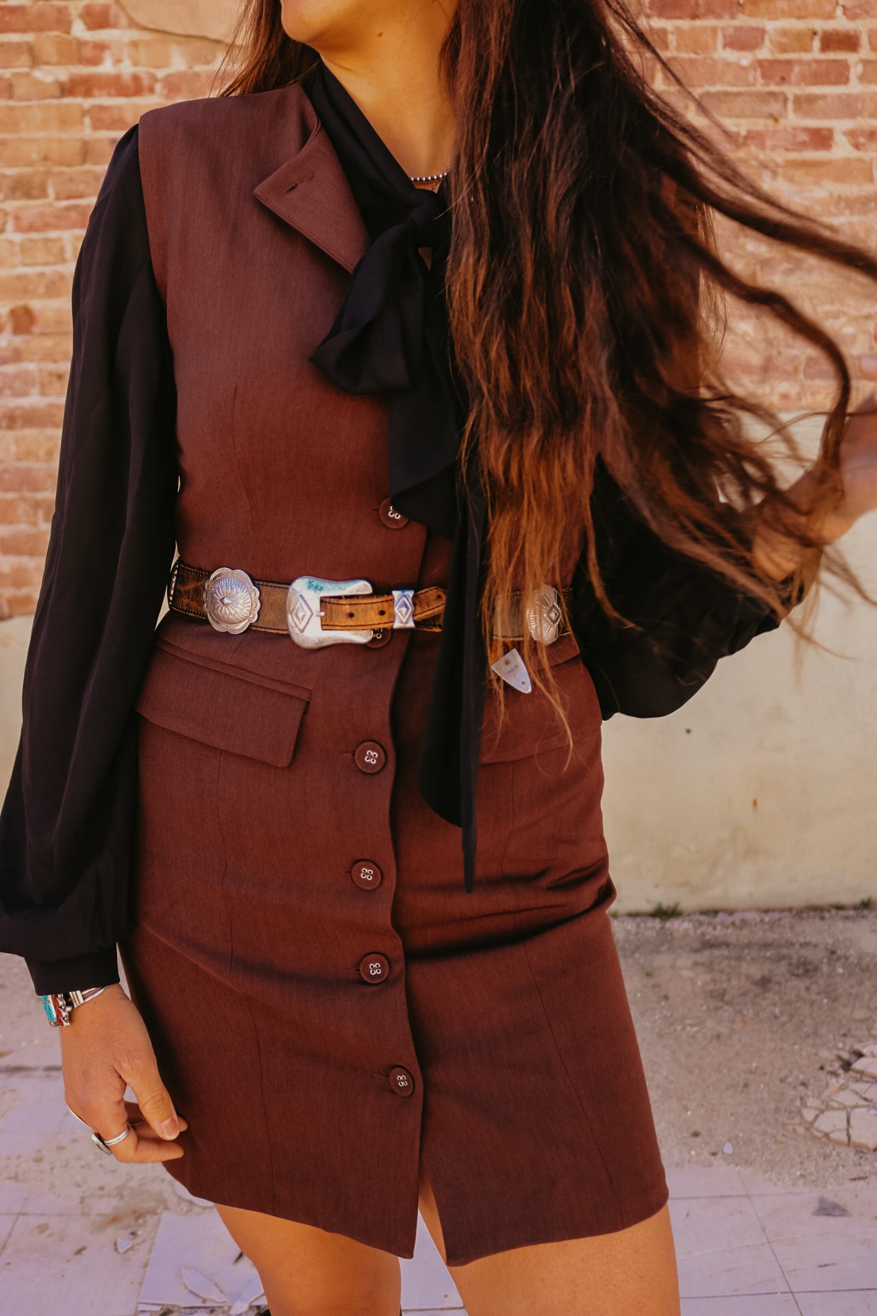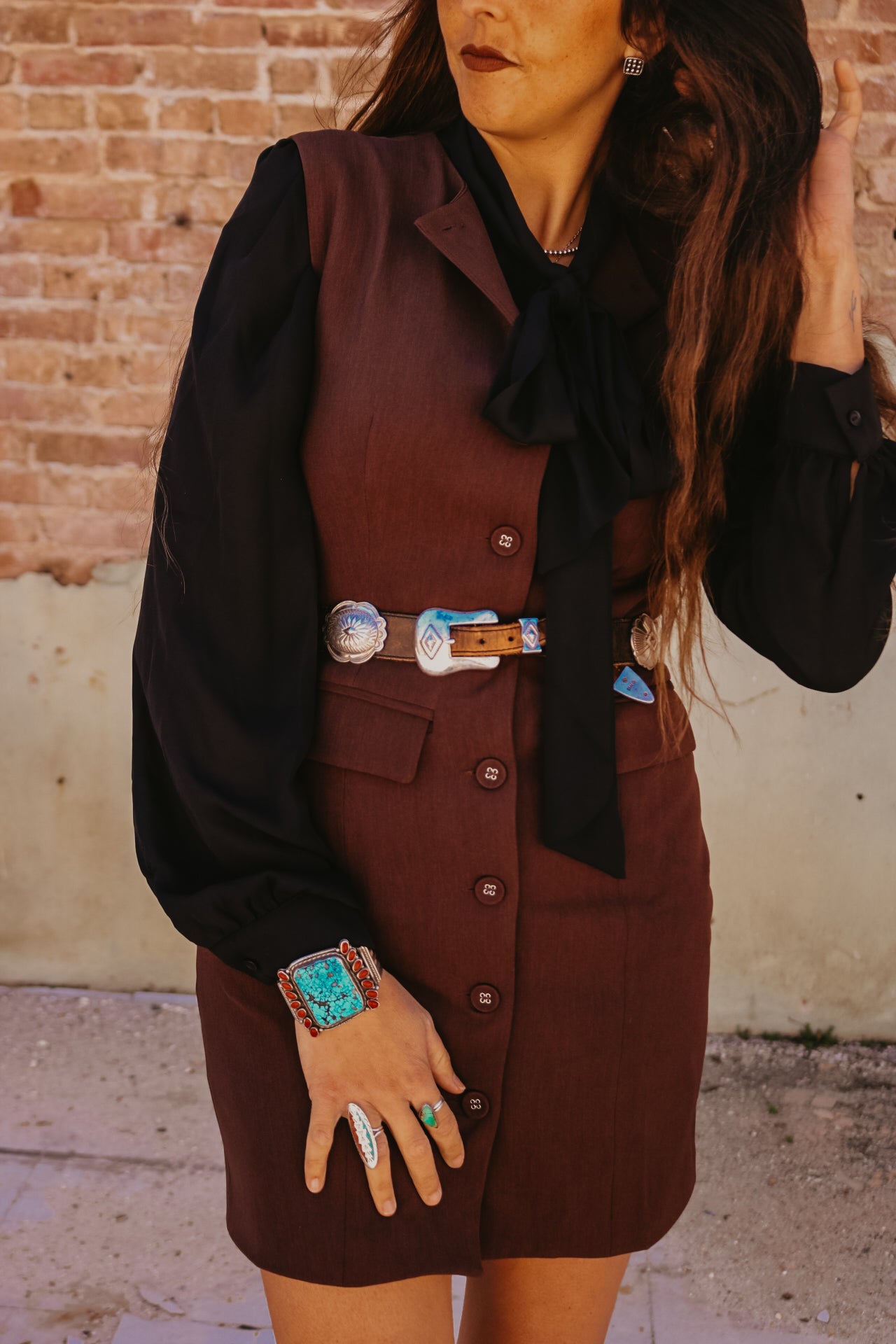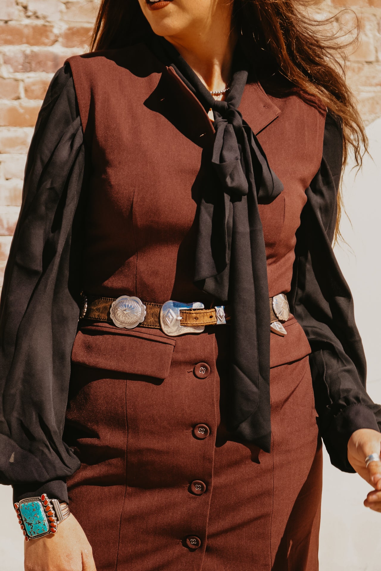 Black Long Sleeve Button Down with Neck Ribbon