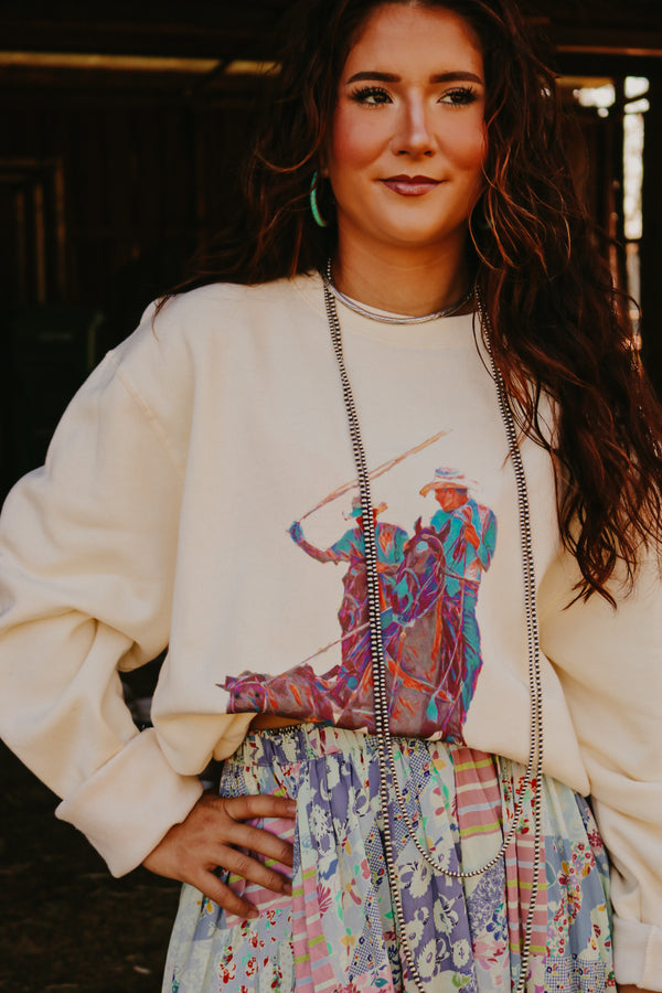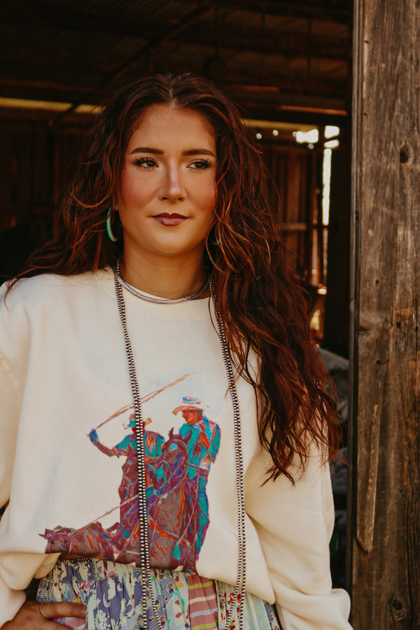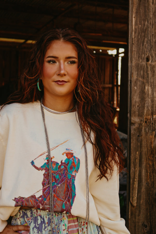 White Team Roper Printed Graphic Sweatshirt  *****Plum leather blazer NOT INCLUDED*****
