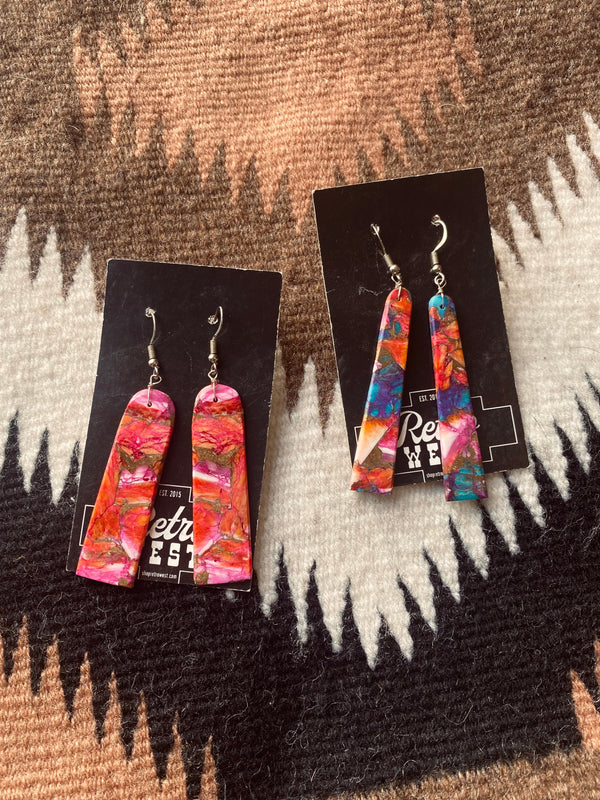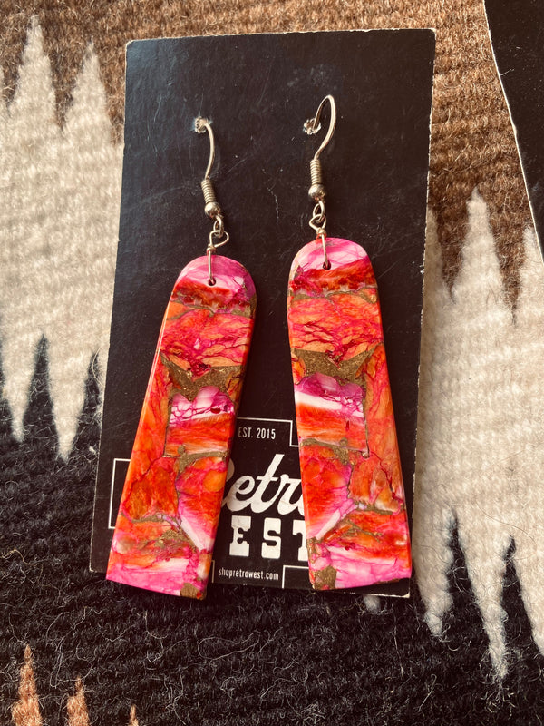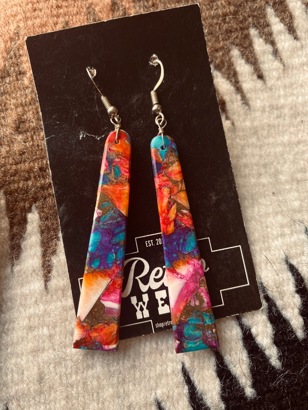 Turquoise & Spiny Oyster Flake Mix Slab Dangle Hook Pendant Earring *SHAPE & MIXTURE OF STONE COLOR MAY VARY, but will be a pink/purple/turquoise/orange mix* Approximately 2.5"
