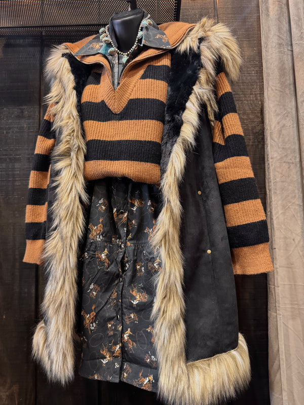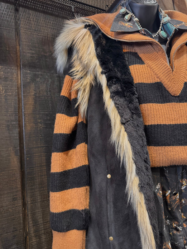 Black Suede Faux Fur Trim Vest by Tasha Polizzi