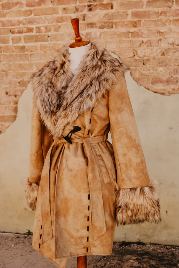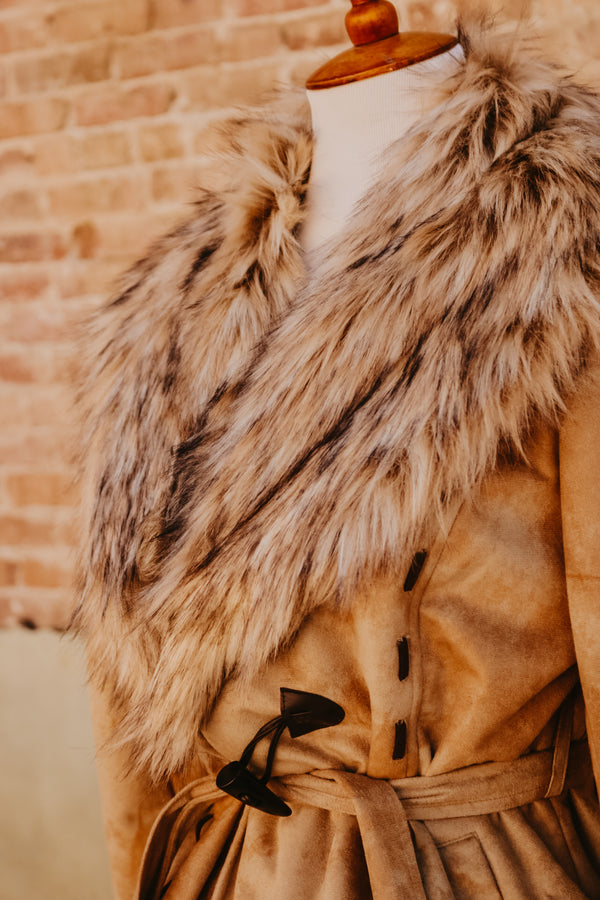 Wheat Coat w/ Removable Fur Collar by Tasha Polizzi Brown buckstitch 100% Polyester