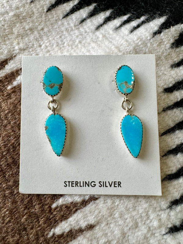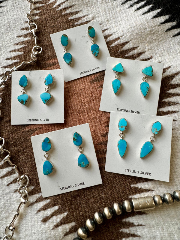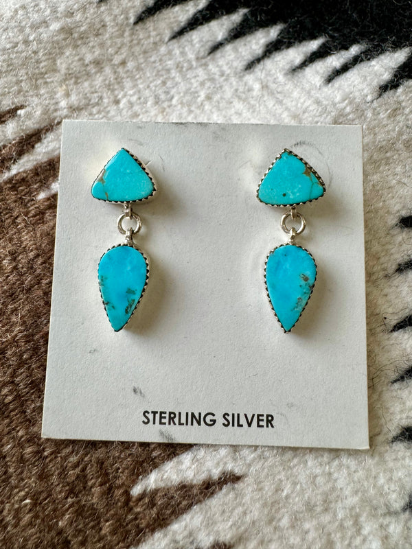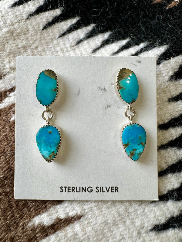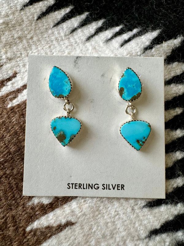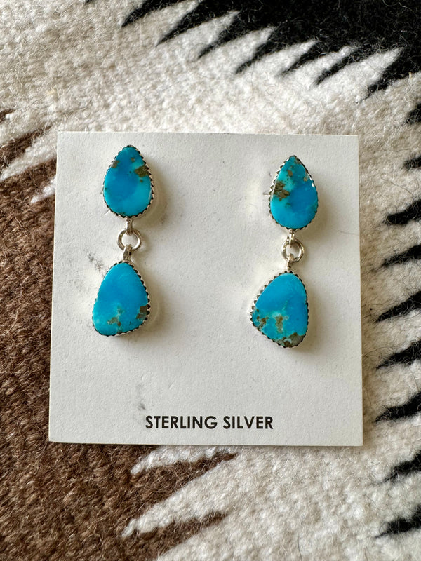 Sterling Silver Double Stacked Turquoise Dangle Earrings