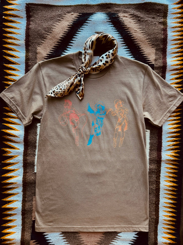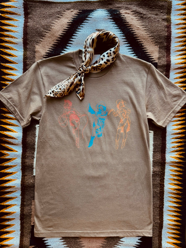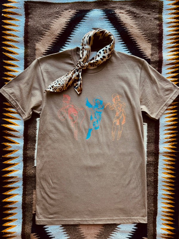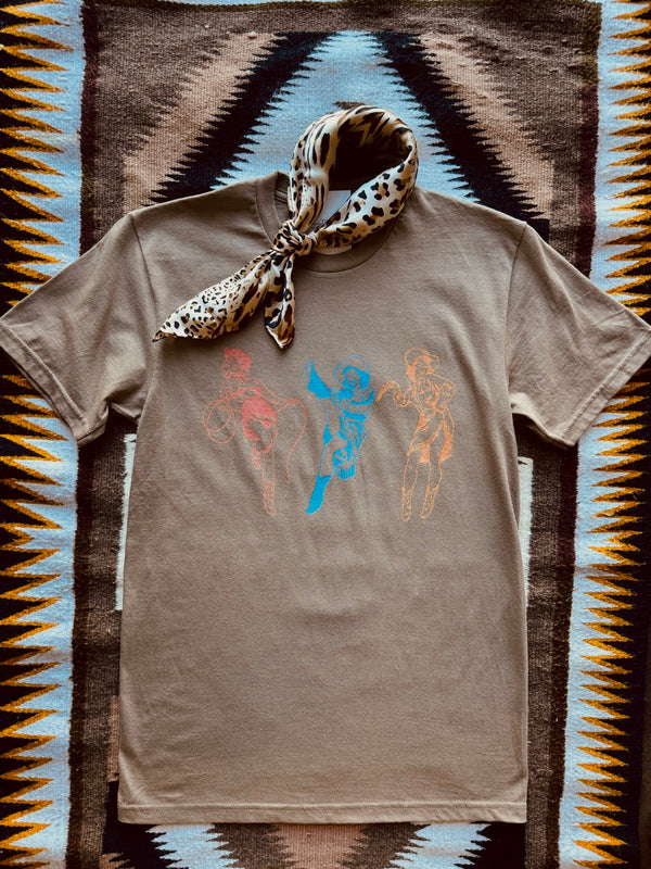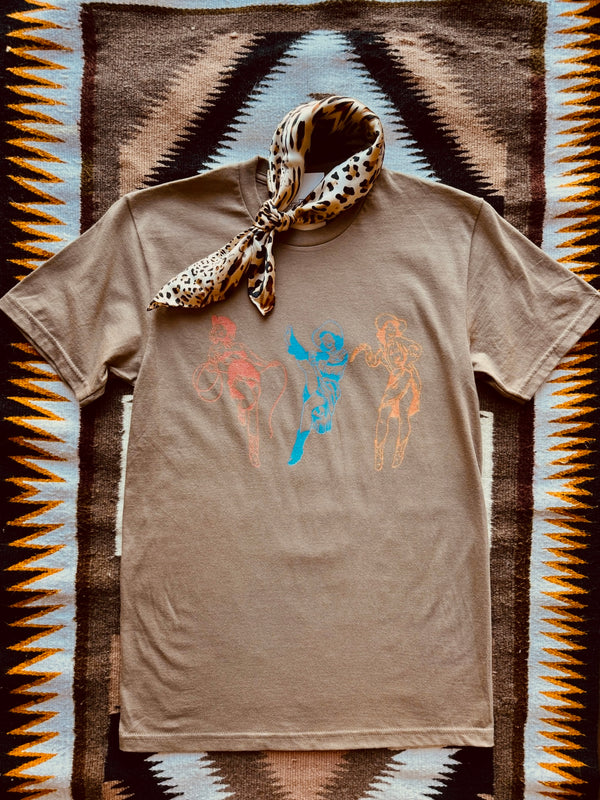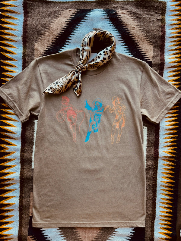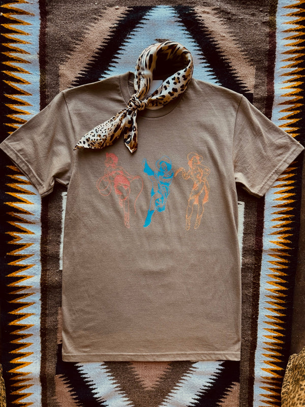 Retro Brown Triple Cowgirl Tee Unisex Fit 100% Cotton