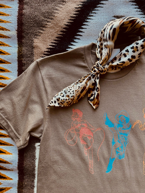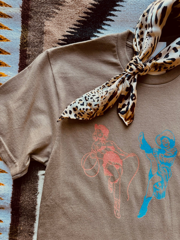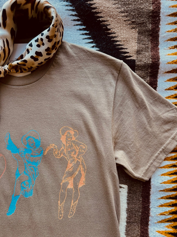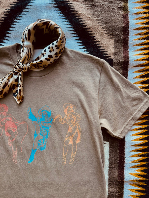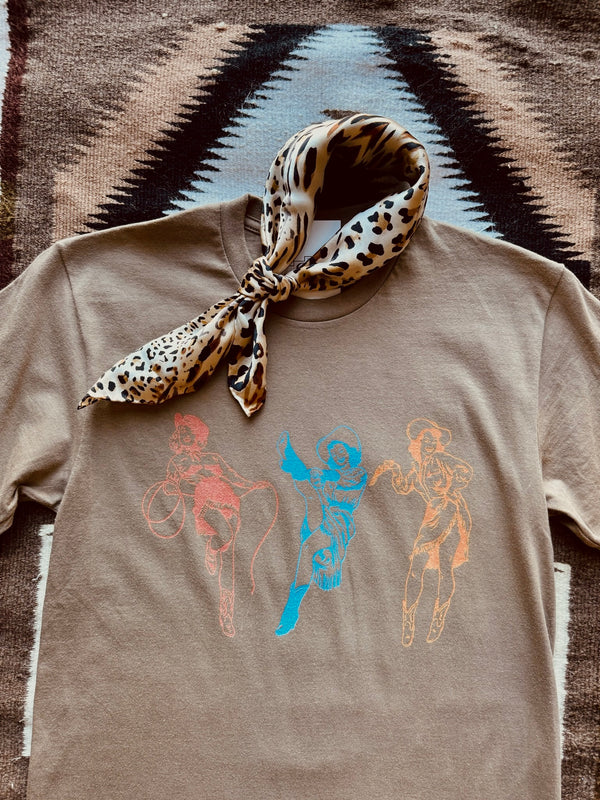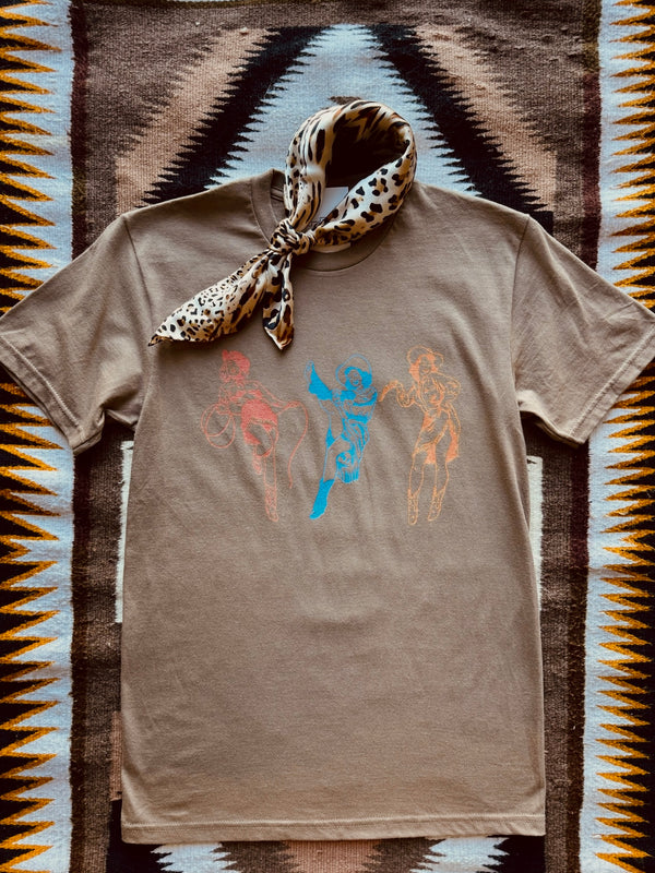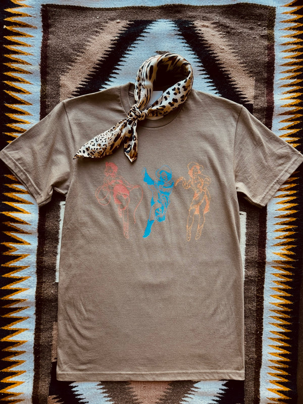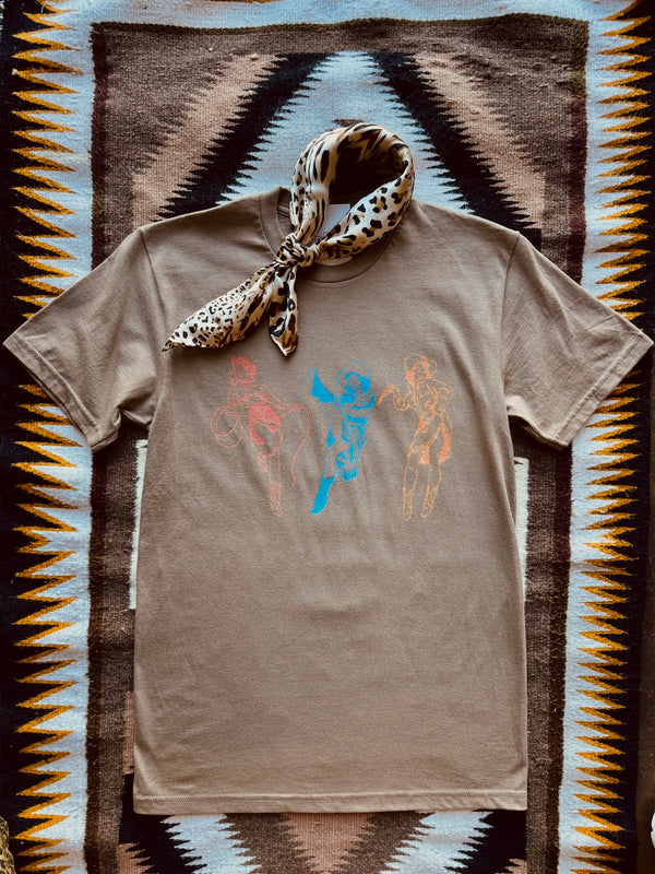 Retro Brown Triple Cowgirl Tee Unisex Fit 100% Cotton