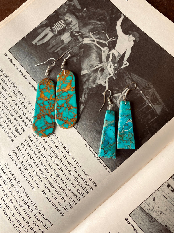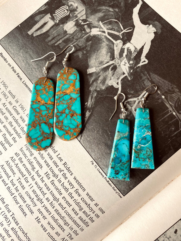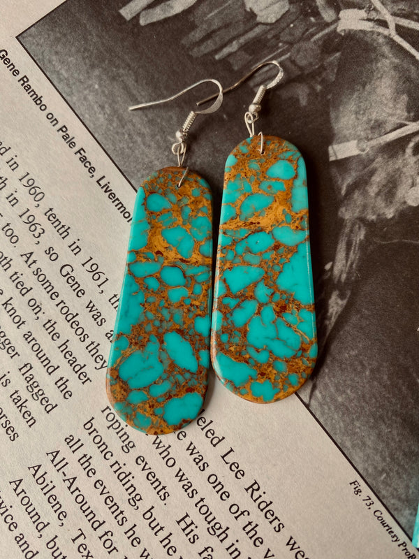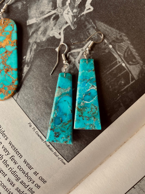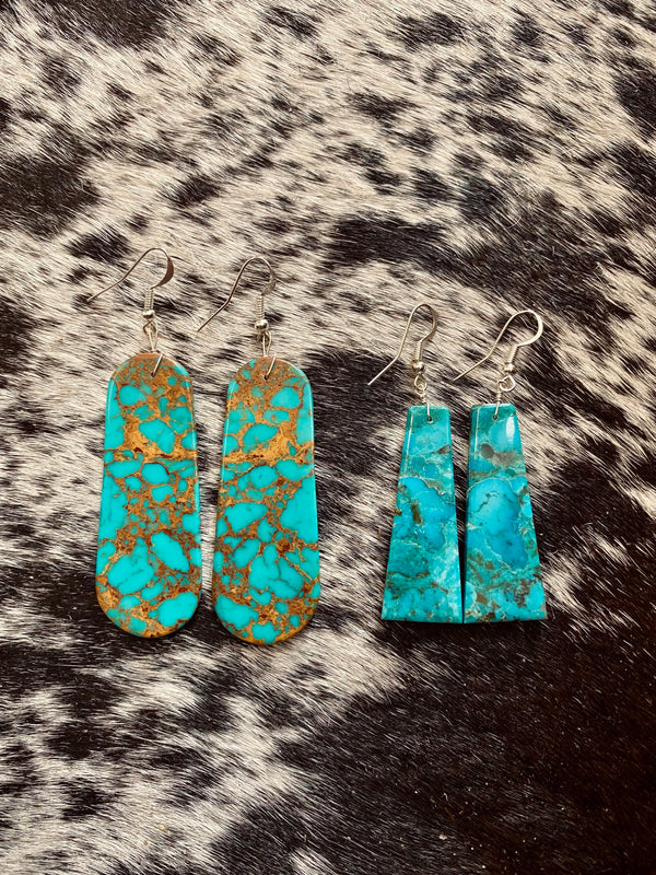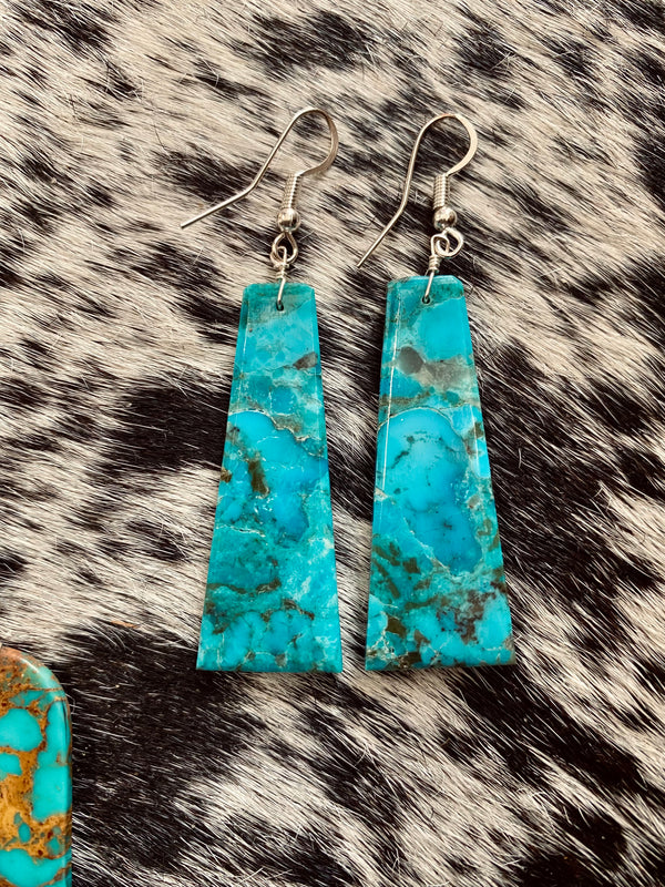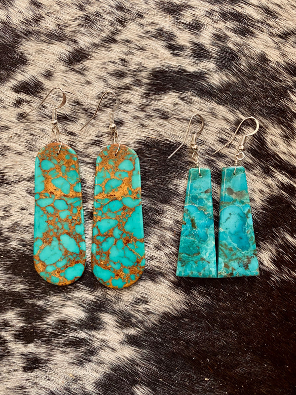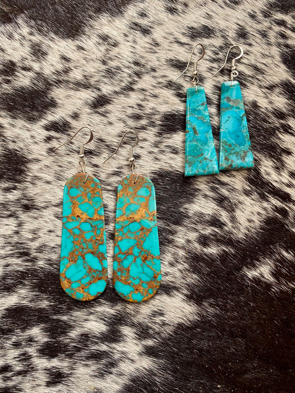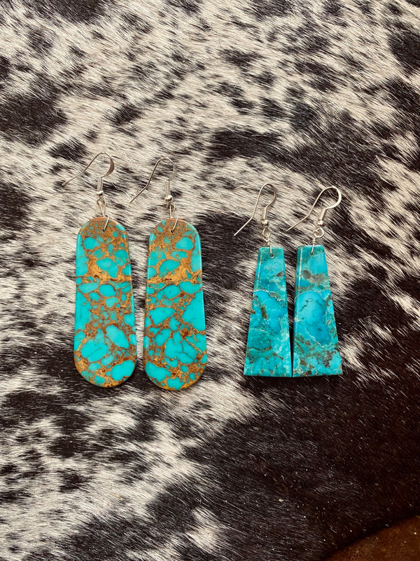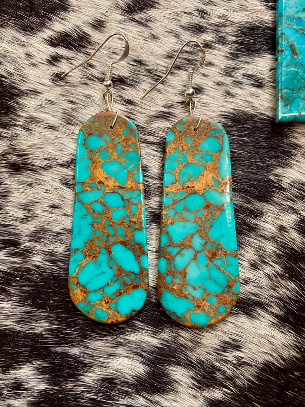 Turquoise Slab Dangle Earring  Slab lengths are between 2”-2.5”