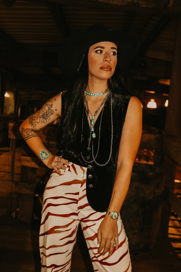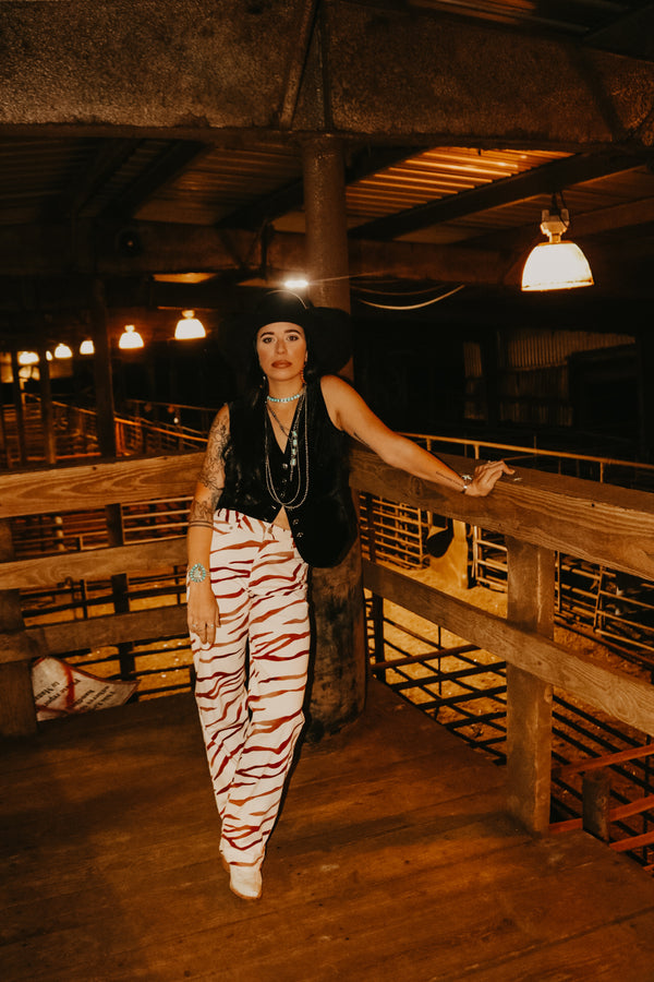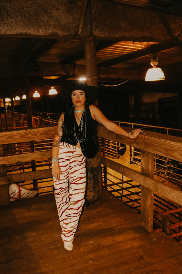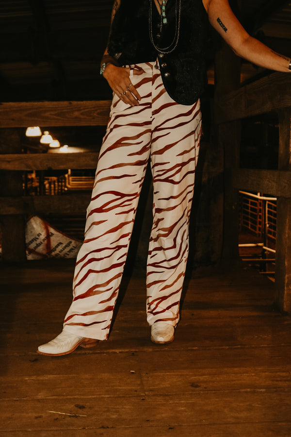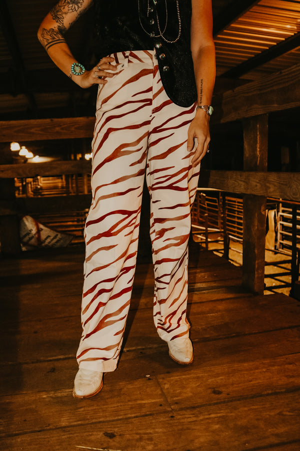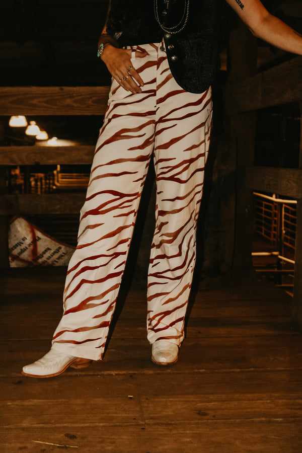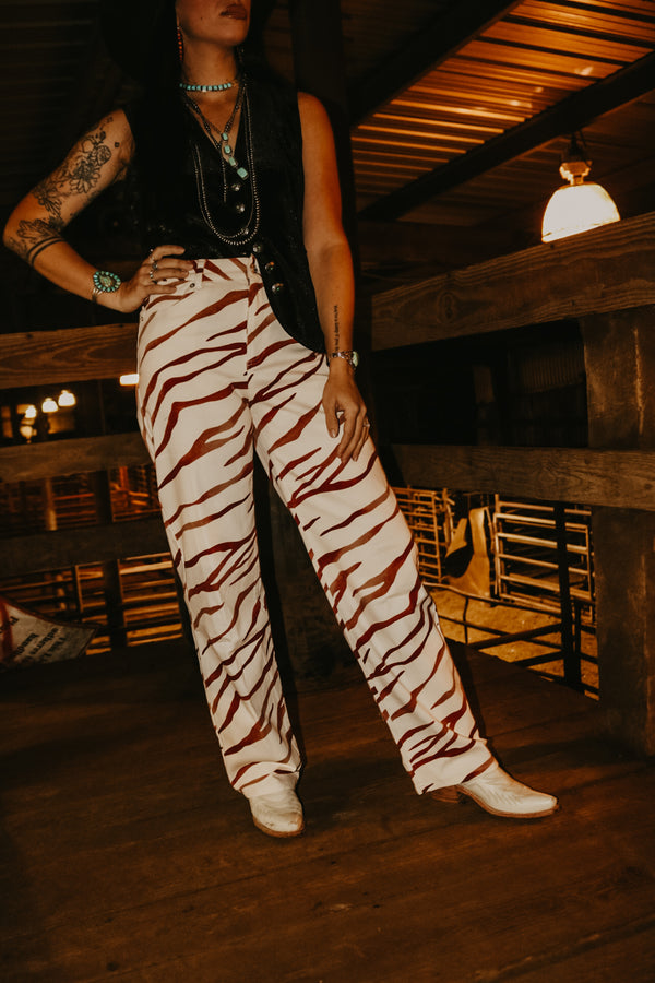Brown Striped Zebra Denim Pants  High Waisted 31" Inseam 98% Cotton 2% Spandex