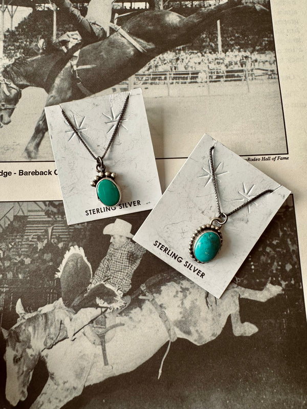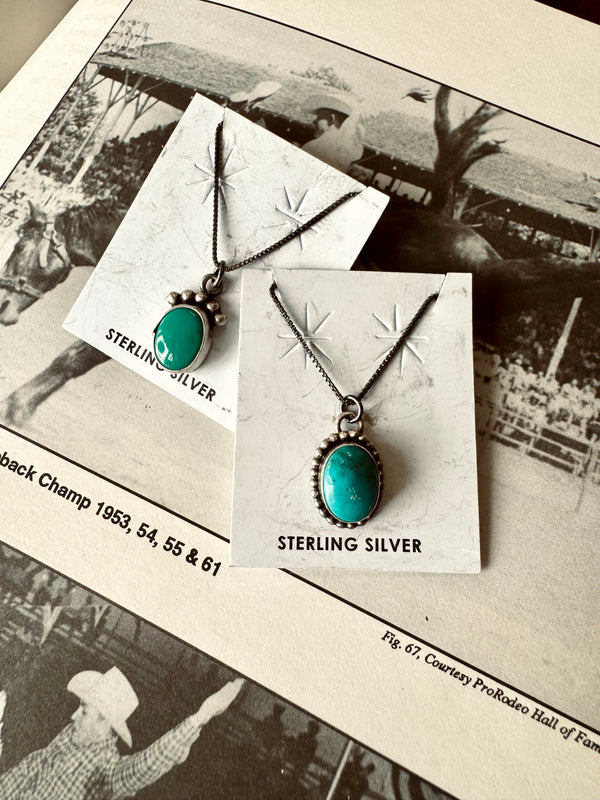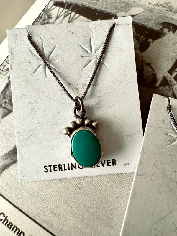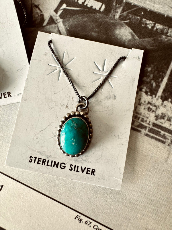 Sterling Silver Turquoise Pendant Necklace on Thin Sterling Silver Box Chain