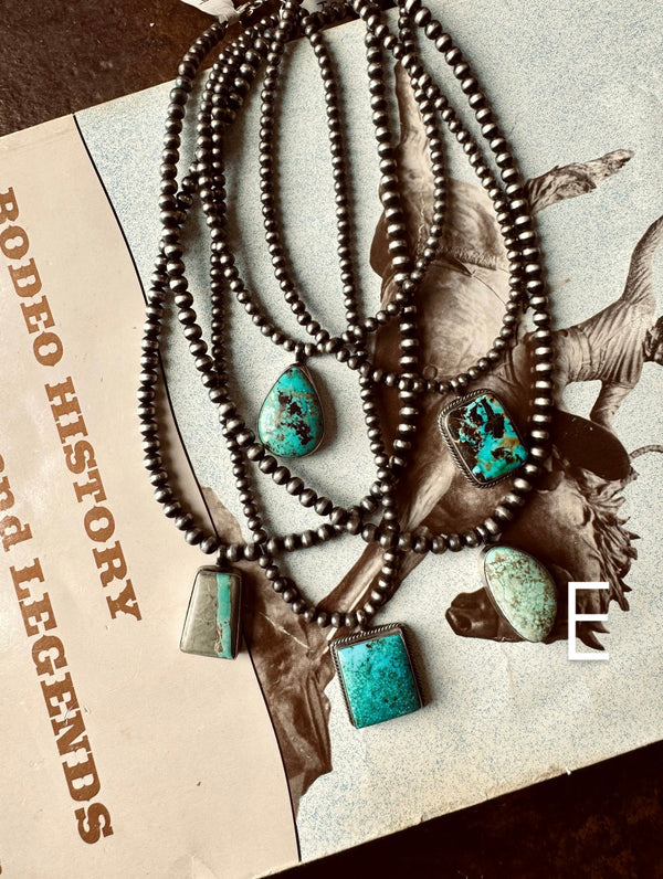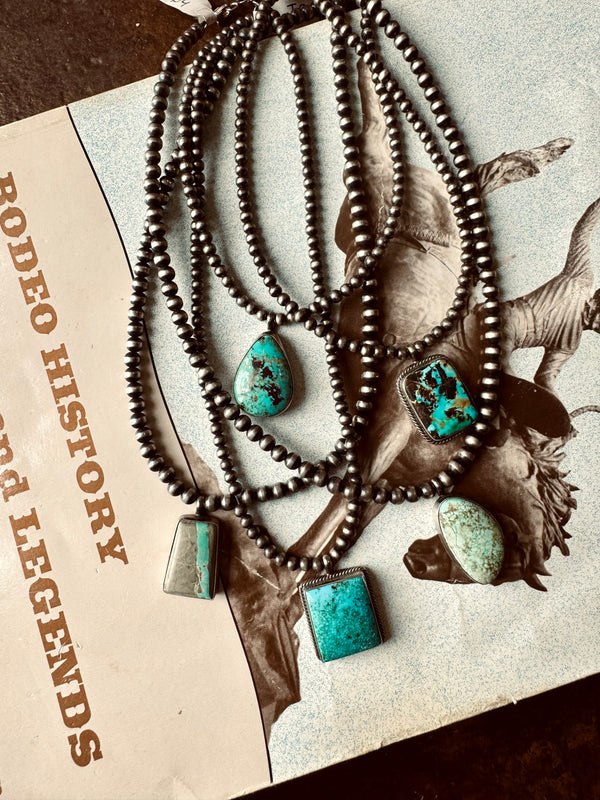 Large Chunky Turquoise & Sterling Silver Pendant Necklace Strung on Authentic Navajo Pearls  Between 18.75” & 14.5” Sterling Silver Navajo Pearls