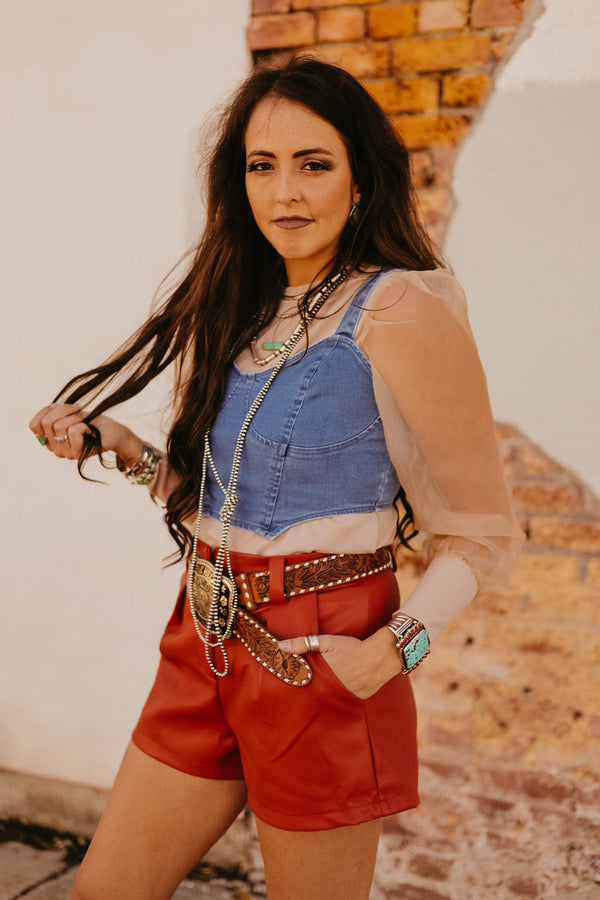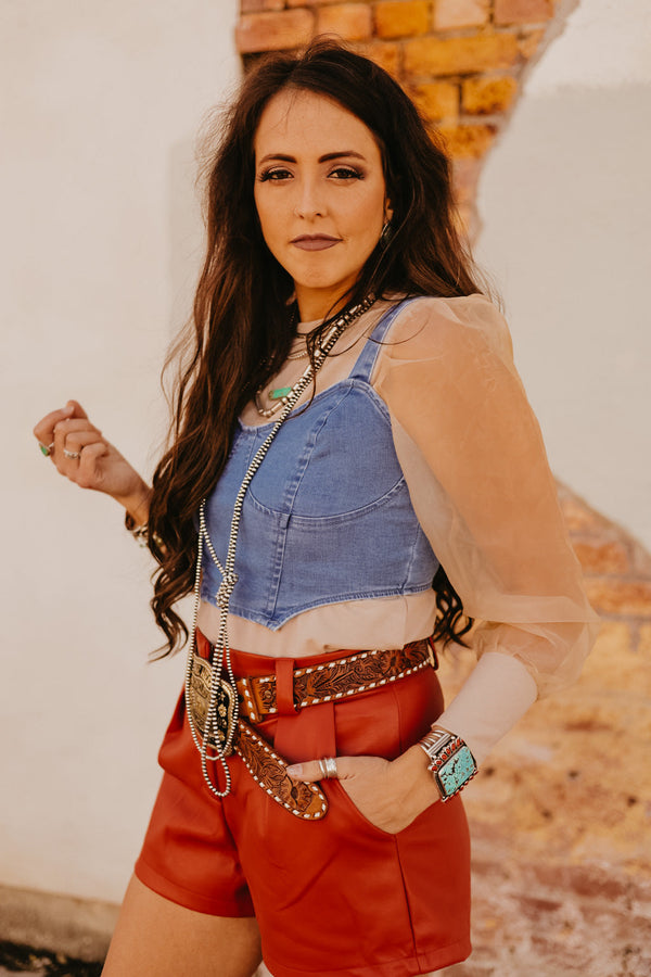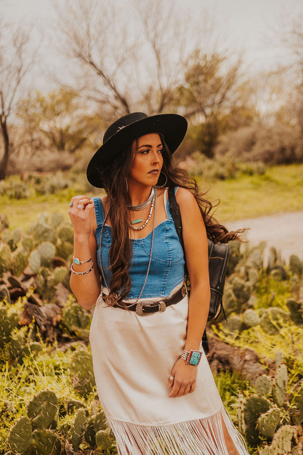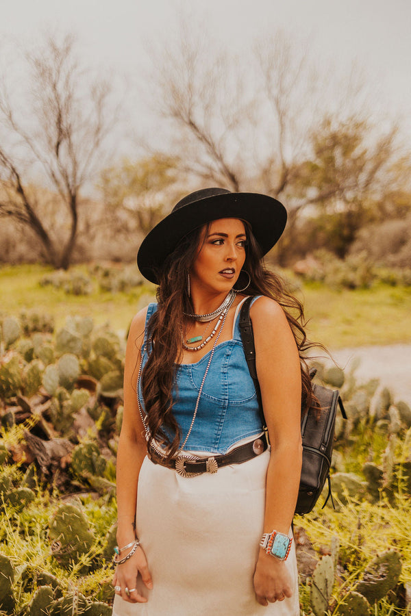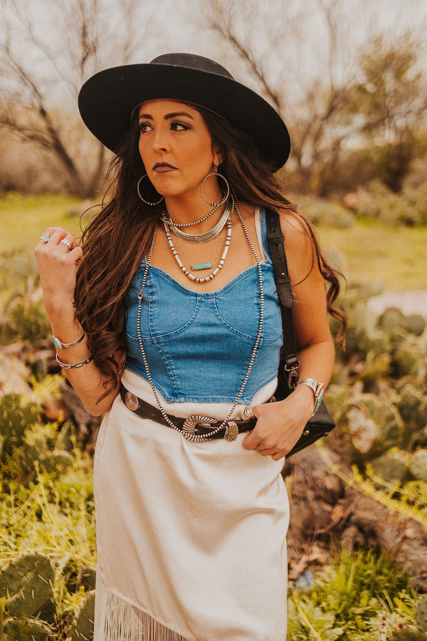 Washed Denim Corset Style Top Back zip Thick adjustable straps