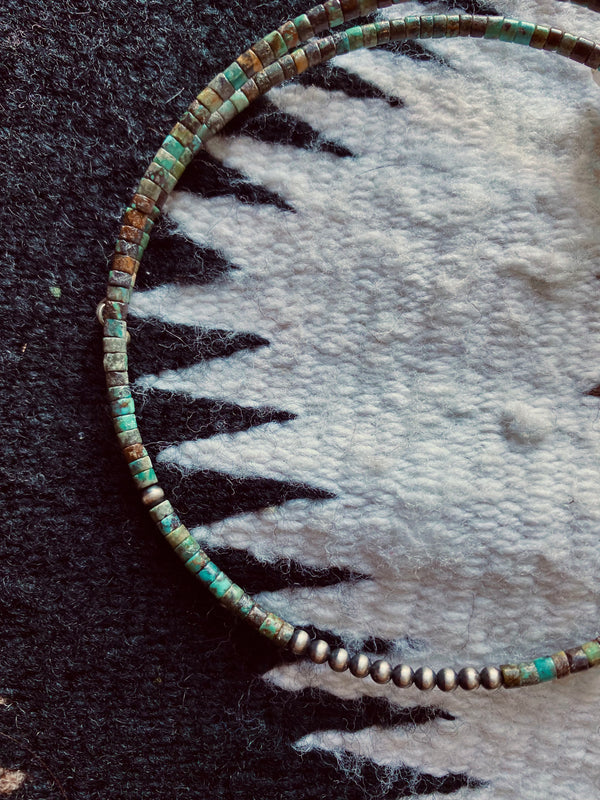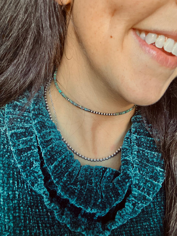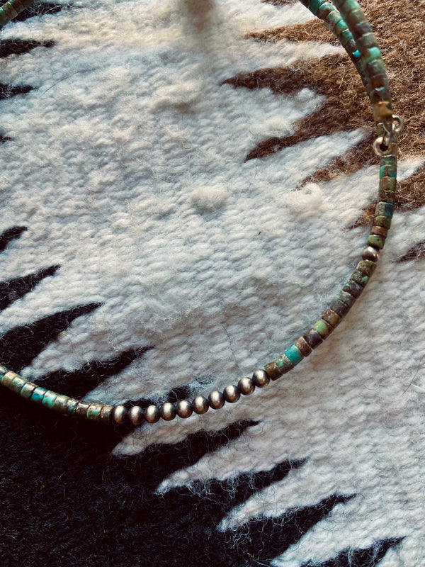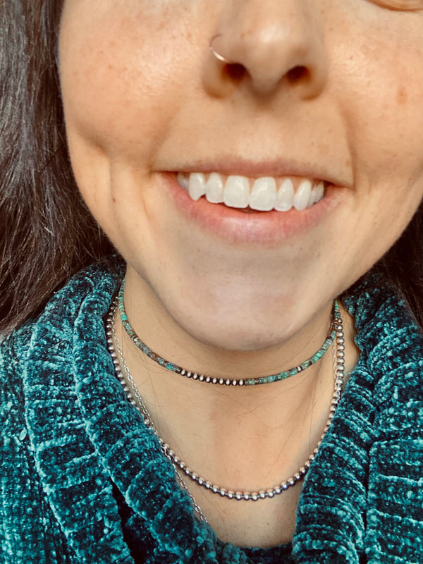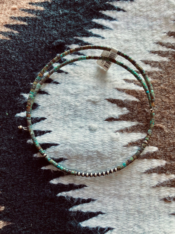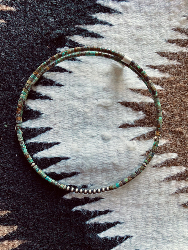 Turquoise & Navajo Pearl Wrap ChokerĀ  Sterling silverĀ