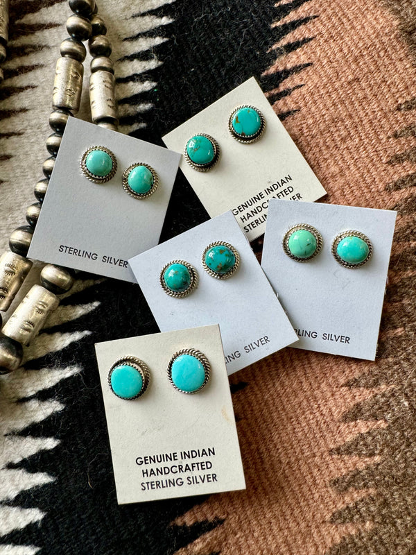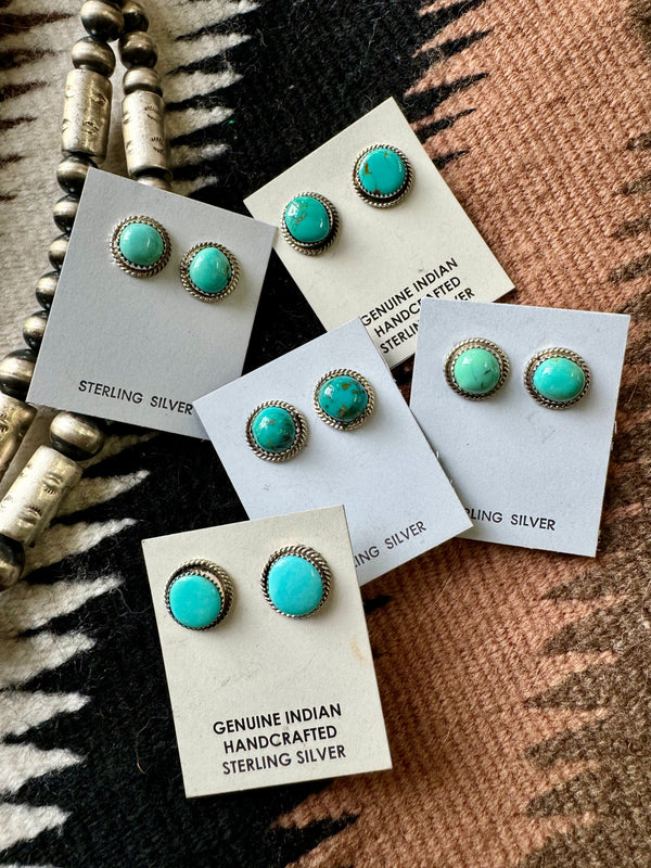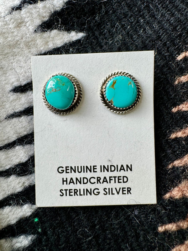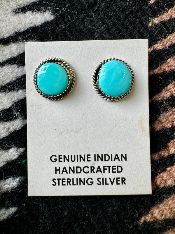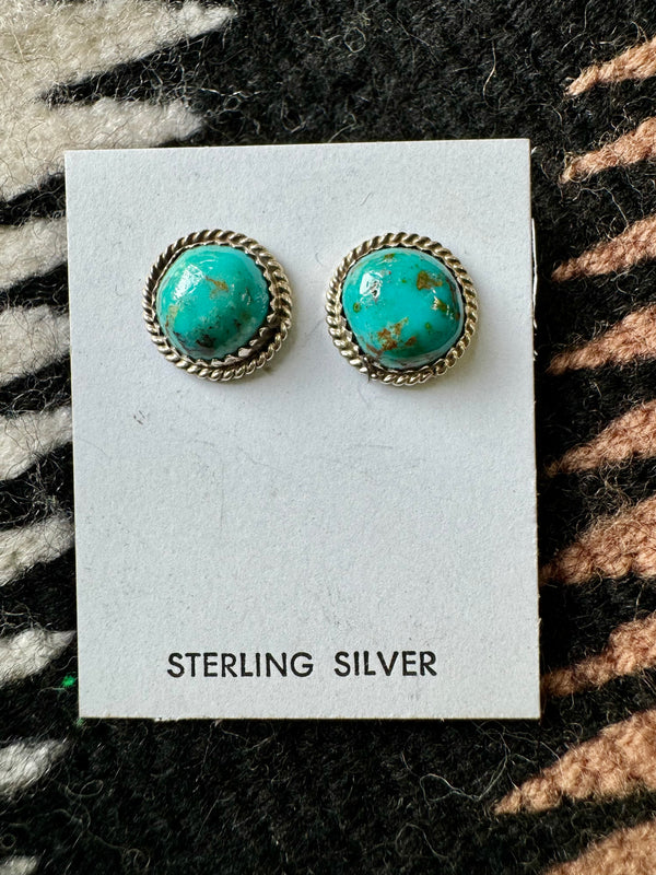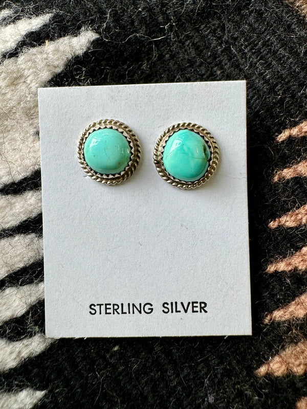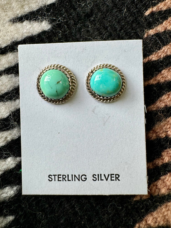 Sterling Silver Twisted Wire Trim Turquoise Circle Studs