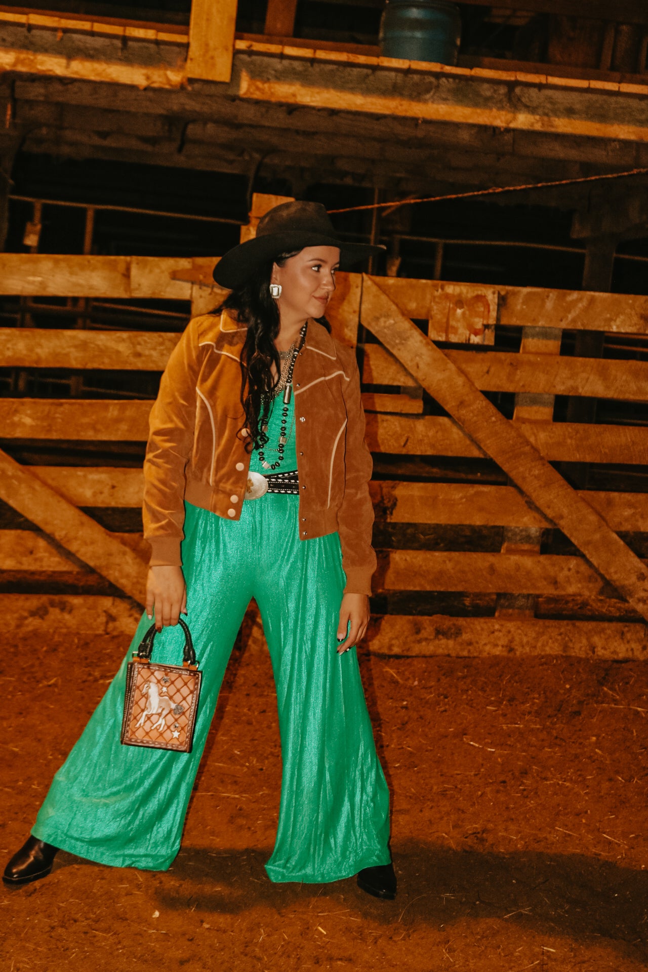Metallic Emerald Gathered Ruched Waist Jumpsuit