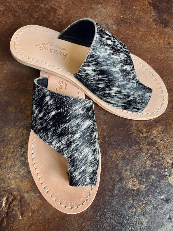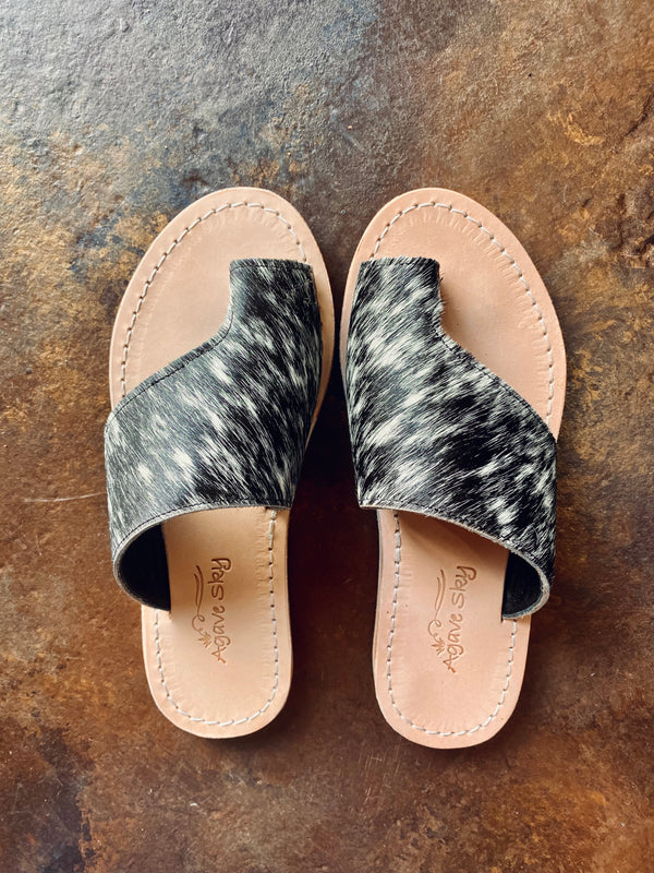 Cowhide & Leather Toe-Pocket Slides Leather Sole ****COWHIDE WILL VARY****
