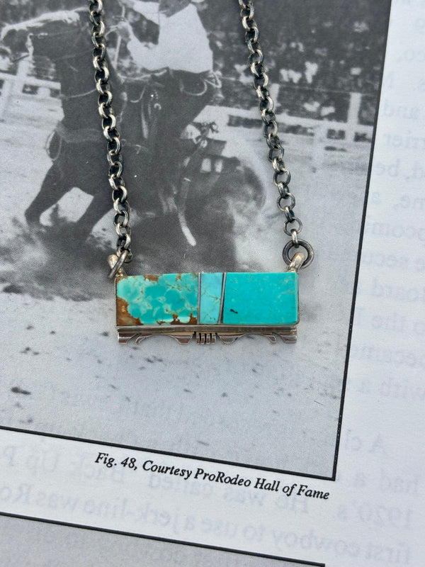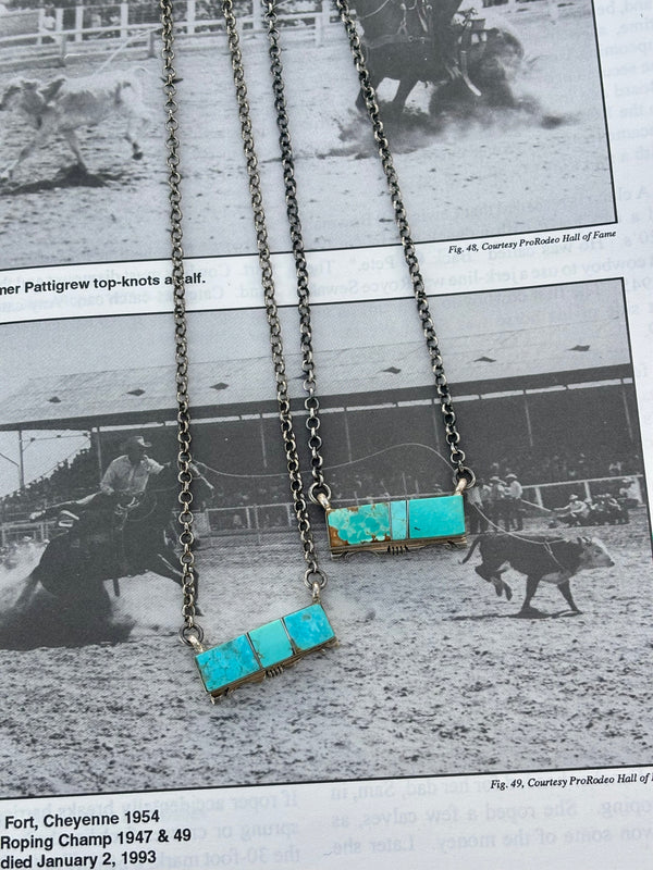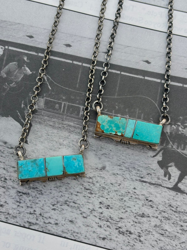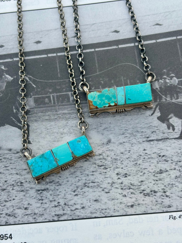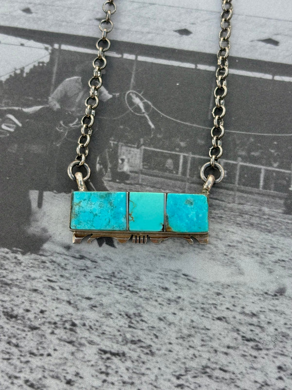 Ornate Trim Sterling Silver Multi-Turquoise Stone/Slab Bar Necklace 19.5” Stamped Sterling Silver Signed “SF”