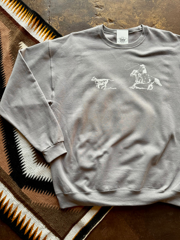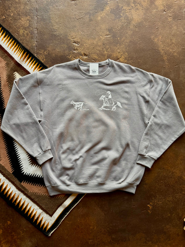 Grey Sweatshirt with Cowboy Tracking Calf Western Scene 50% Cotton 50% Polyester